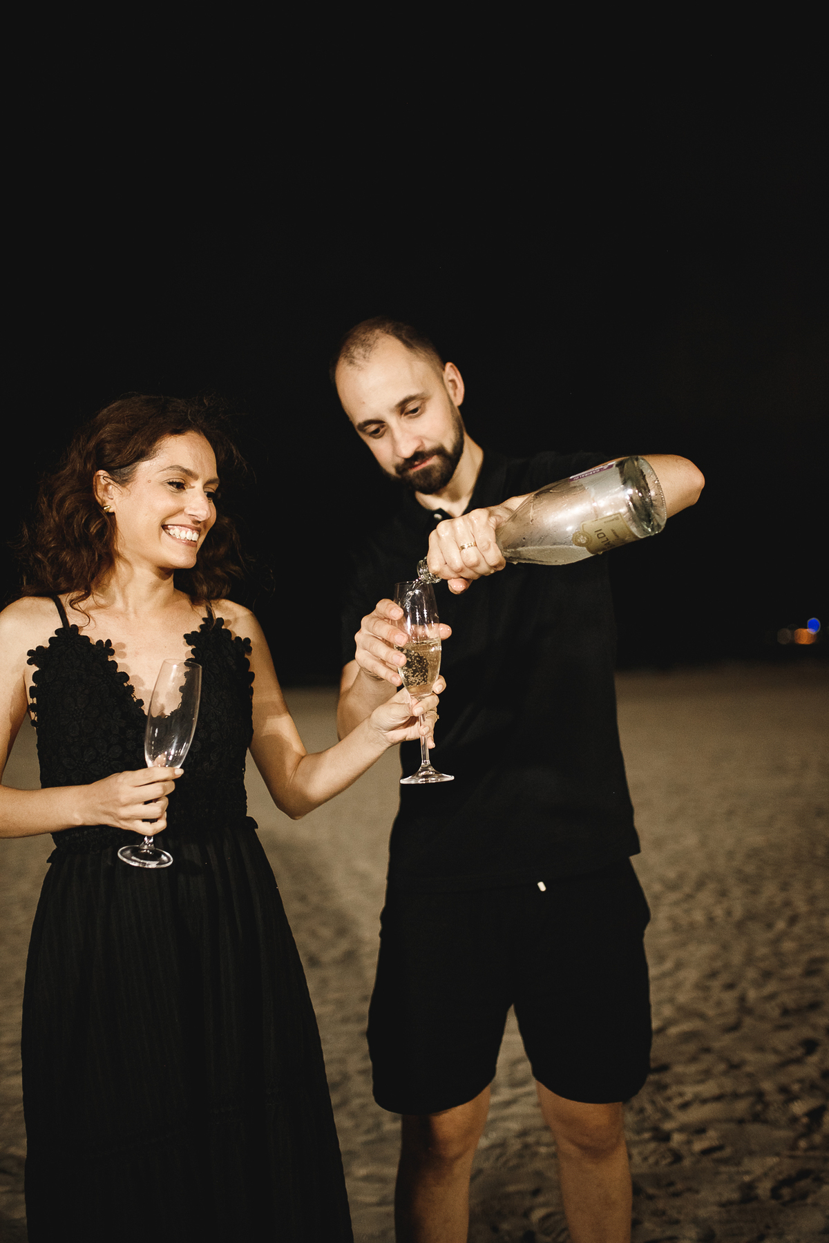 Quando o sol finalmente se escondeu, seguimos para um lugar muito especial para os dois: Balneário Camboriú. Cidade que faz parte de passeios e das memórias do casal, foi o cenário escolhido para registrar os momentos finais do dia e capturar algumas cenas para o vídeo de save the date. Um encerramento perfeito para uma tarde que foi tão leve e cheia de significado.