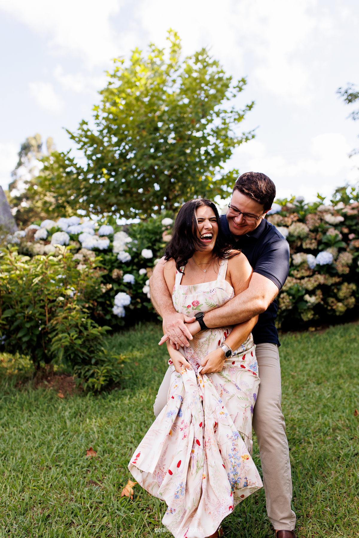 Fotografar ali foi como acompanhar dois apaixonados em um território que já é íntimo. A familiaridade com o ambiente trouxe leveza e naturalidade para cada momento. Entre risadas, olhares cúmplices e gestos espontâneos, a conexão dos dois se revelou de forma genuína, sem pressa, como quem simplesmente aproveita a companhia um do outro. Cada imagem carrega um pouco da essência da Carol e do Thomas: a alegria de estarem juntos, o conforto de se sentirem em casa e a certeza de que os lugares que escolhem viver também contam a história do que sentem.