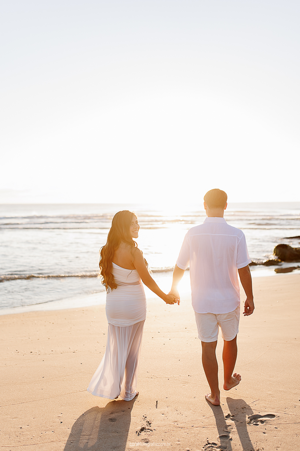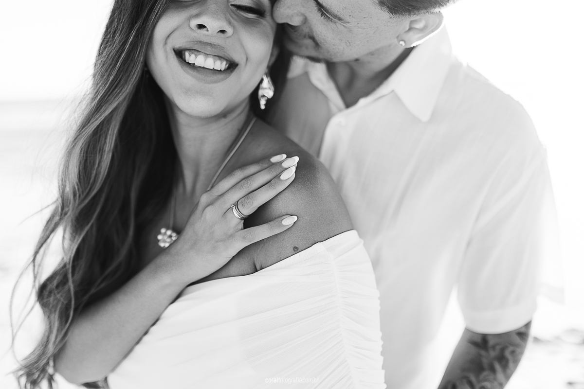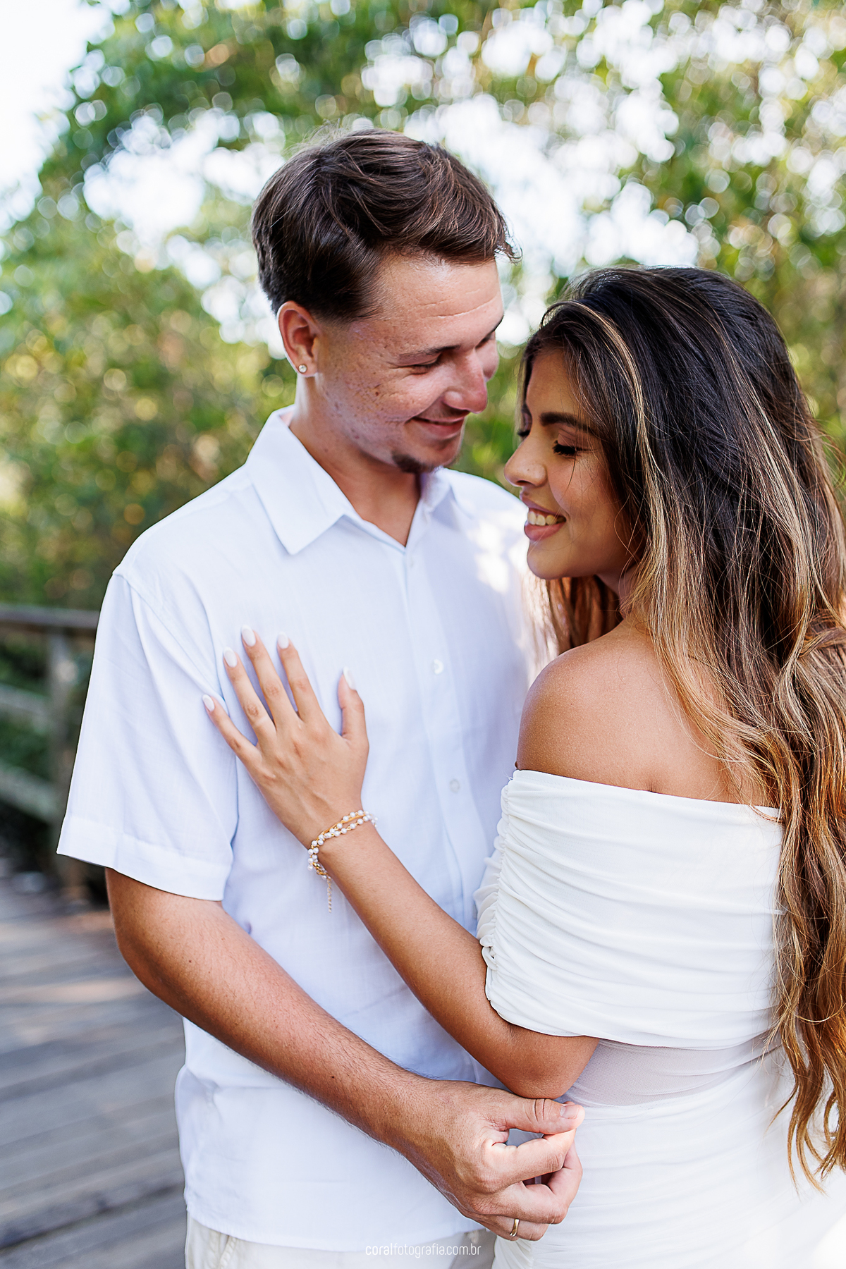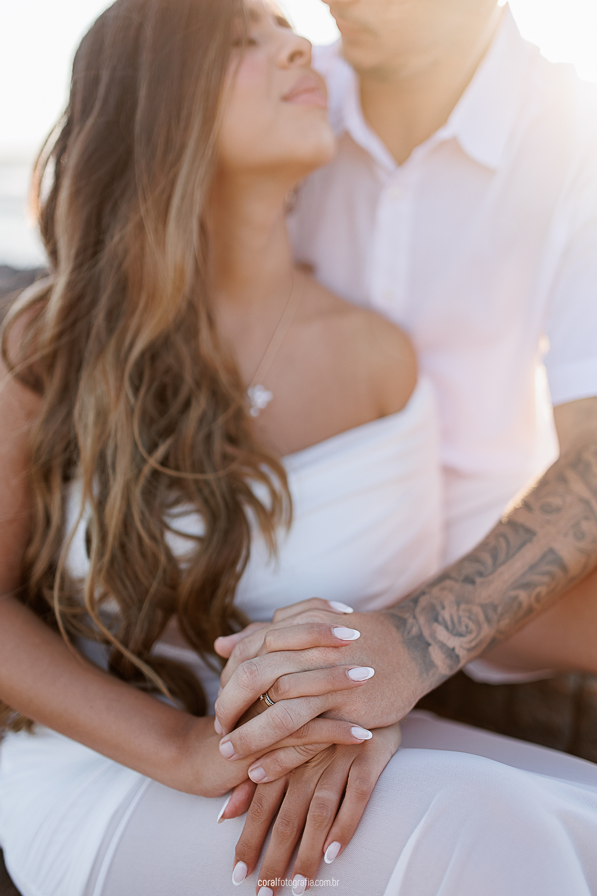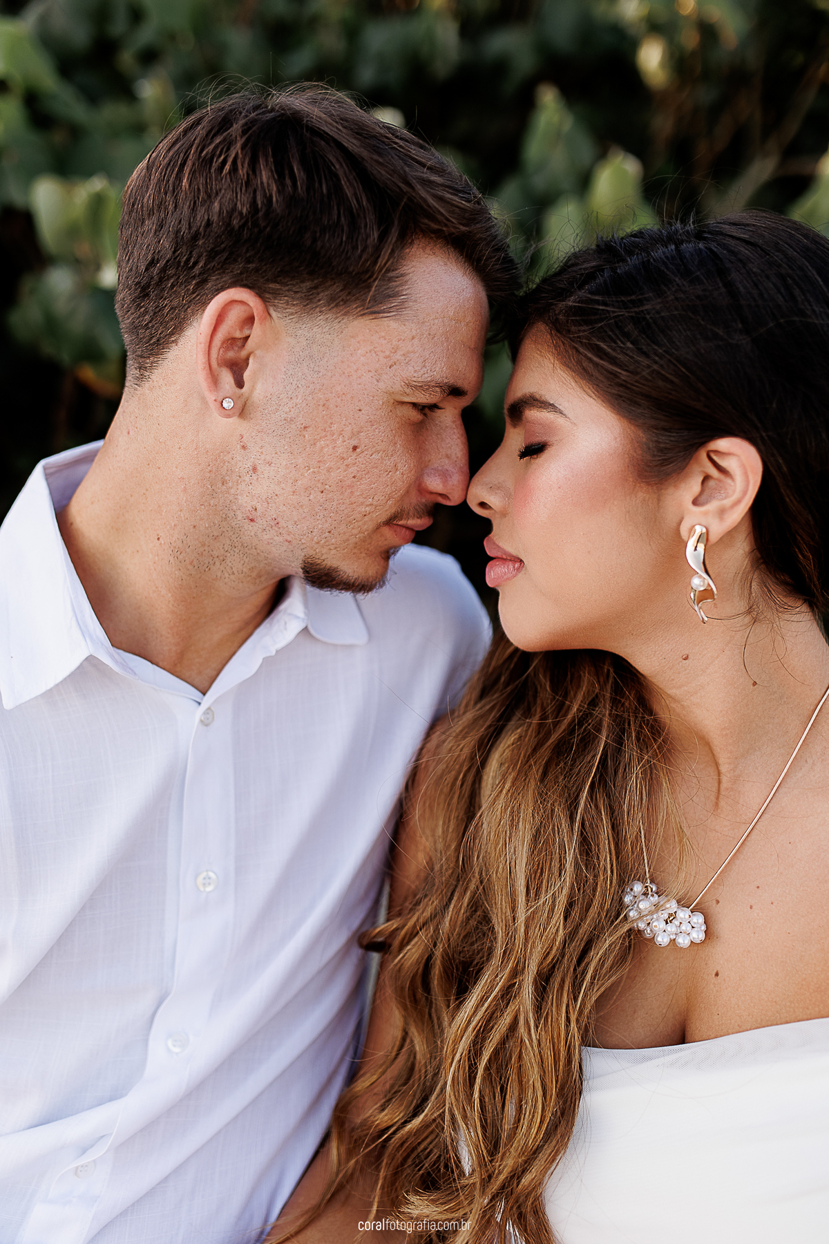 Entre risadas, passos descalços e conversas que fluíam naturalmente, deixamos o momento acontecer. A cada minuto o céu mudava, a luz ficava mais dourada, e a conexão deles ficava ainda mais evidente. Não foi só um ensaio. Foi uma manhã vivida com intensidade, fé e presença.