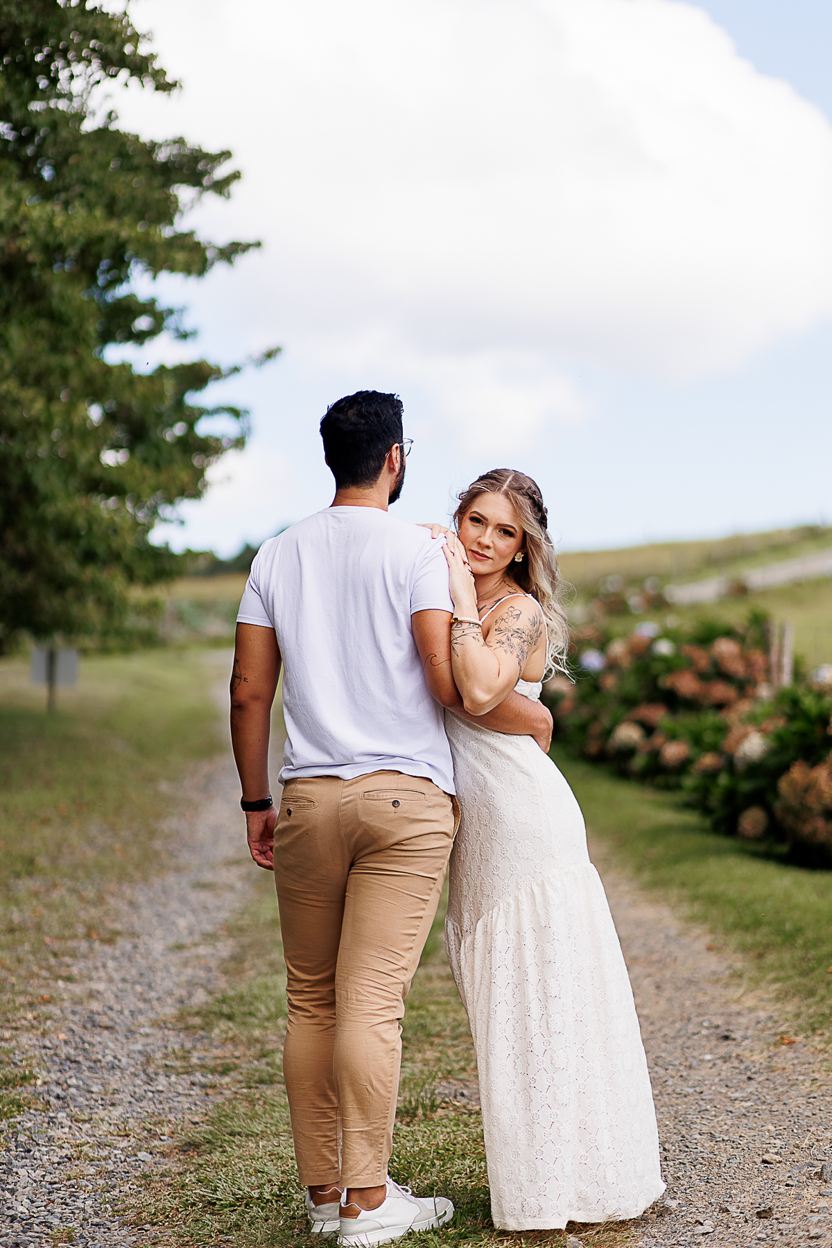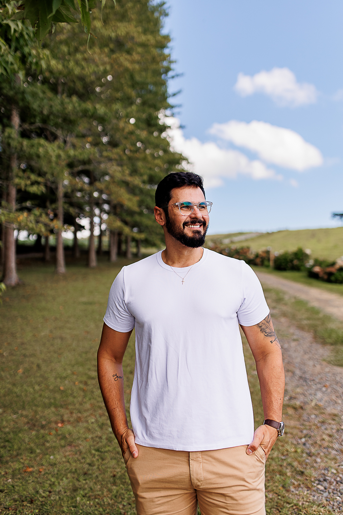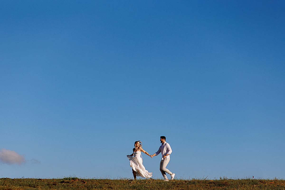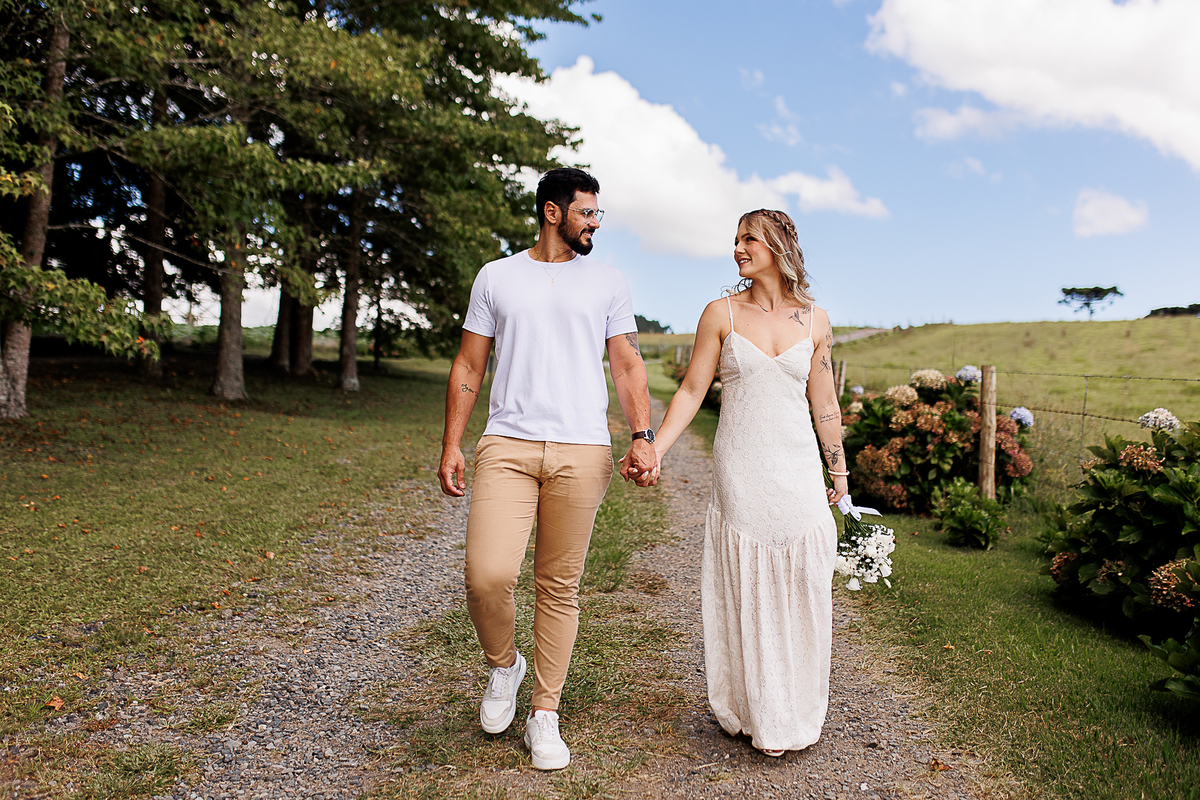 Escolhemos Campo Alegre como cenário para essa sessão. Um lugar lindo, com paisagens que tiram o fôlego… mas, sendo bem sincera, o que mais chamava atenção naquele dia não era o cenário. Era a forma como eles se olham, como riem juntos, como caminham lado a lado com tanta naturalidade.