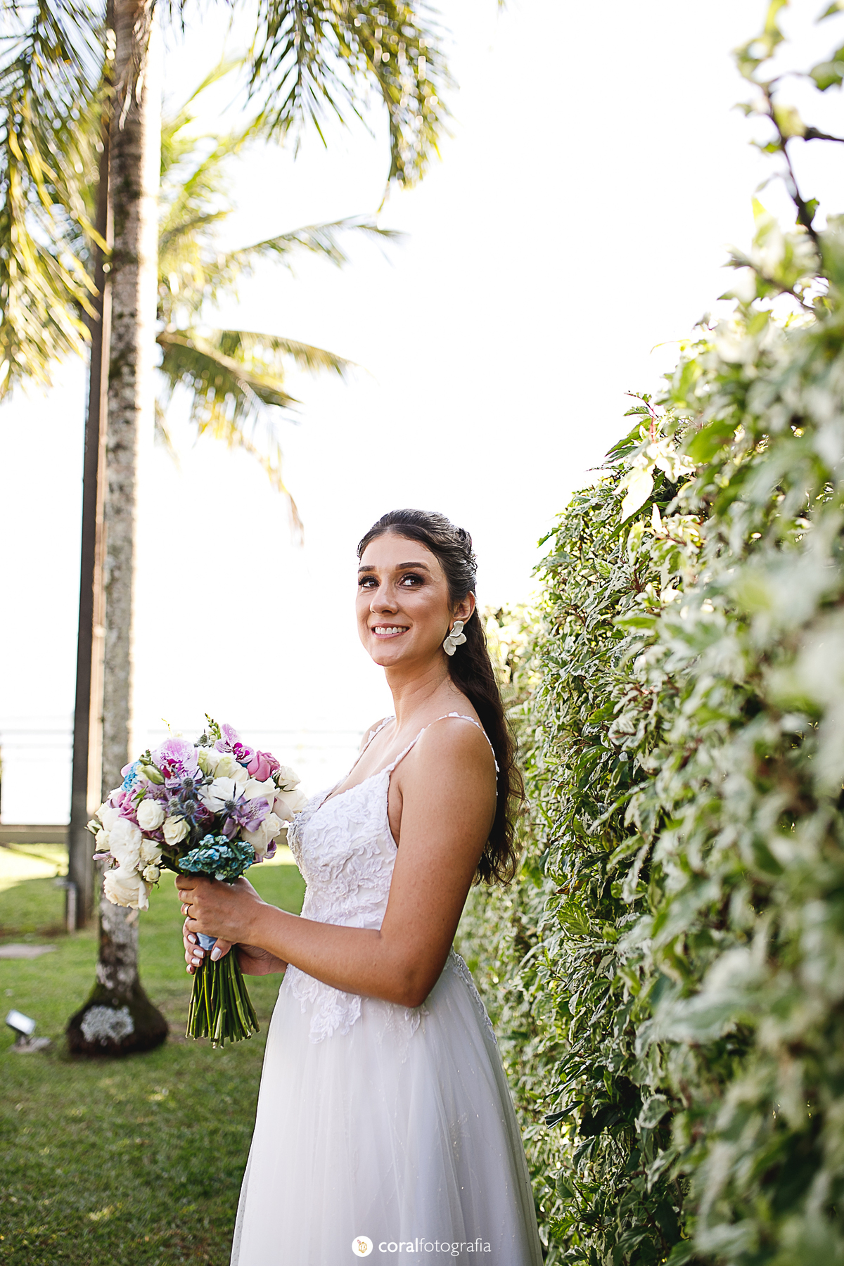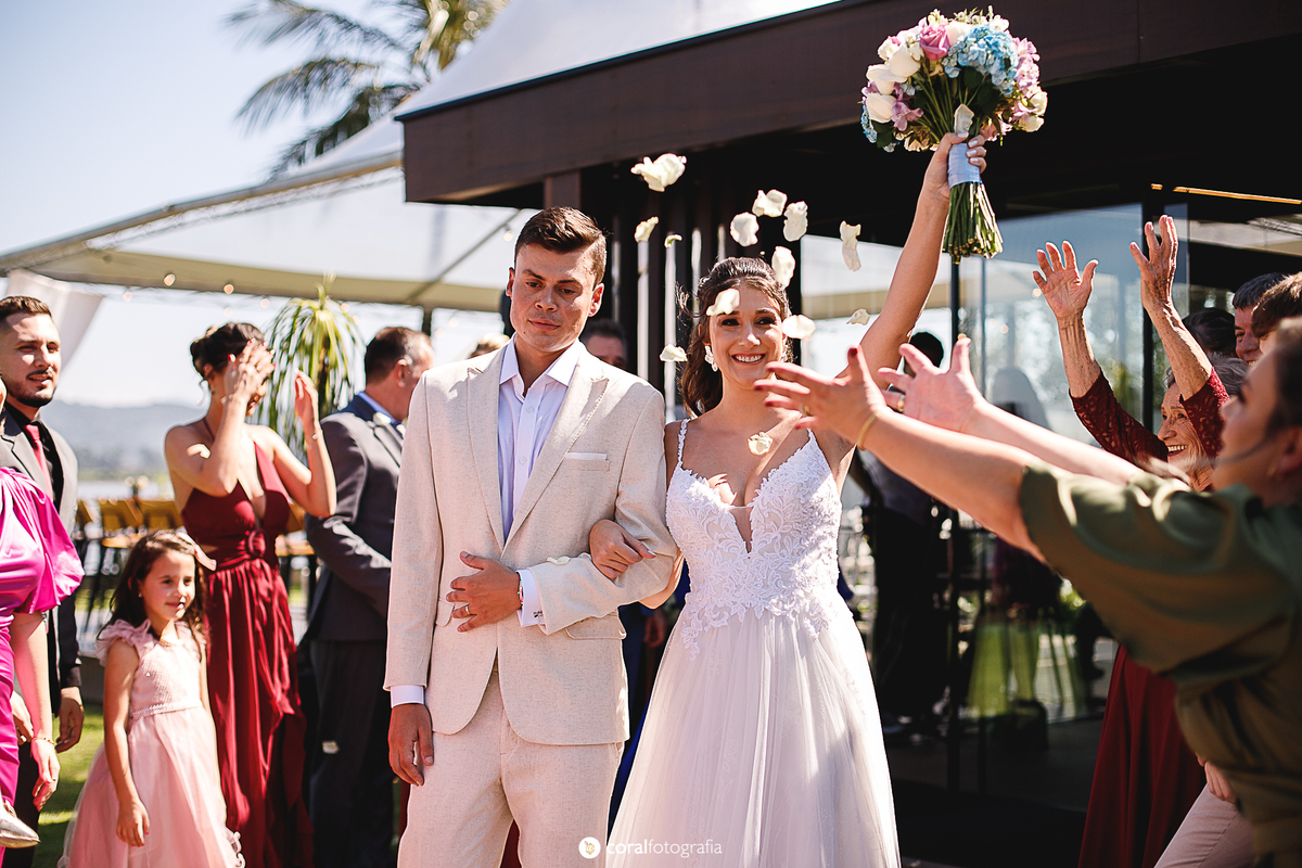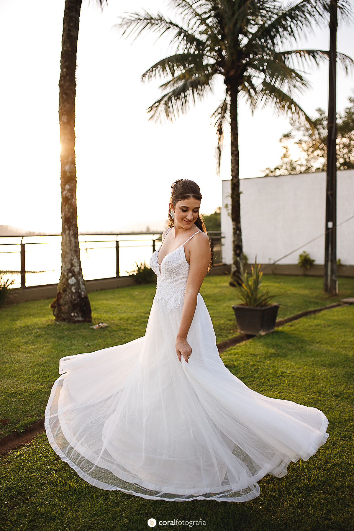 Depois de uma semana chuvosa, o dia tão esperado do casamento de Karla e Richely finalmente chegou, trazendo consigo um sol brilhante e acolhedor, iluminando a baía da Babitonga com sua suavidade. A cerimônia religiosa foi comovente, cheia de amor e promessas feitas sob o céu azul.