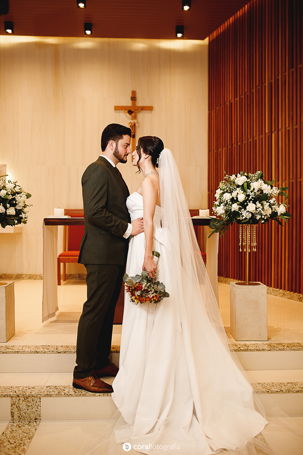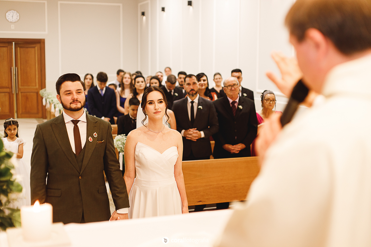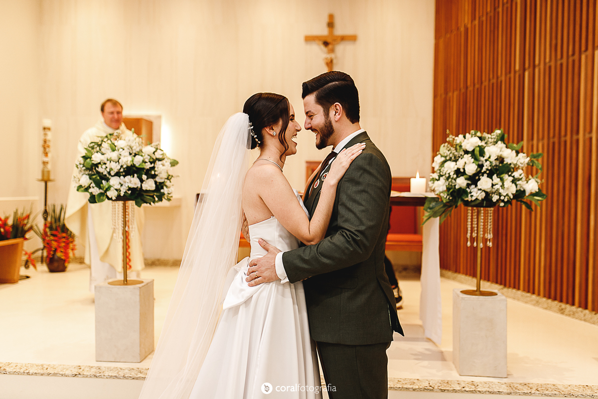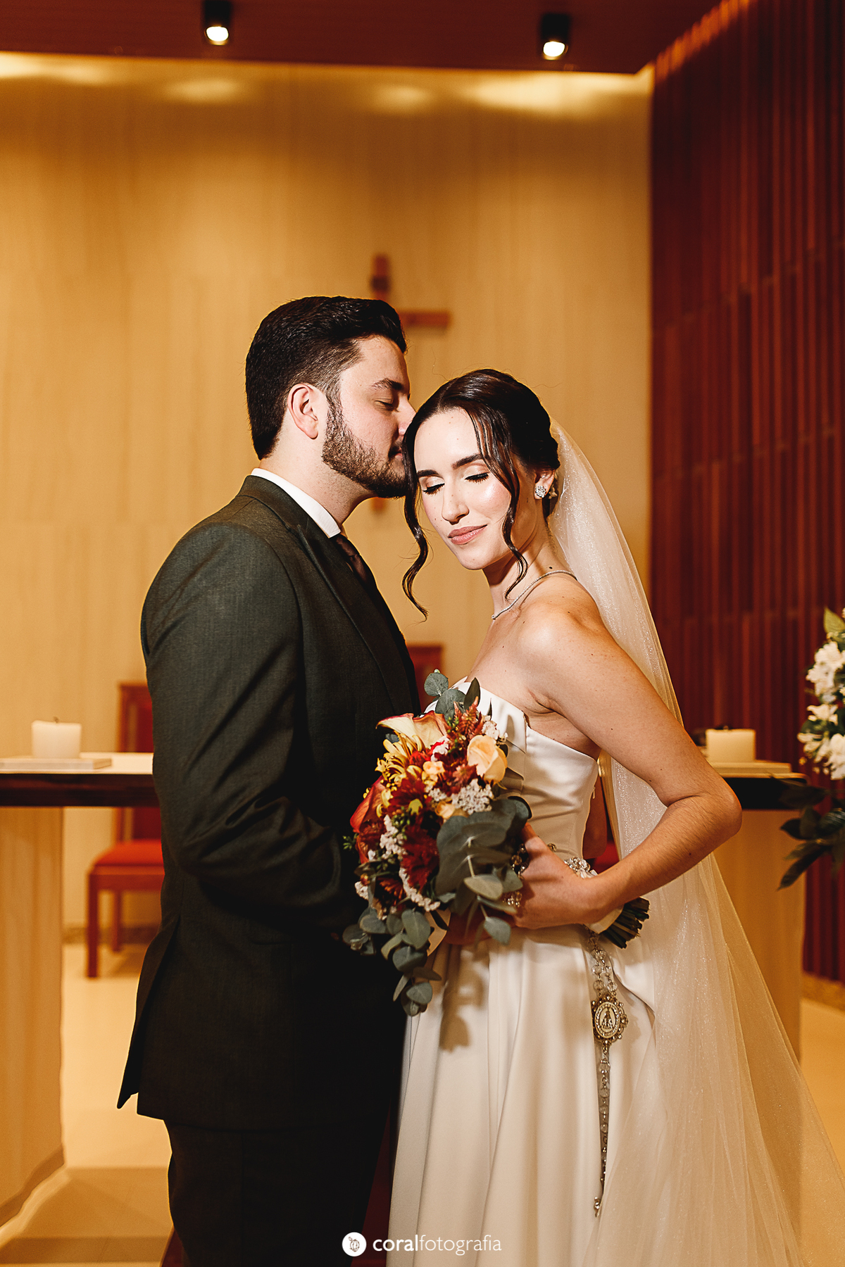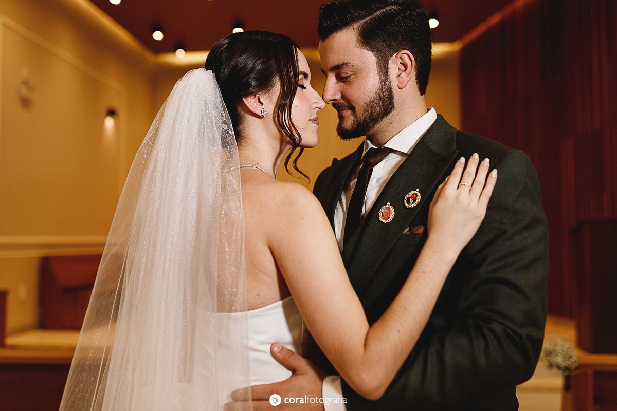 O dia do casamento deles foi uma extensão dessa conexão, um momento de profunda entrega e emoção. A intimidade, íntima e acolhedora, trouxe uma sensação de proximidade divina, como se cada detalhe tivesse sido cuidadosamente abençoado.