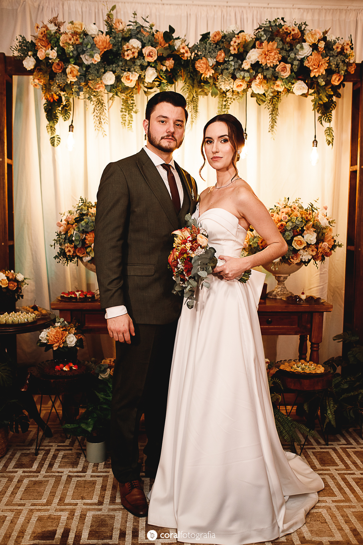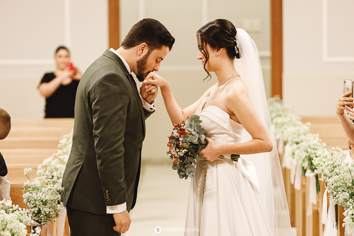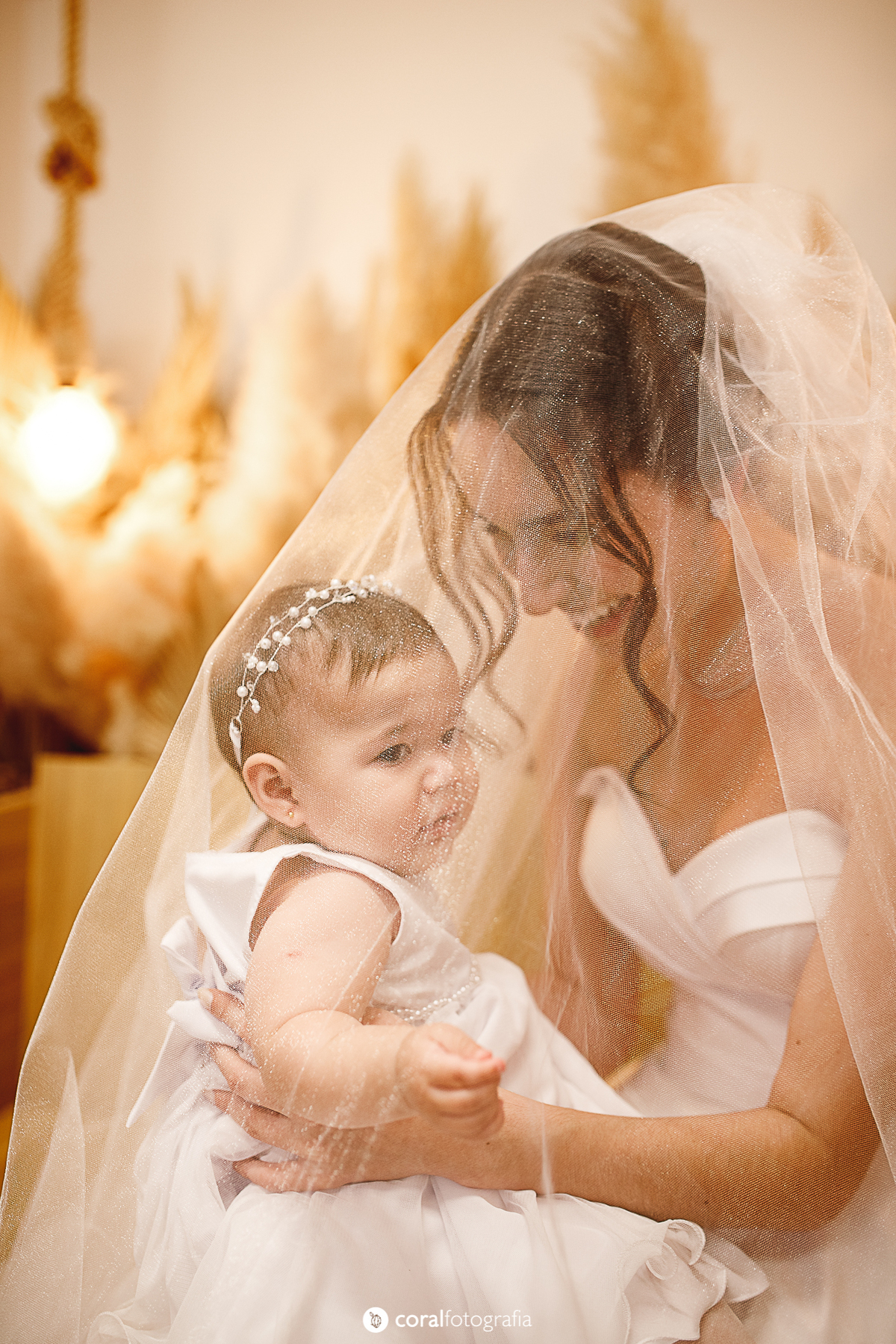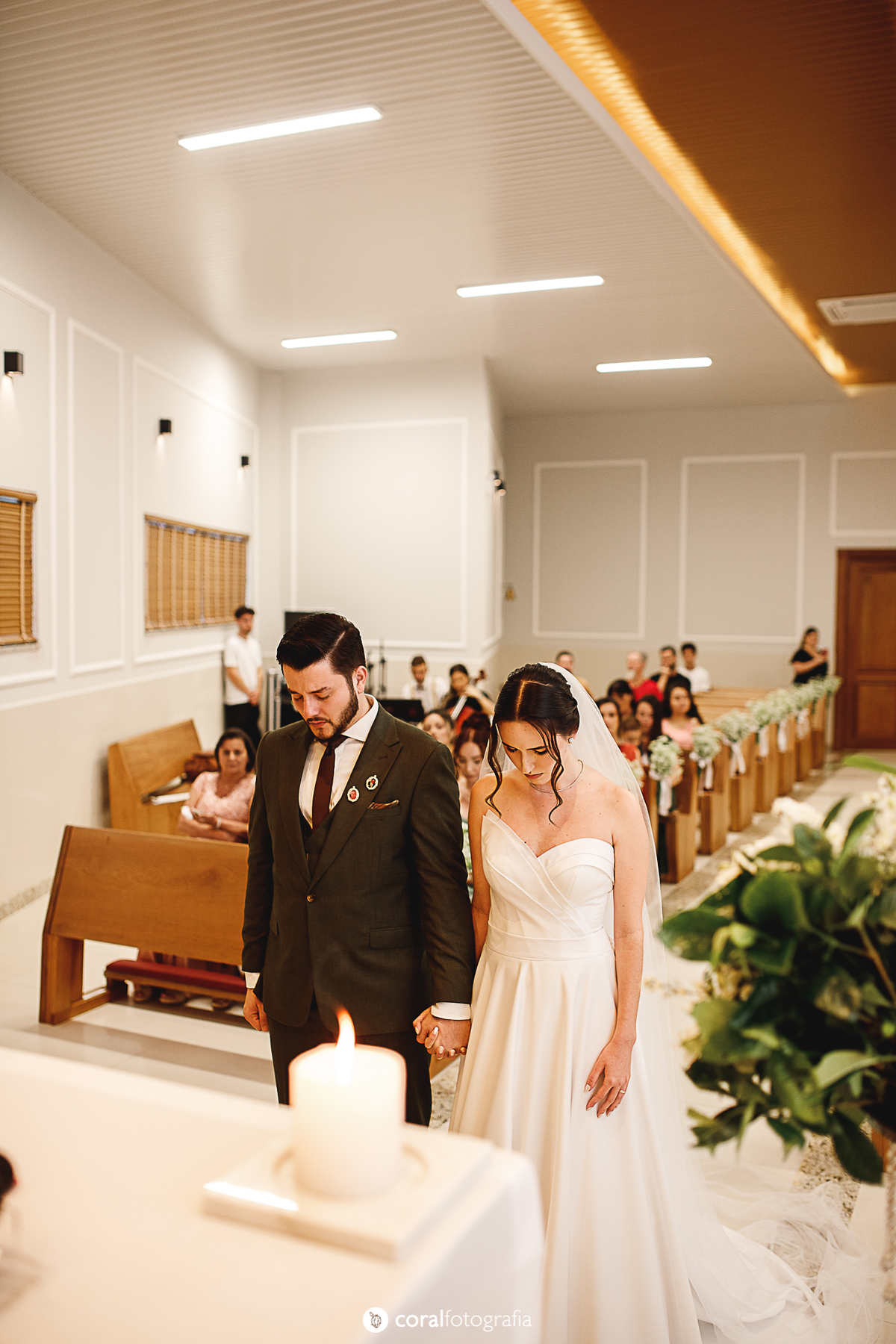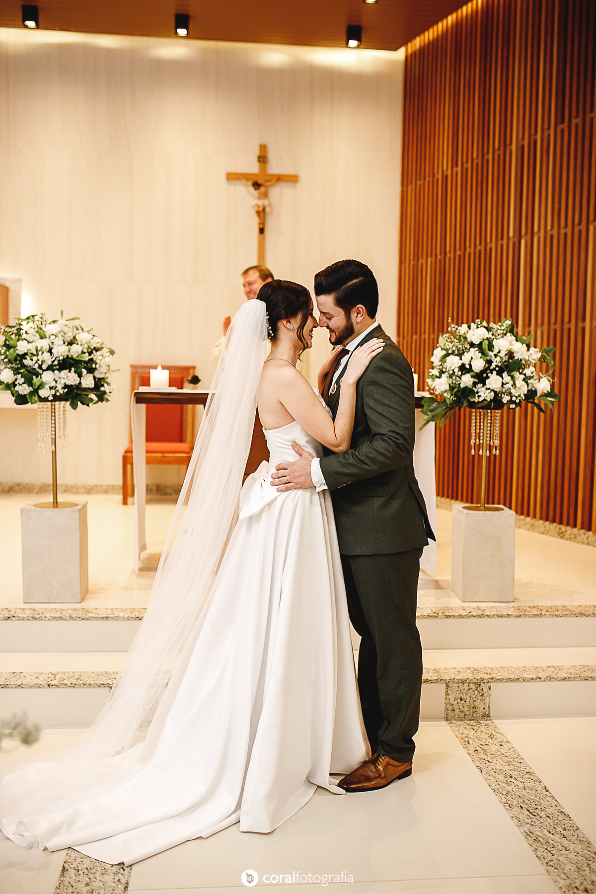 O dia do casamento deles foi uma extensão dessa conexão, um momento de profunda entrega e emoção. A intimidade, íntima e acolhedora, trouxe uma sensação de proximidade divina, como se cada detalhe tivesse sido cuidadosamente abençoado.