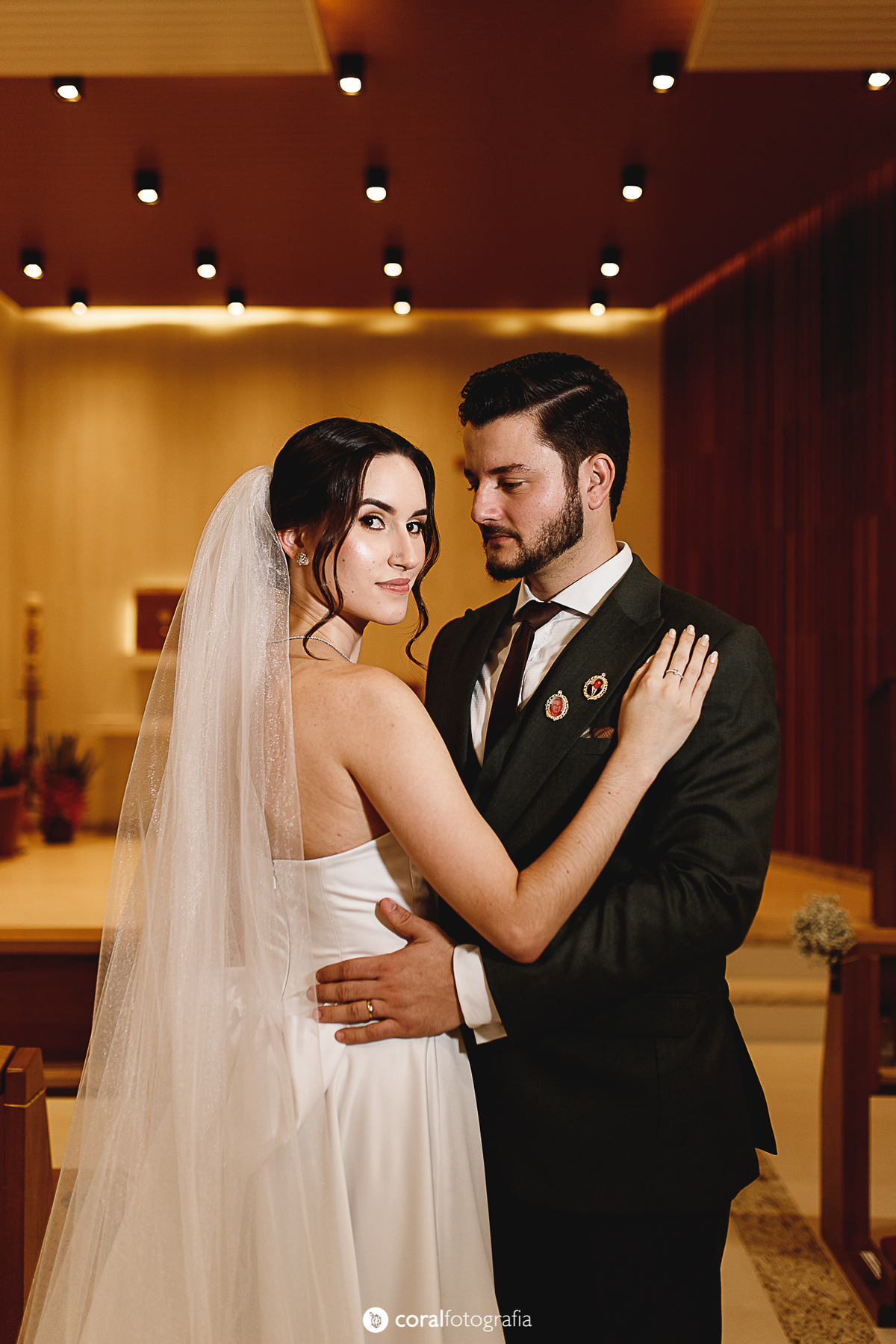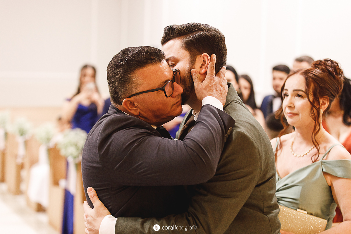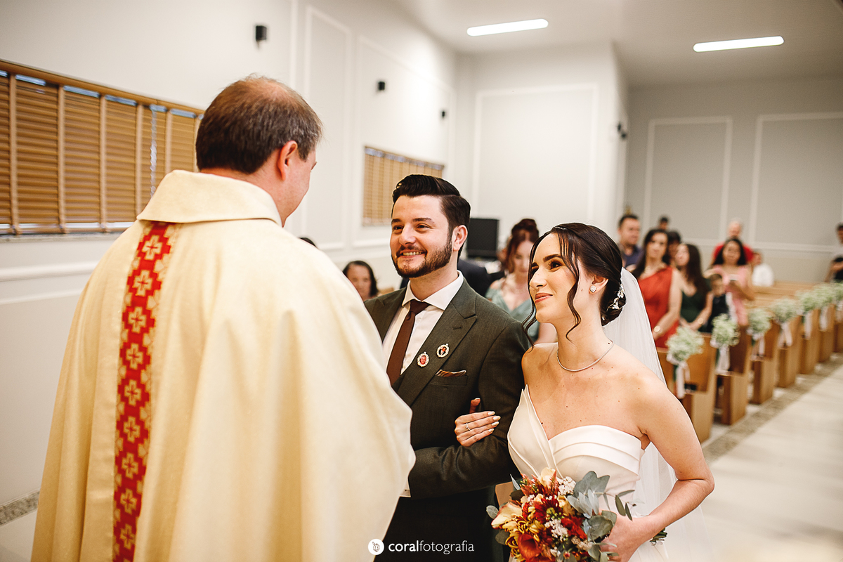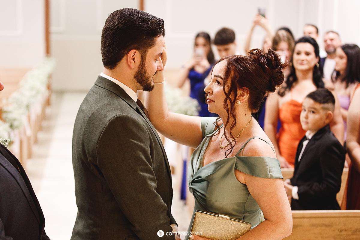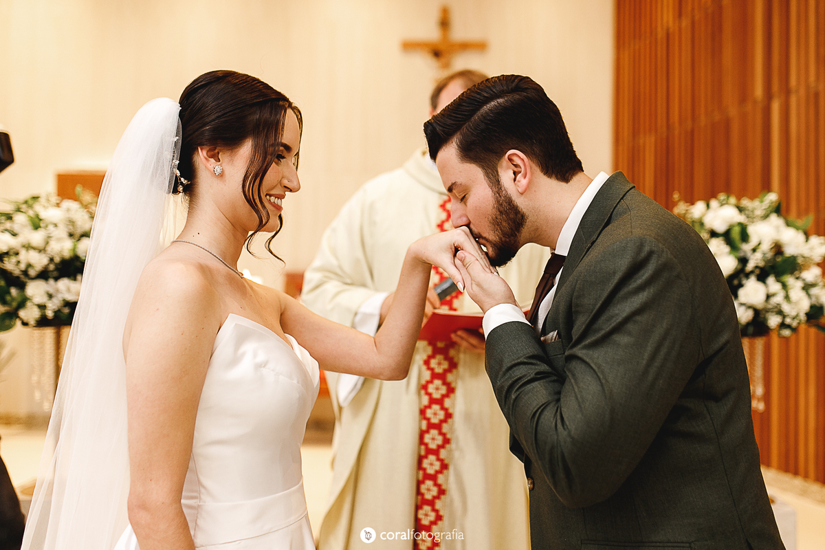 O dia do casamento deles foi uma extensão dessa conexão, um momento de profunda entrega e emoção. A intimidade, íntima e acolhedora, trouxe uma sensação de proximidade divina, como se cada detalhe tivesse sido cuidadosamente abençoado.