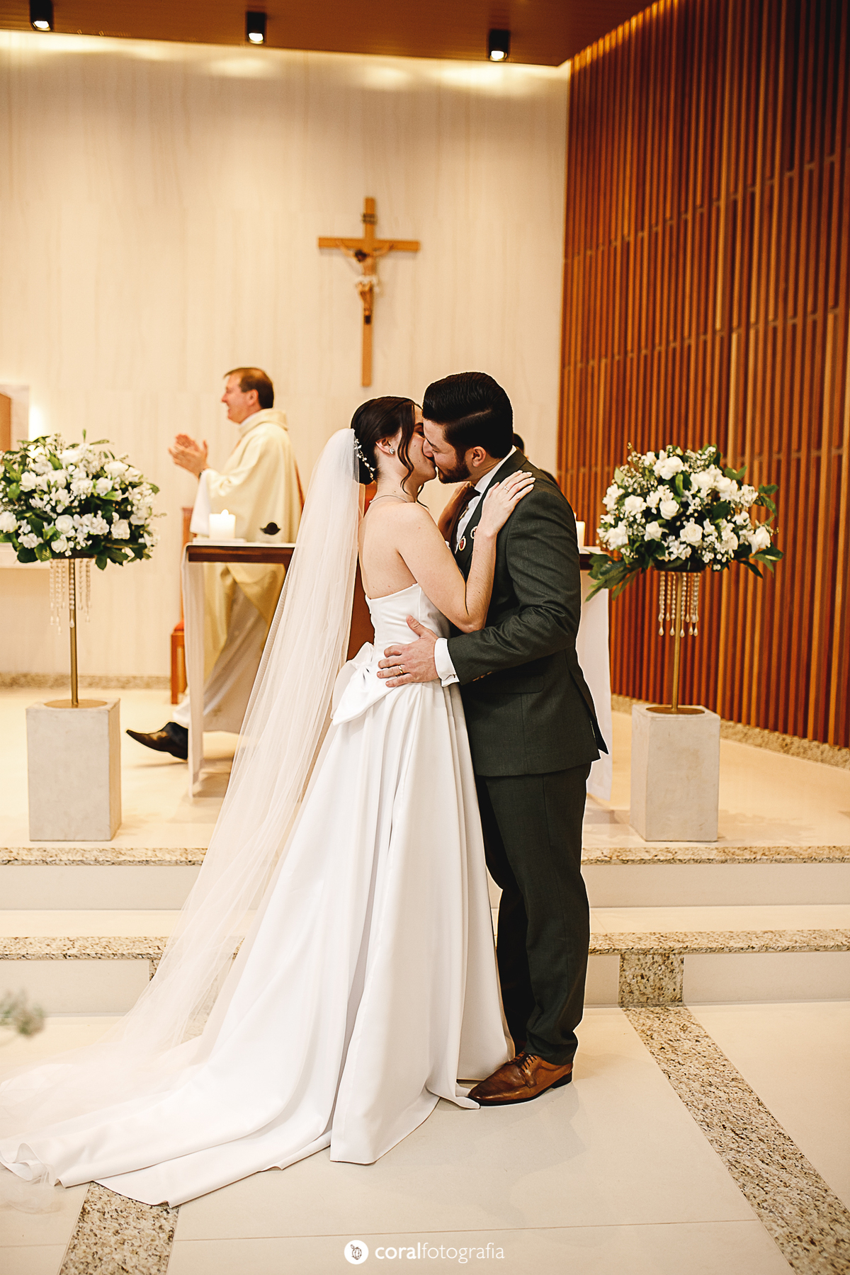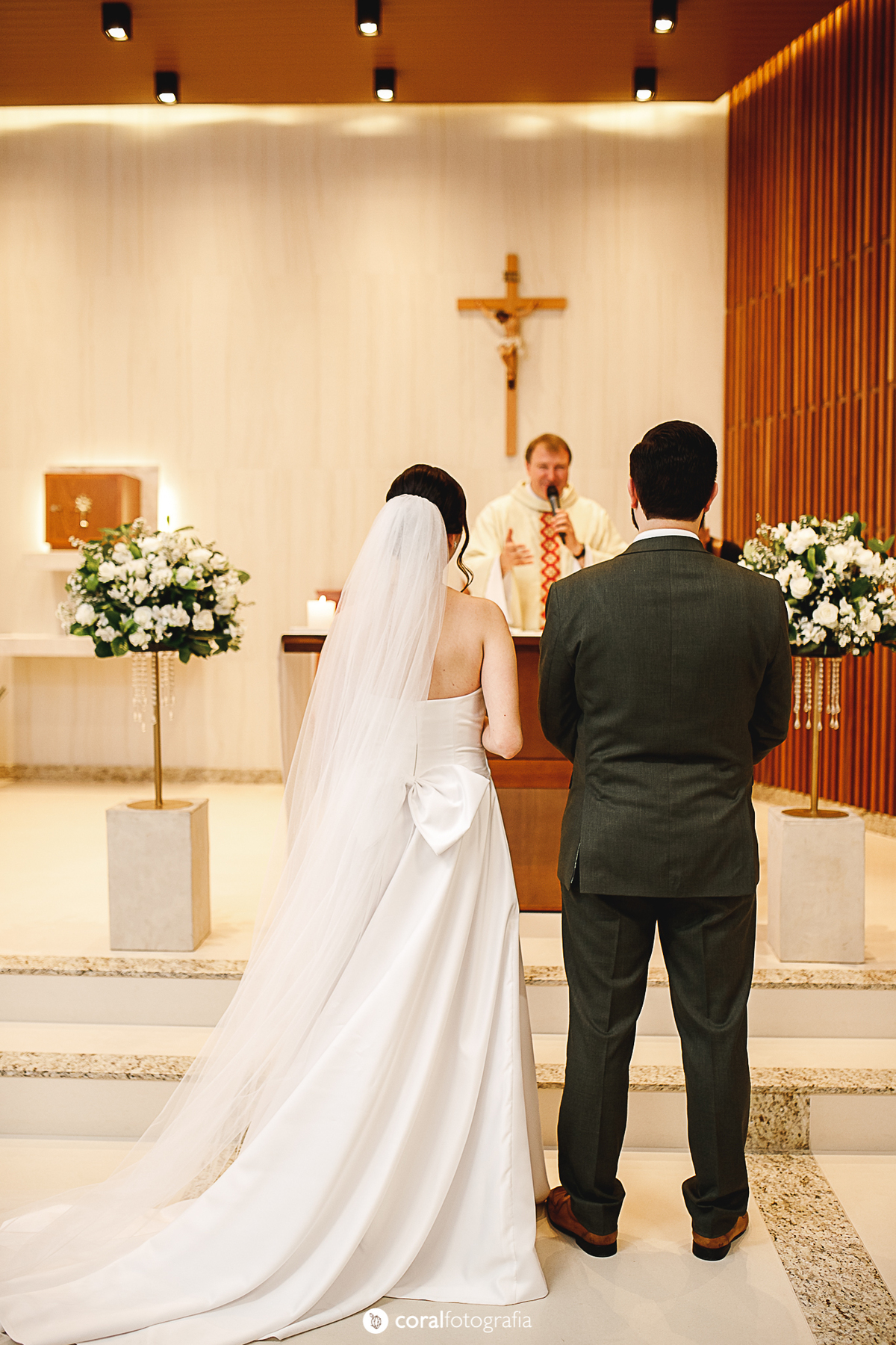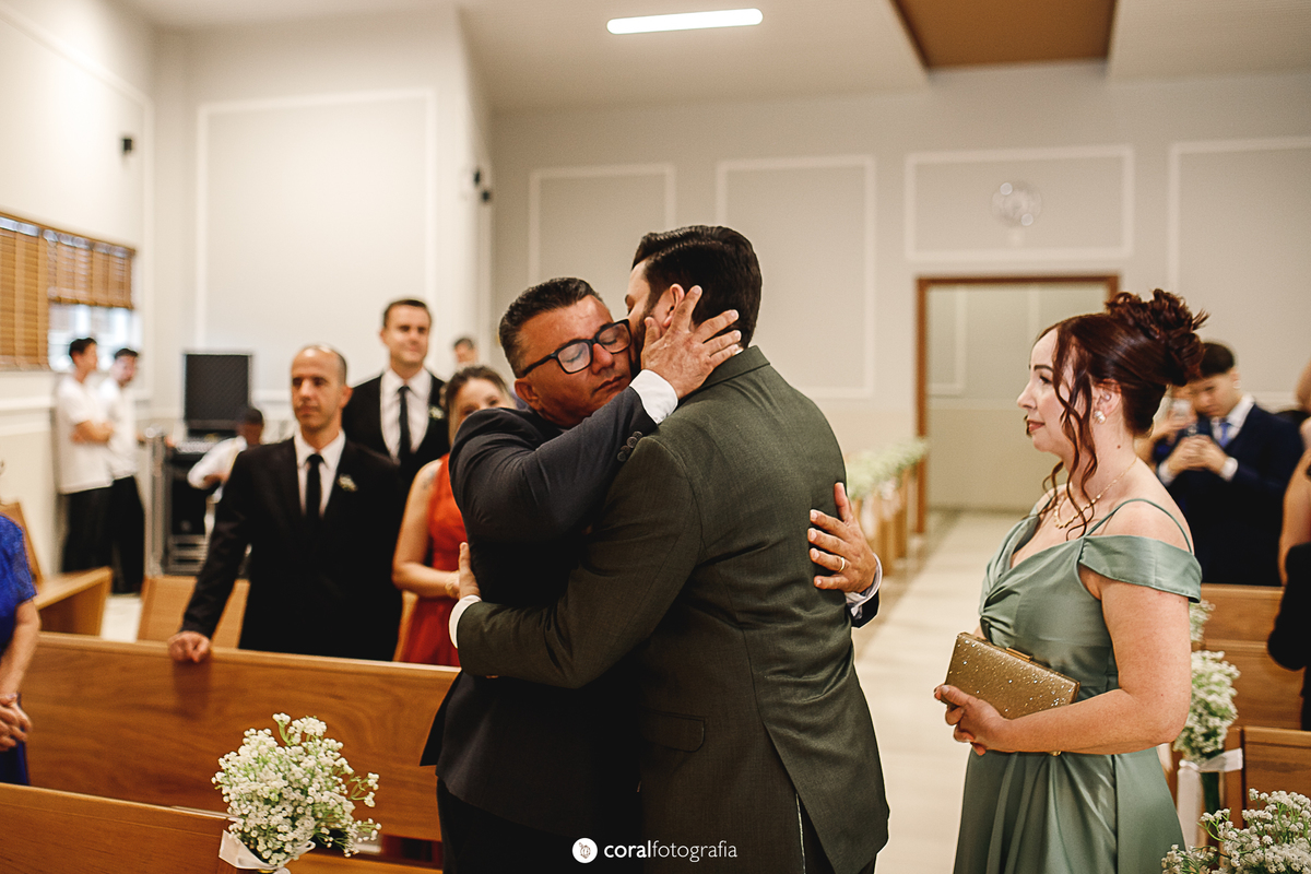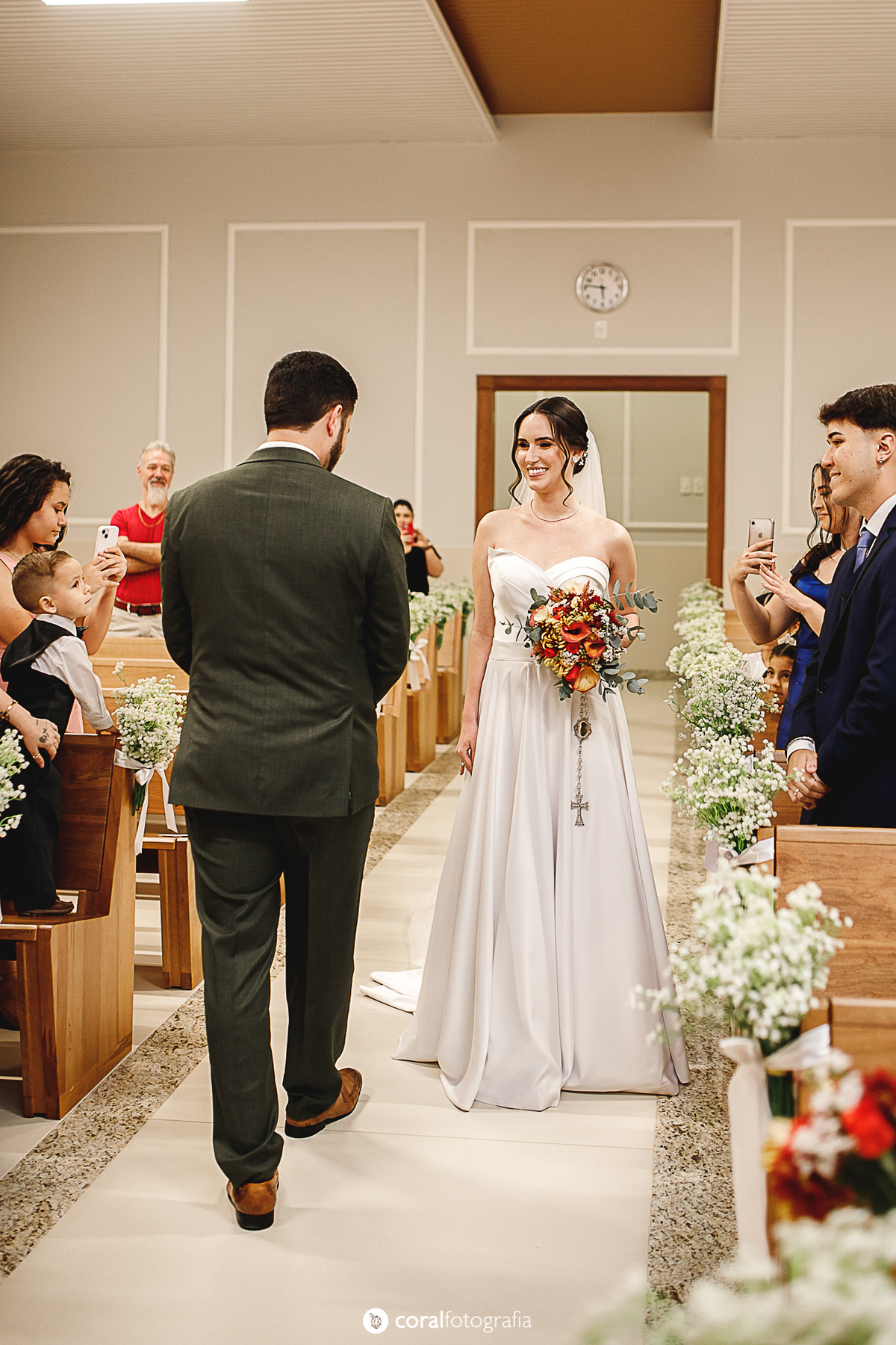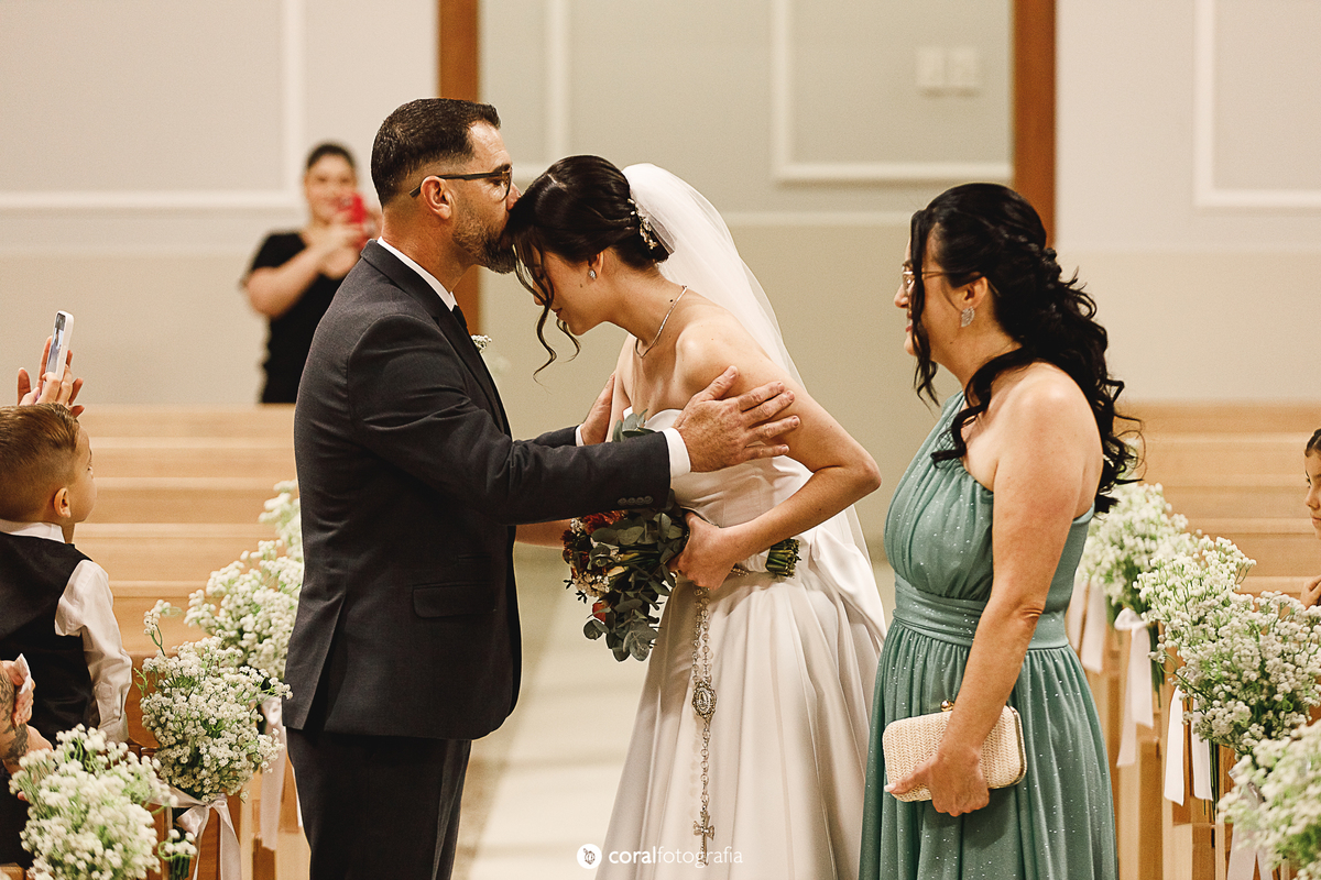 O dia do casamento deles foi uma extensão dessa conexão, um momento de profunda entrega e emoção. A intimidade, íntima e acolhedora, trouxe uma sensação de proximidade divina, como se cada detalhe tivesse sido cuidadosamente abençoado.