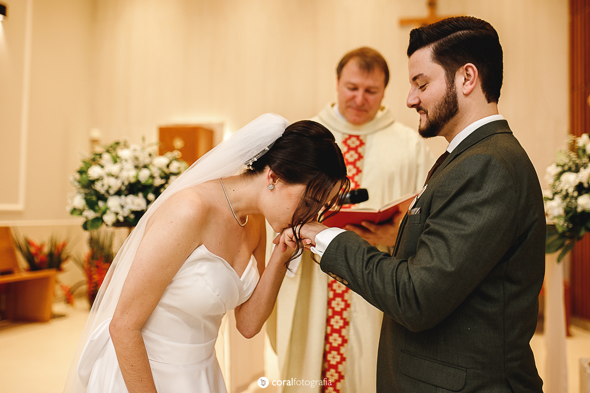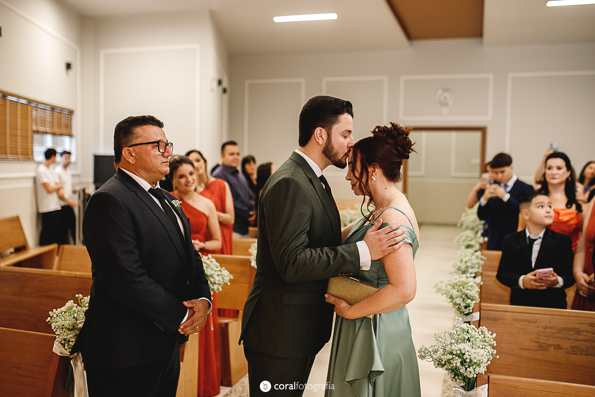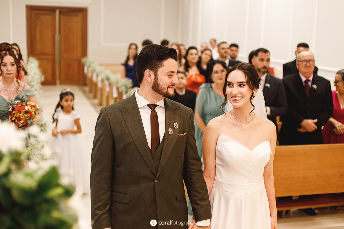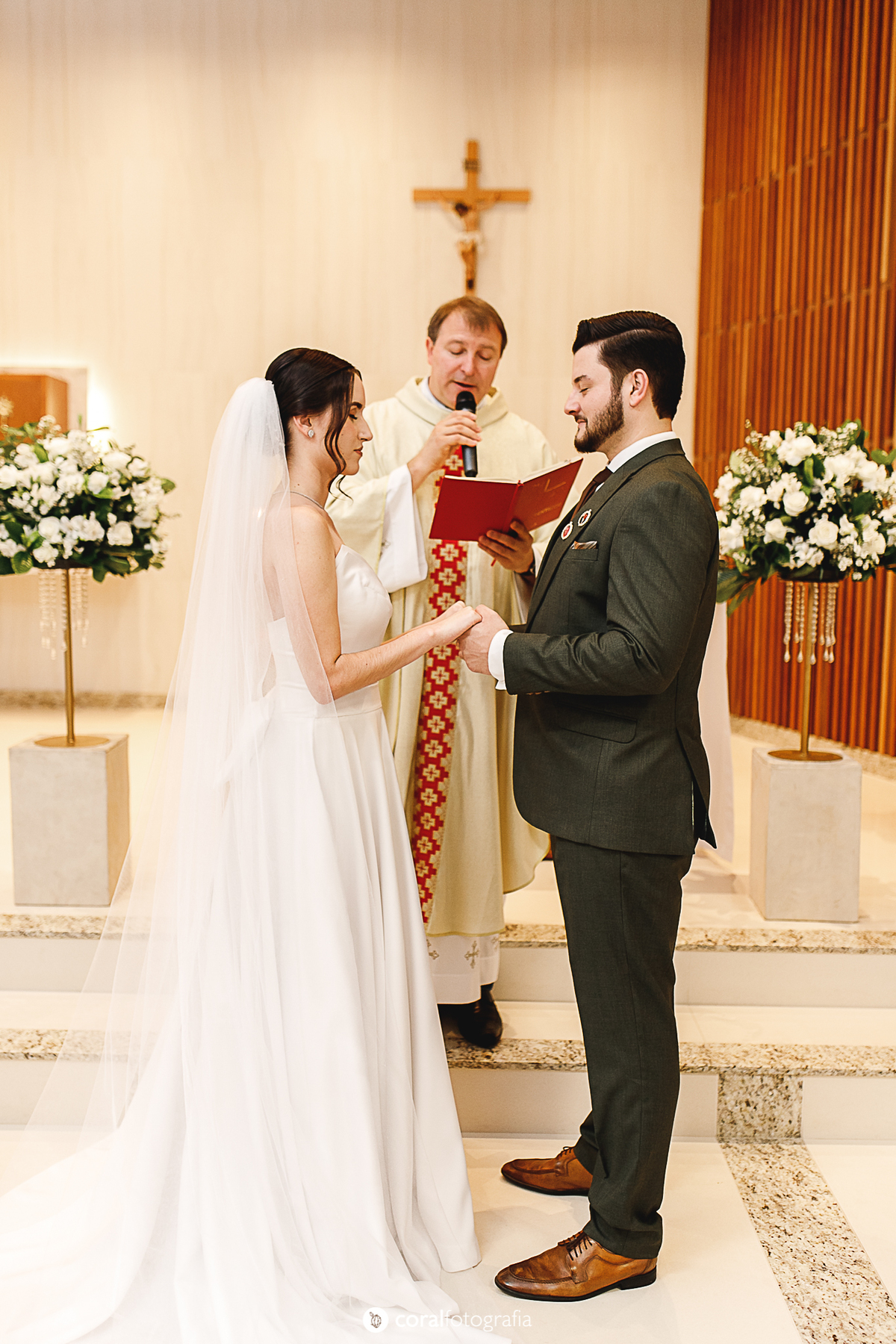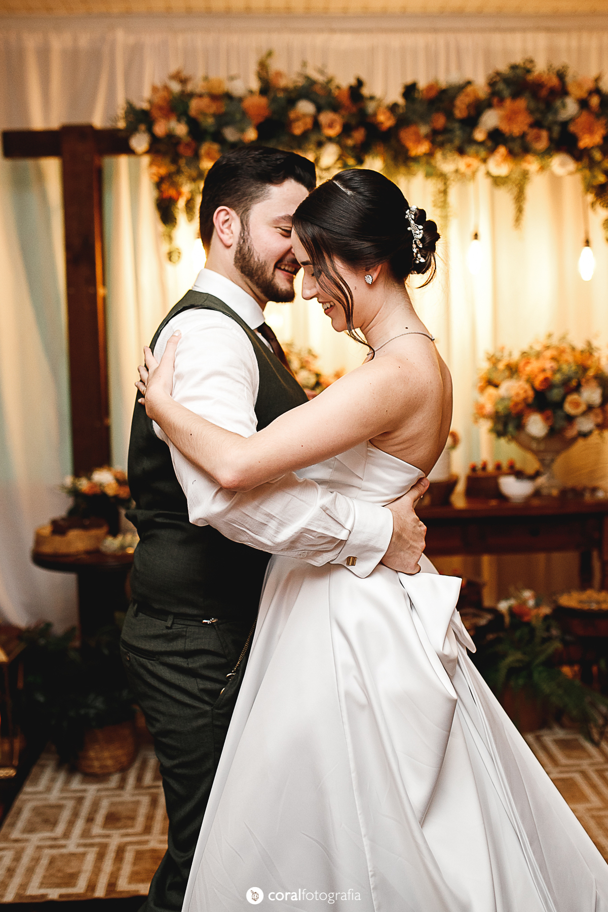 O dia do casamento deles foi uma extensão dessa conexão, um momento de profunda entrega e emoção. A intimidade, íntima e acolhedora, trouxe uma sensação de proximidade divina, como se cada detalhe tivesse sido cuidadosamente abençoado.