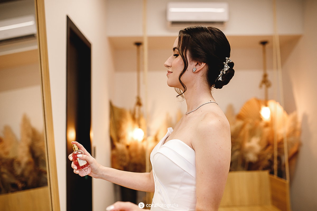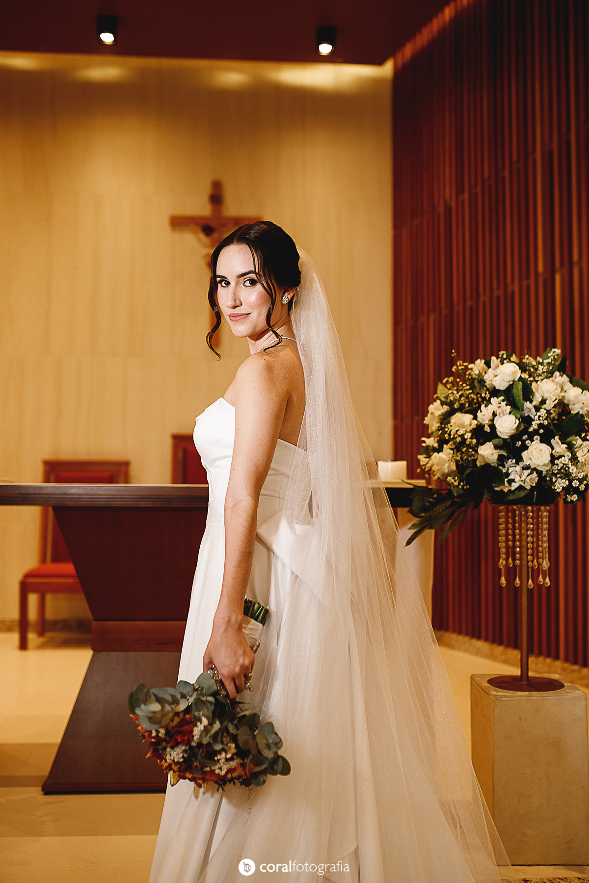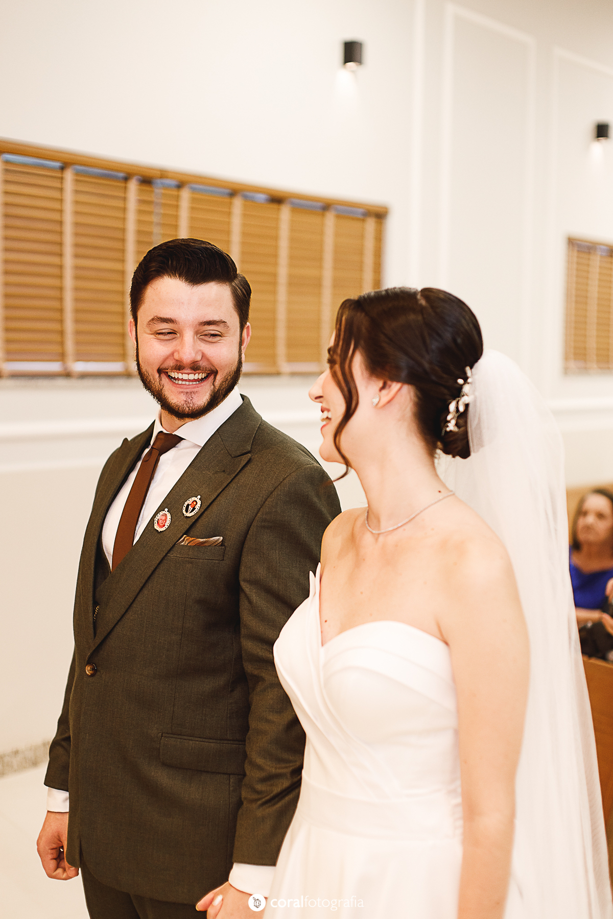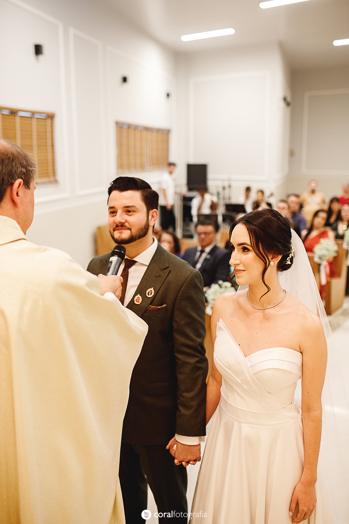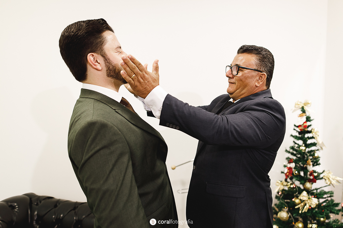 O dia do casamento deles foi uma extensão dessa conexão, um momento de profunda entrega e emoção. A intimidade, íntima e acolhedora, trouxe uma sensação de proximidade divina, como se cada detalhe tivesse sido cuidadosamente abençoado.