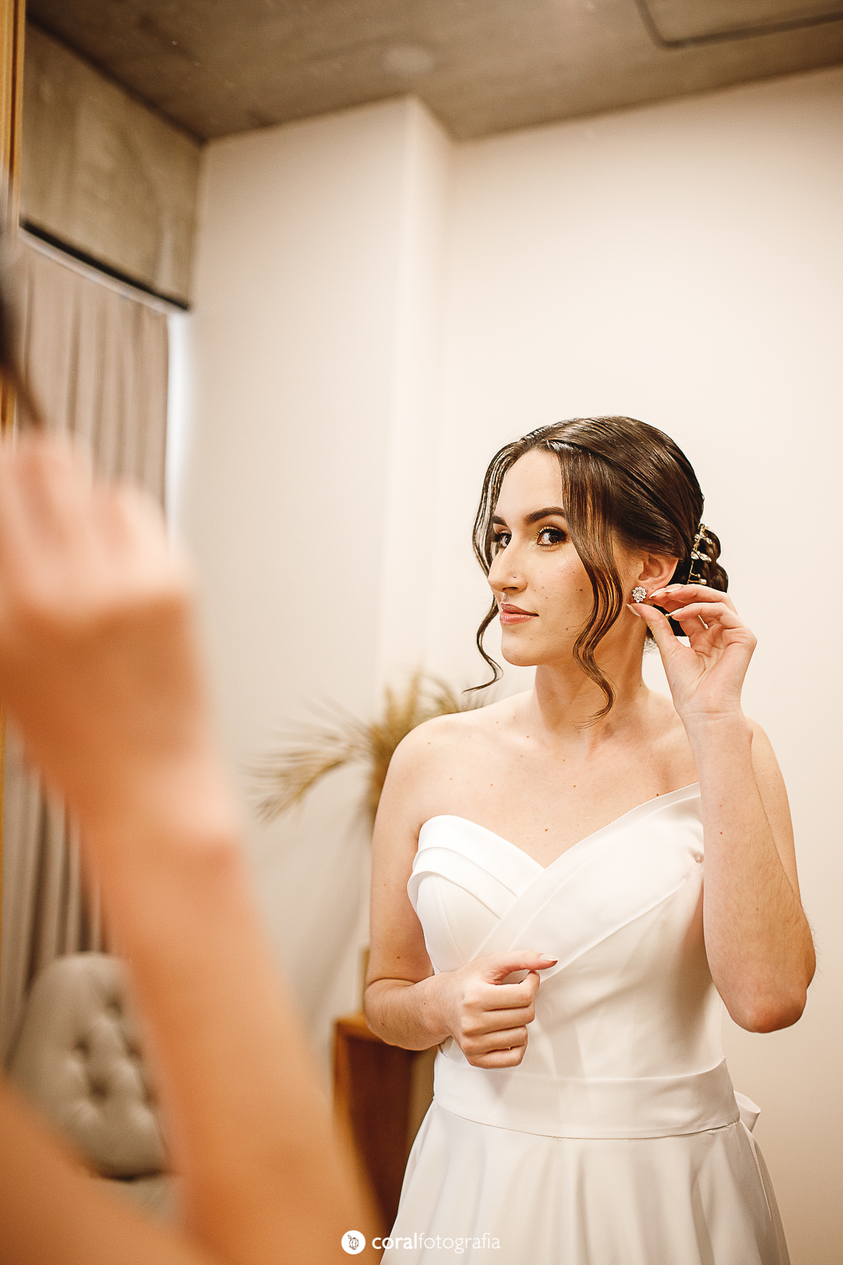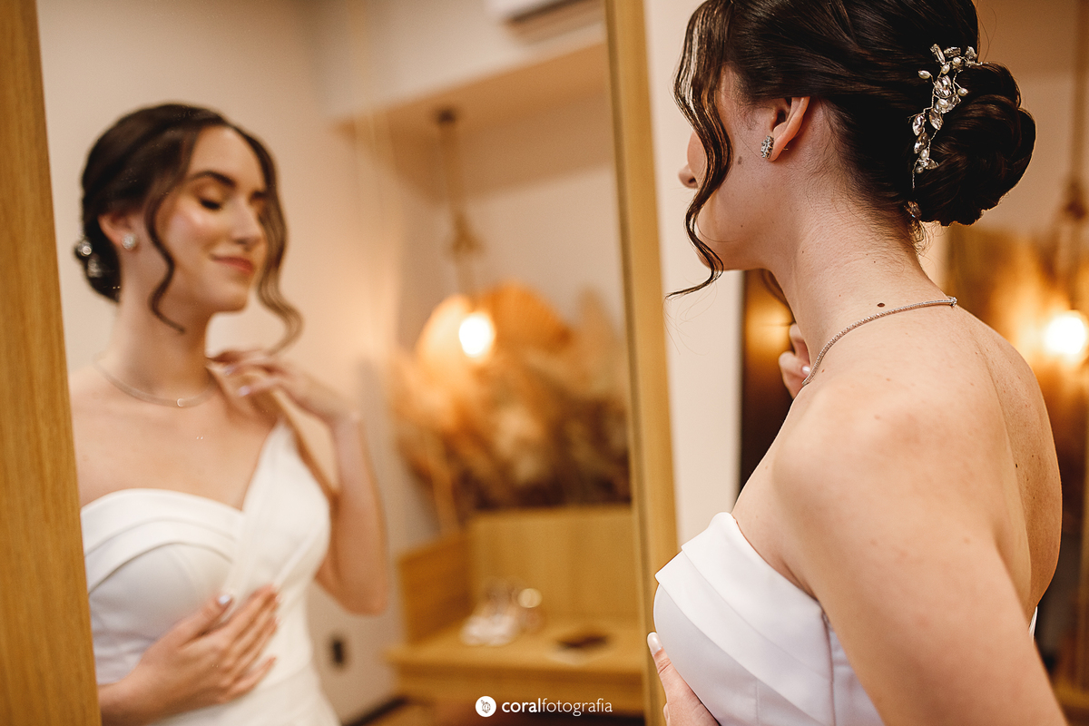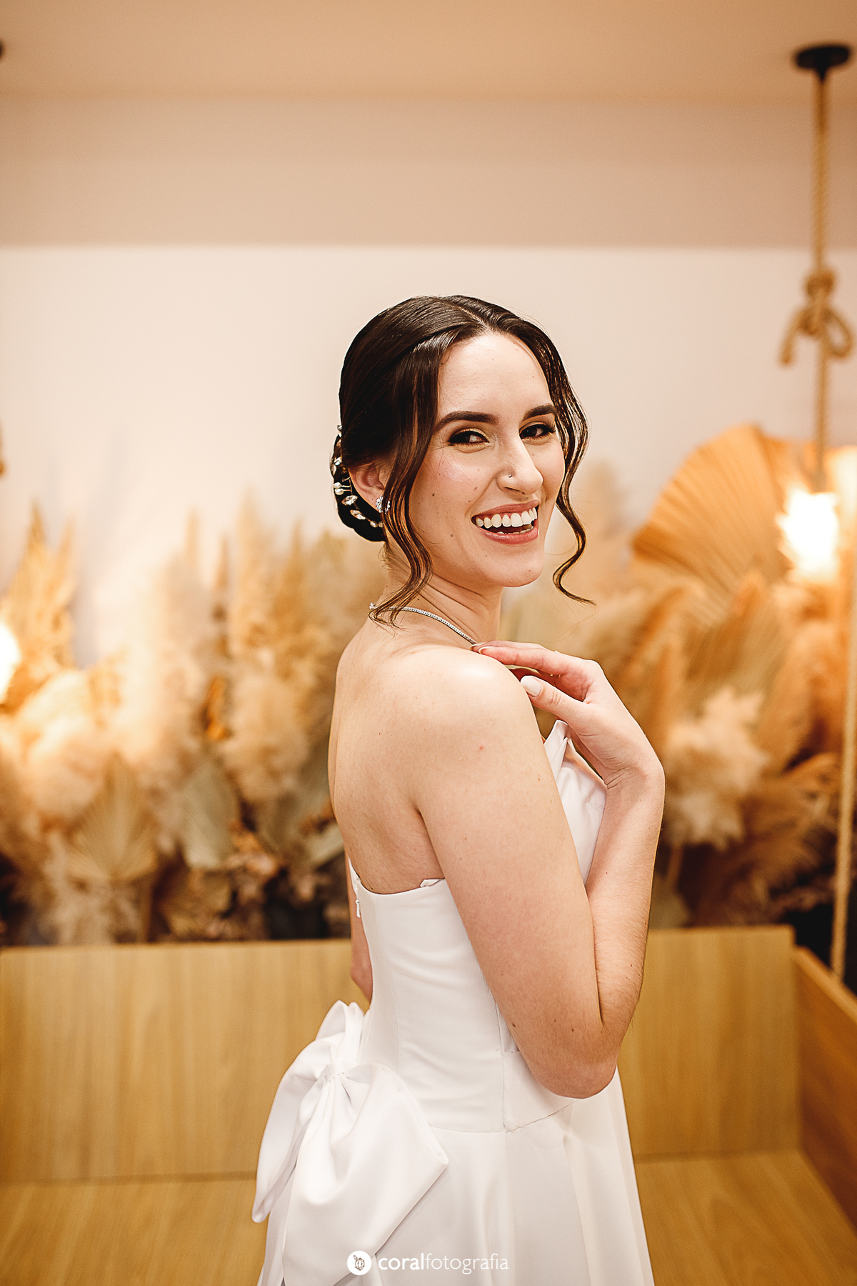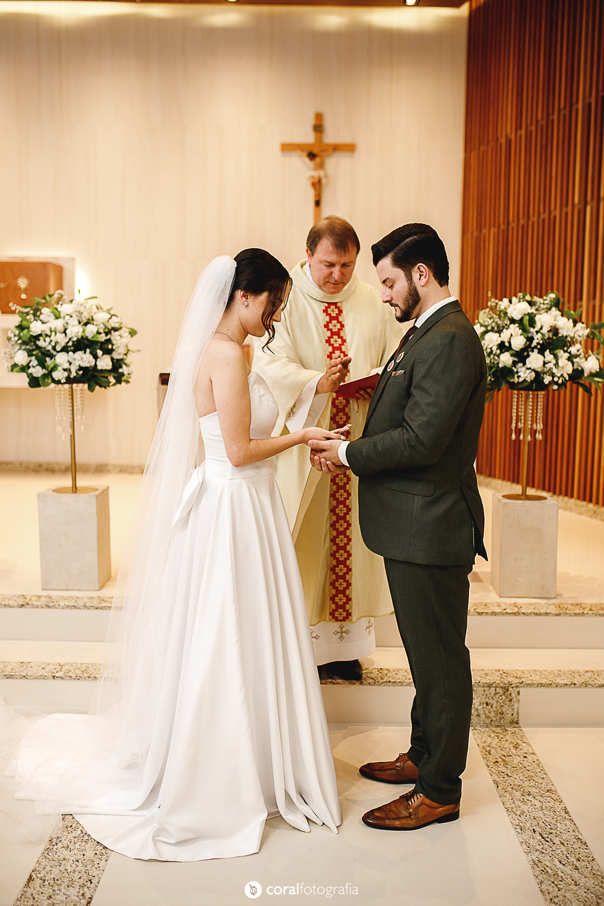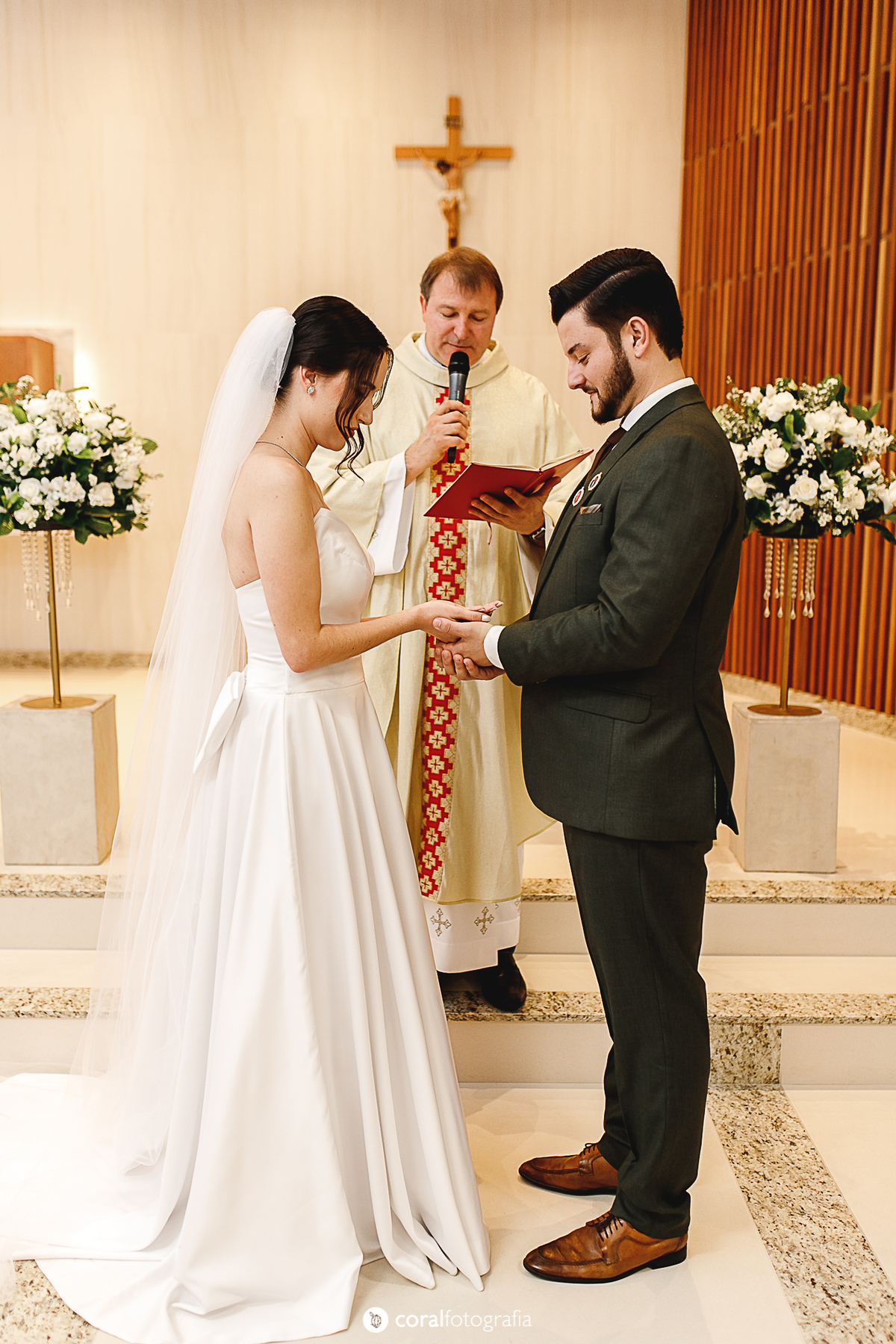 O dia do casamento deles foi uma extensão dessa conexão, um momento de profunda entrega e emoção. A intimidade, íntima e acolhedora, trouxe uma sensação de proximidade divina, como se cada detalhe tivesse sido cuidadosamente abençoado.