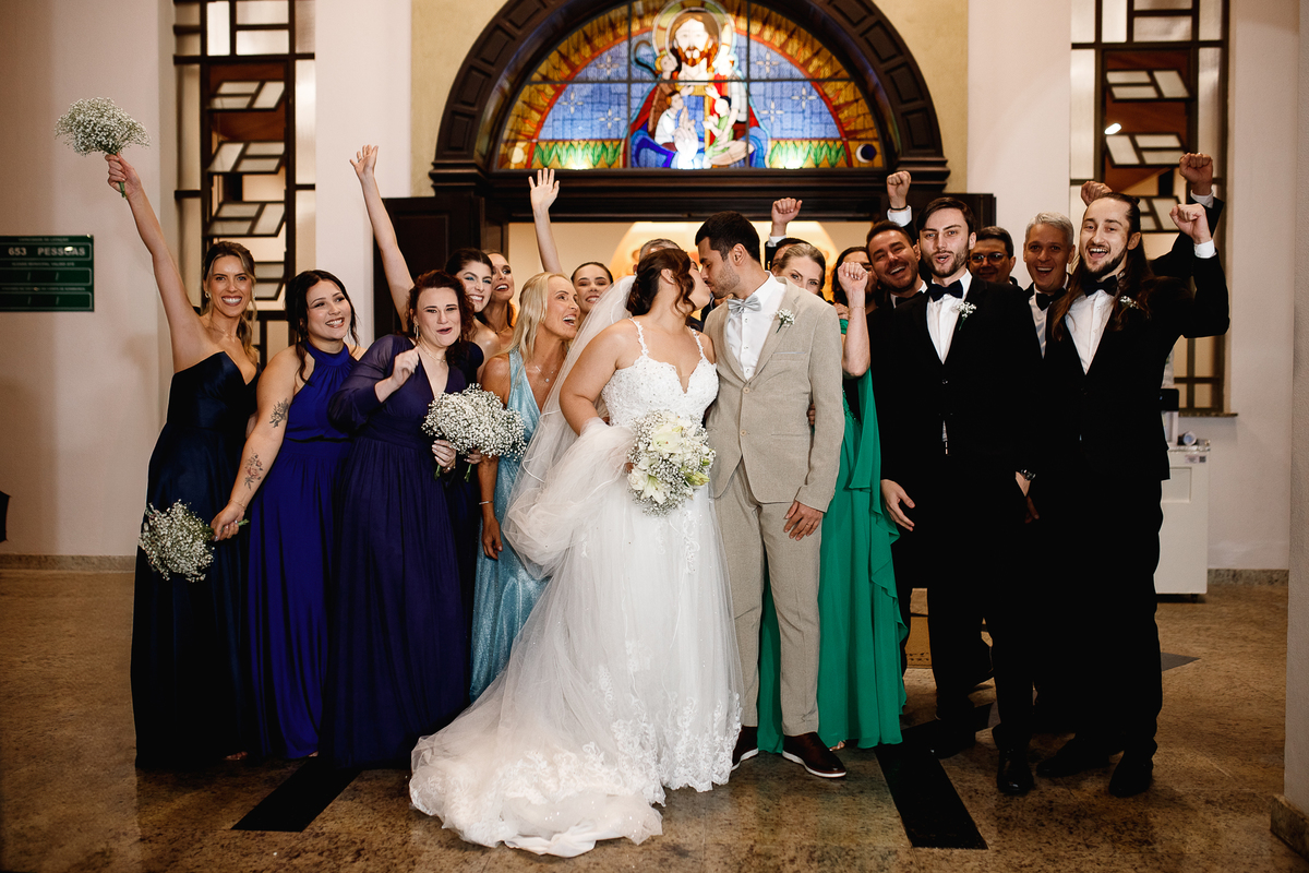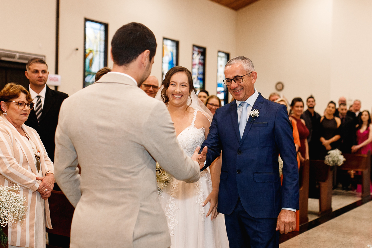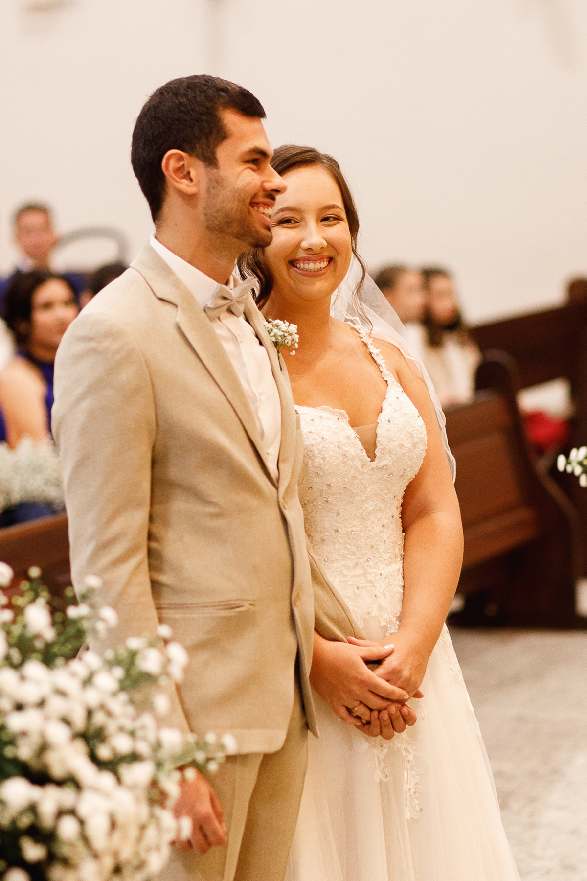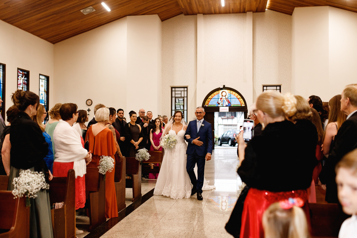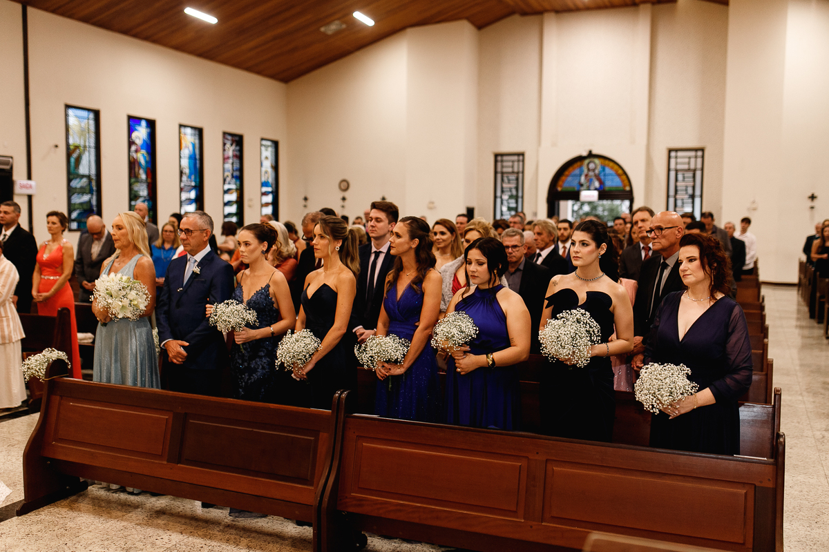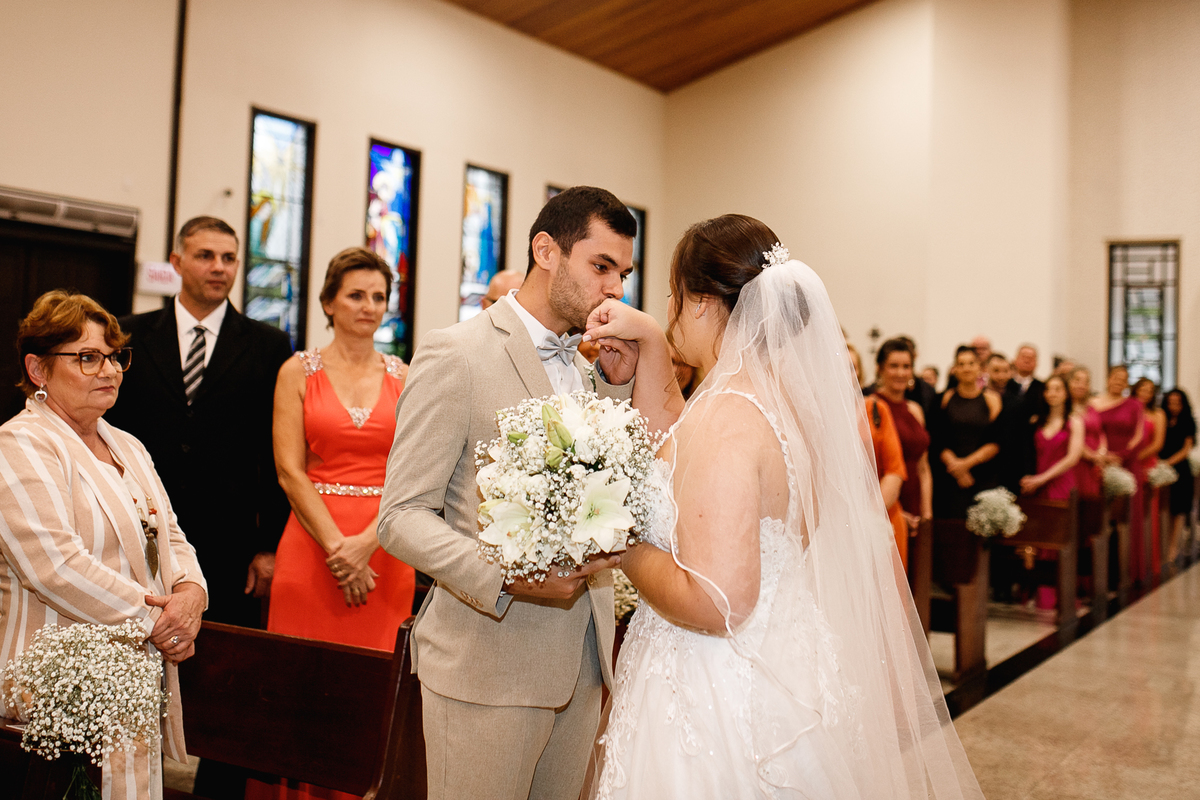 Renata e Eduardo disseram “sim” diante do altar, na presença de Deus, rodeados pelo carinho das pessoas que mais amam. A cerimônia na igreja foi íntima e cheia de significado—com olhares cúmplices, sorrisos sinceros e mãos entrelaçadas que não queriam mais se soltar.