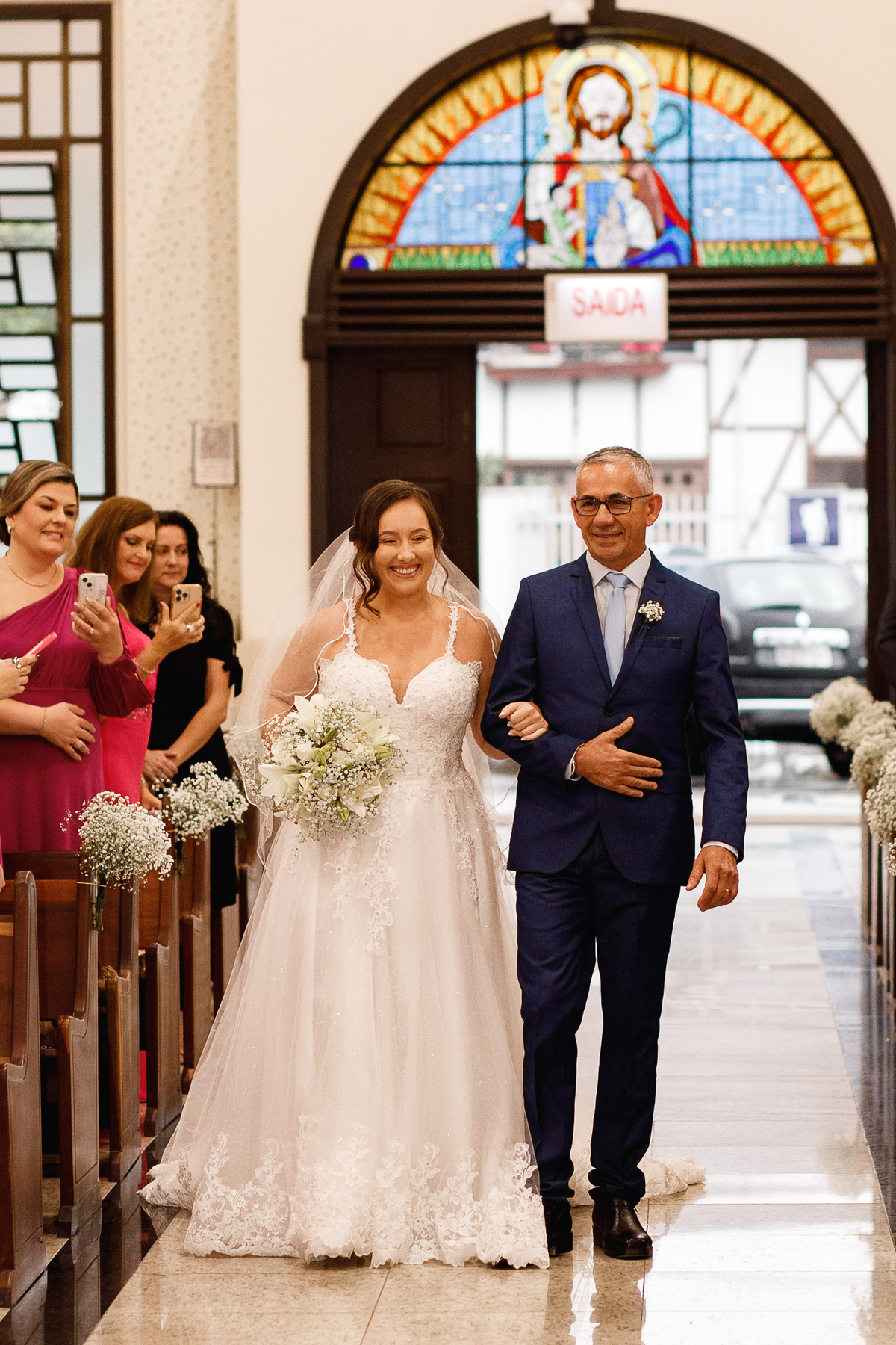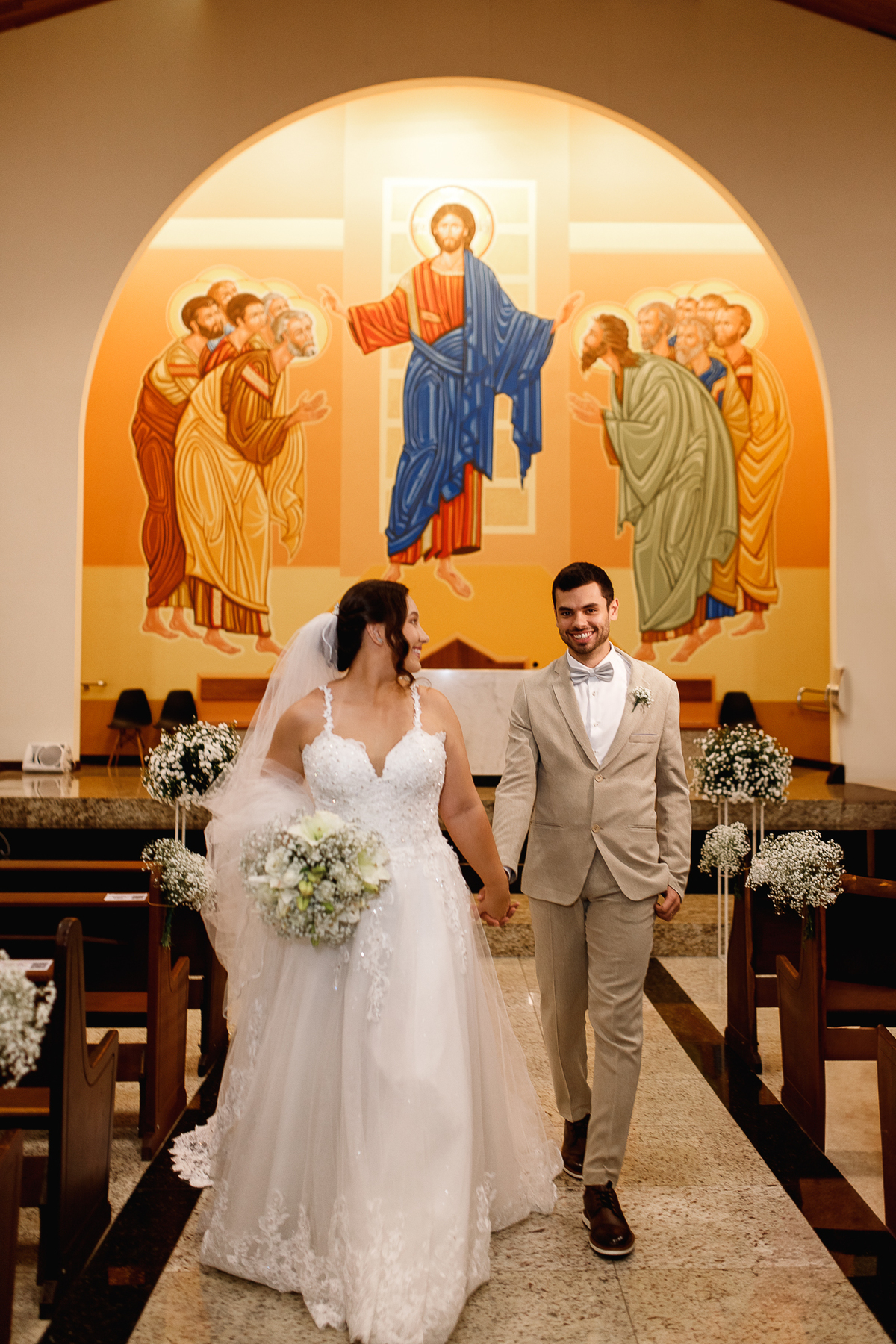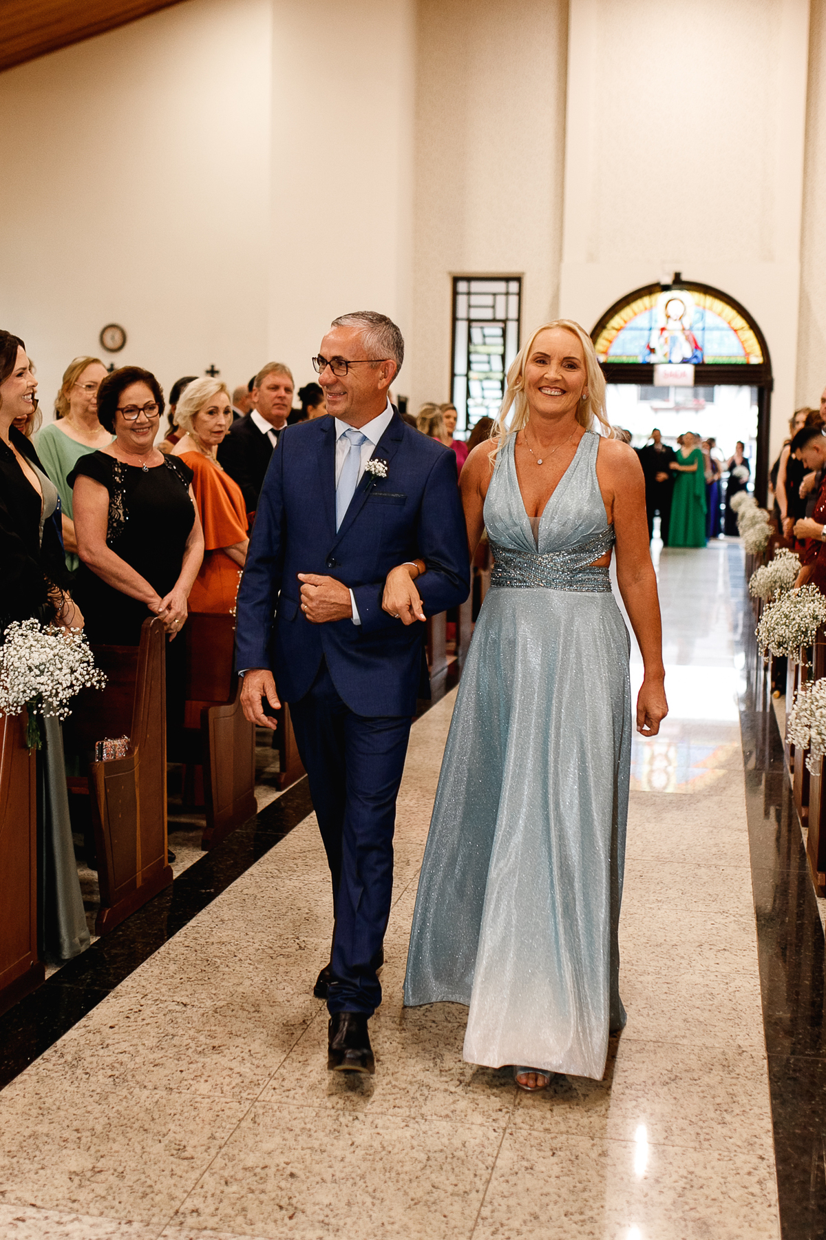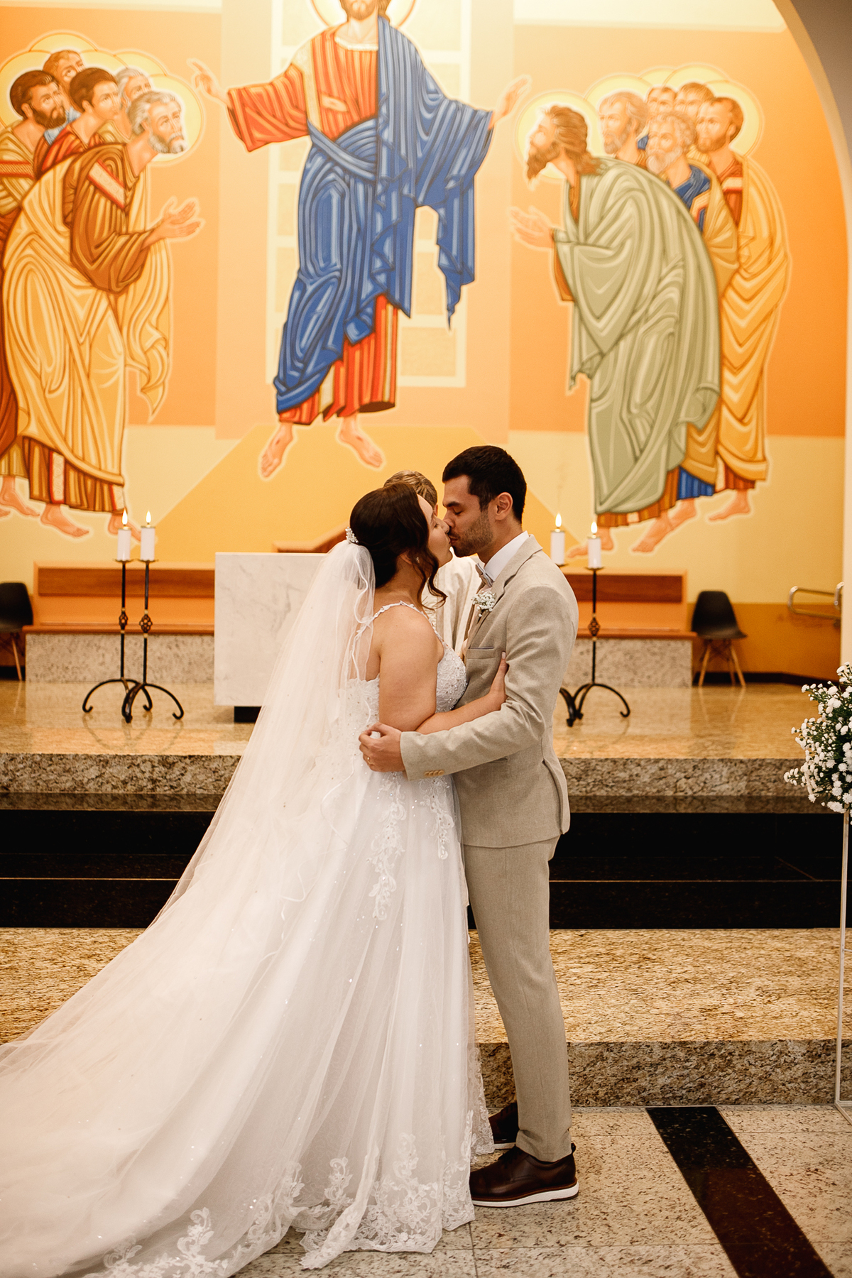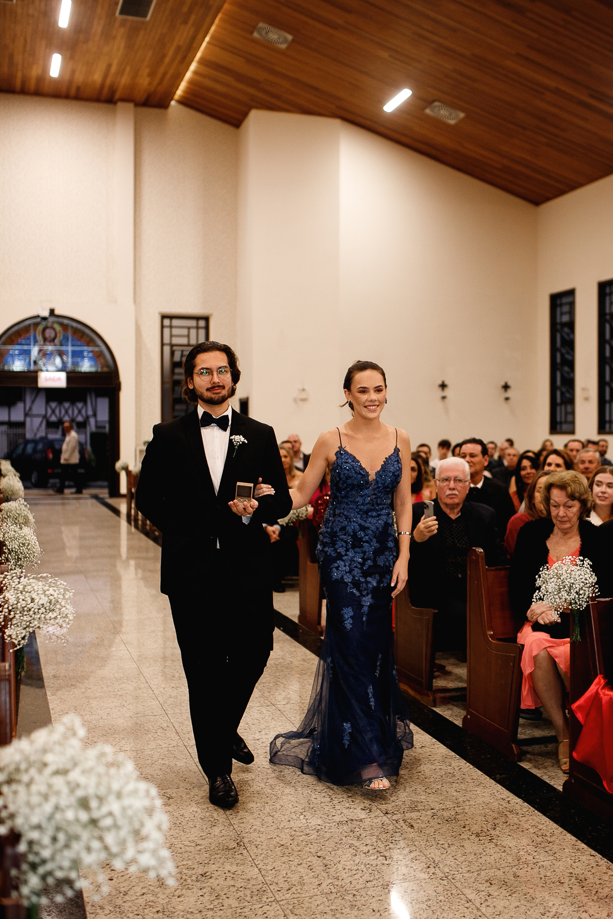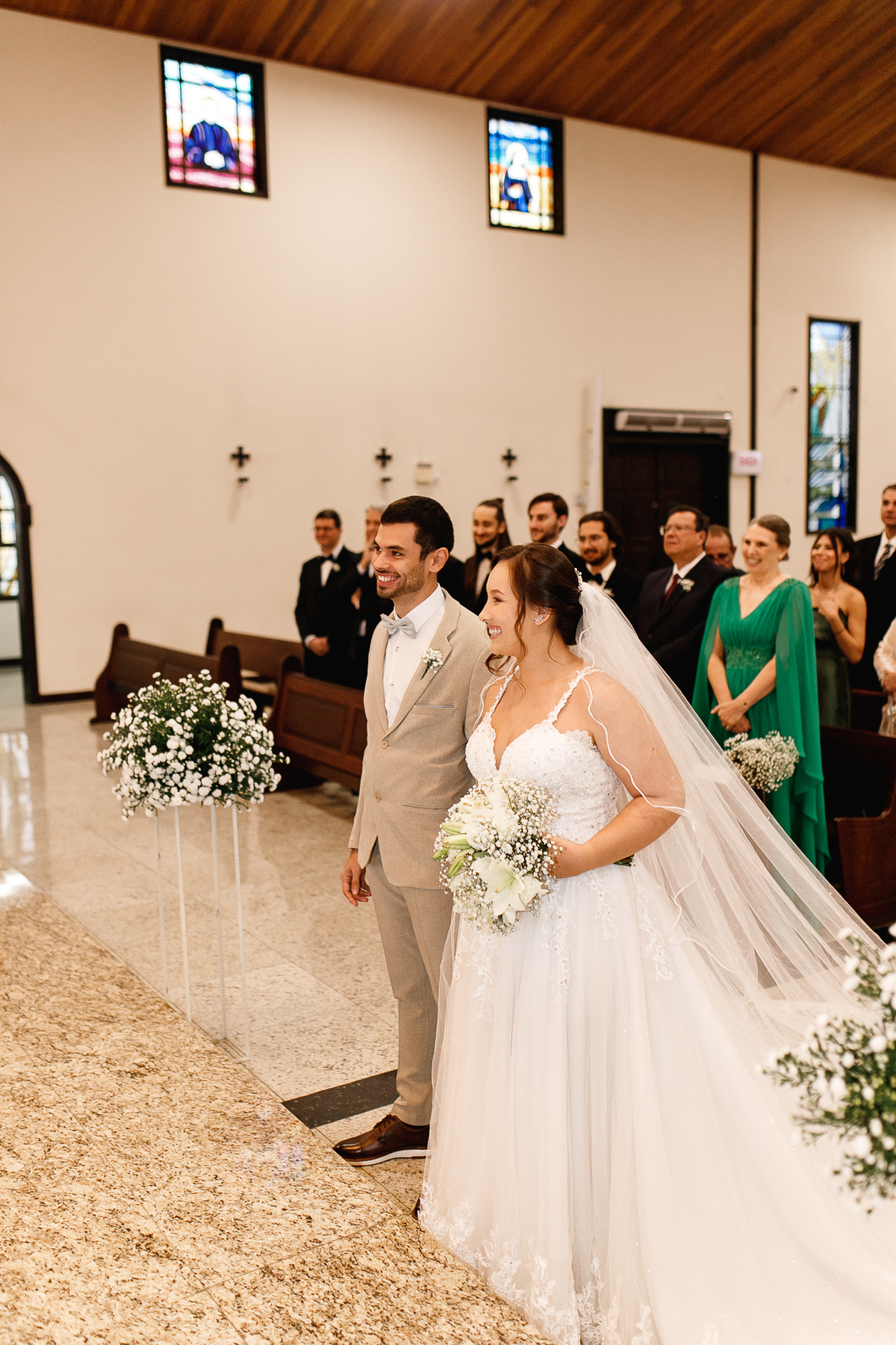 Renata e Eduardo disseram “sim” diante do altar, na presença de Deus, rodeados pelo carinho das pessoas que mais amam. A cerimônia na igreja foi íntima e cheia de significado—com olhares cúmplices, sorrisos sinceros e mãos entrelaçadas que não queriam mais se soltar.