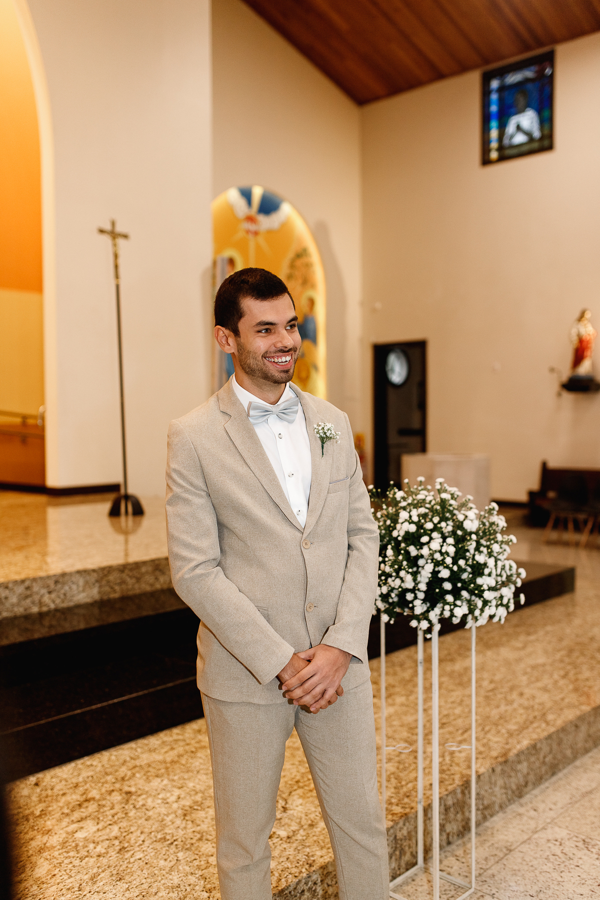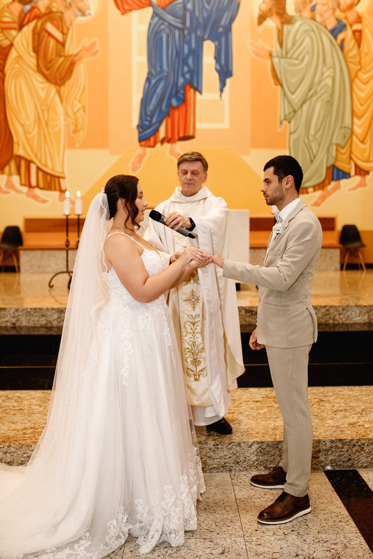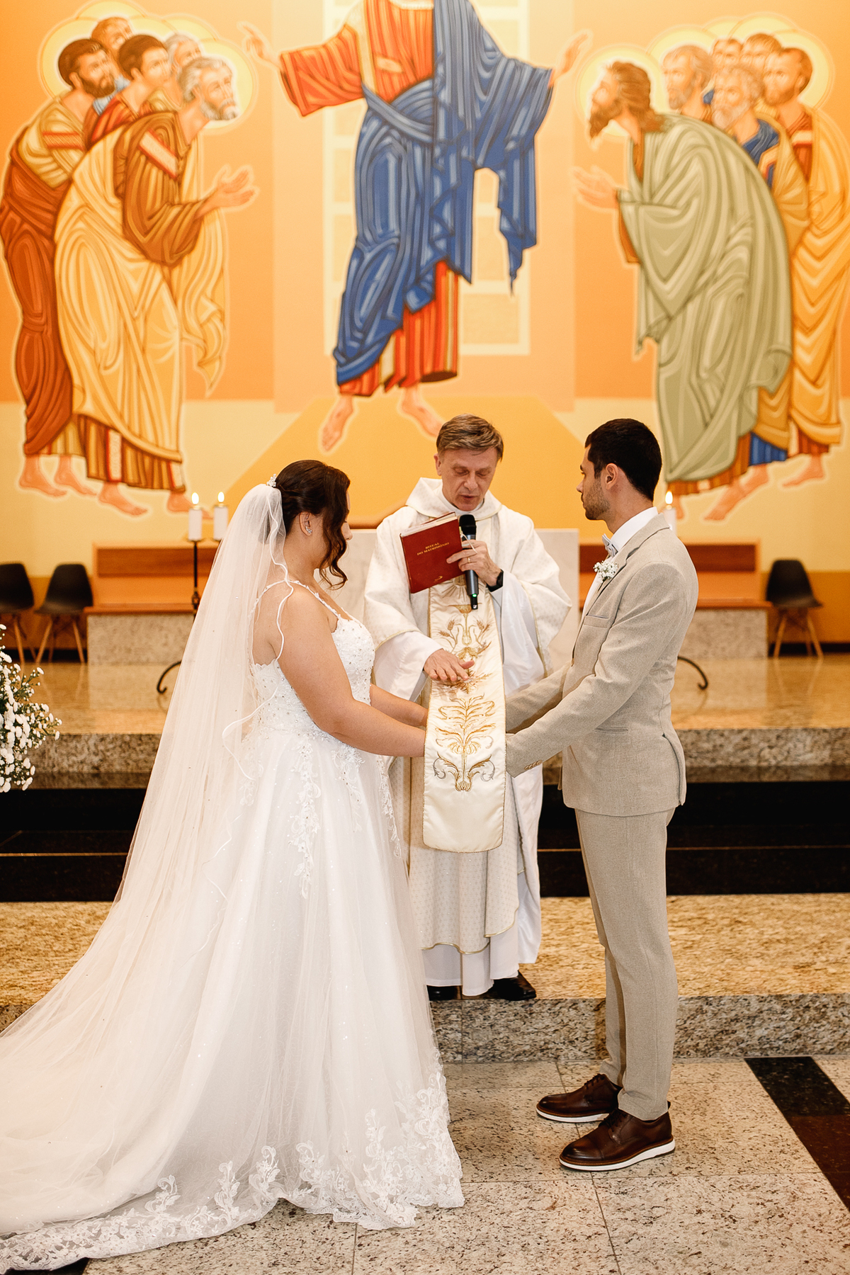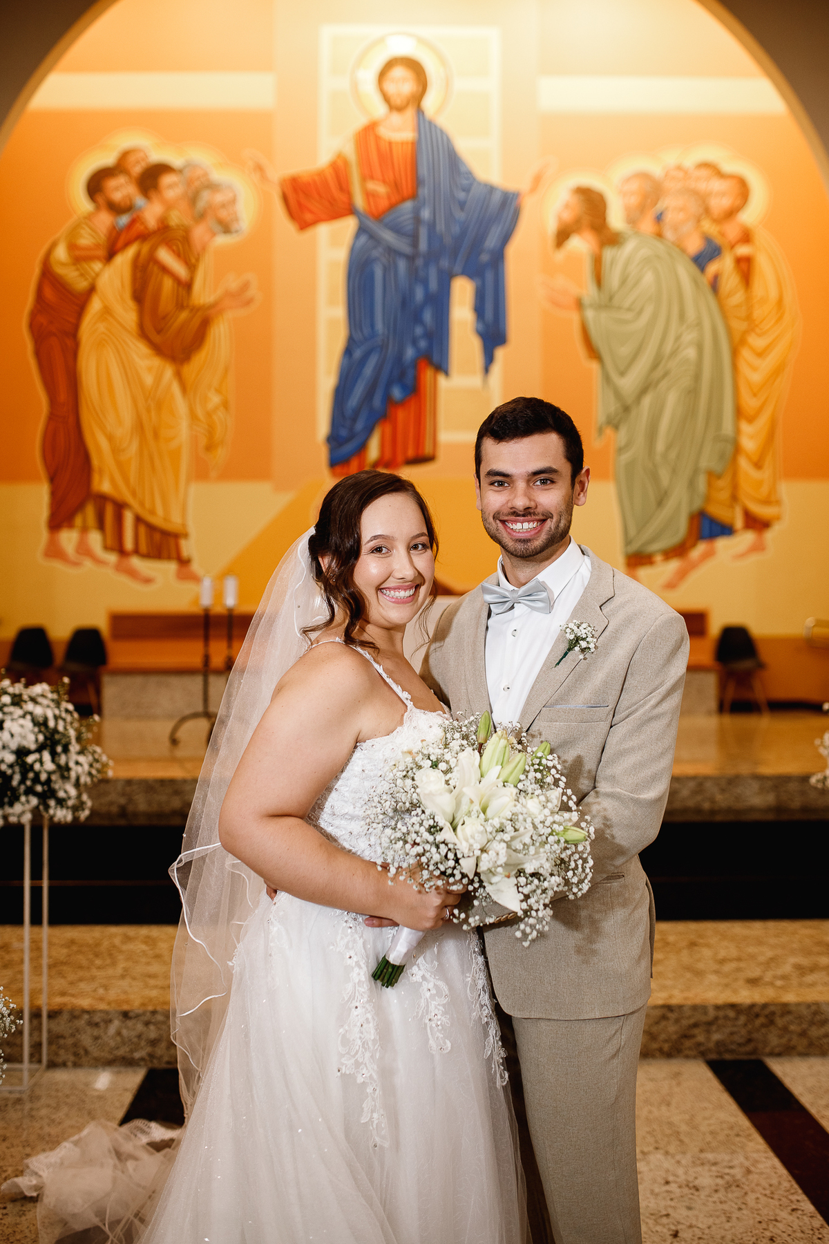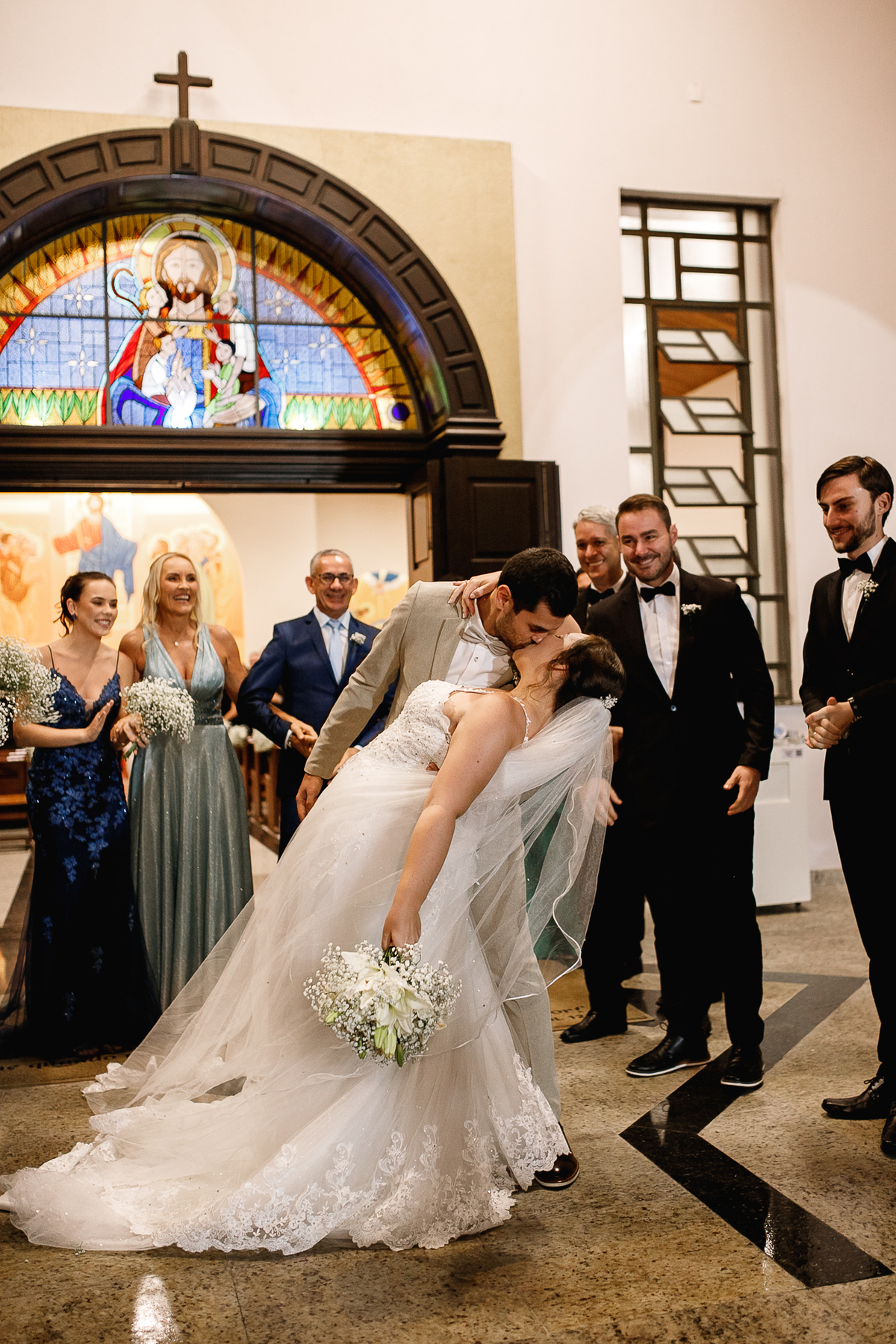 Renata e Eduardo disseram “sim” diante do altar, na presença de Deus, rodeados pelo carinho das pessoas que mais amam. A cerimônia na igreja foi íntima e cheia de significado—com olhares cúmplices, sorrisos sinceros e mãos entrelaçadas que não queriam mais se soltar.