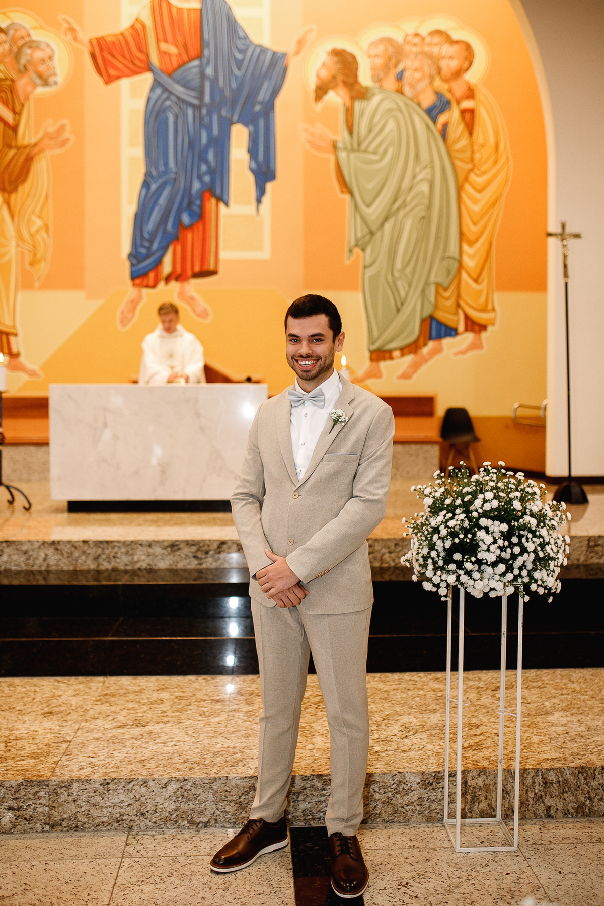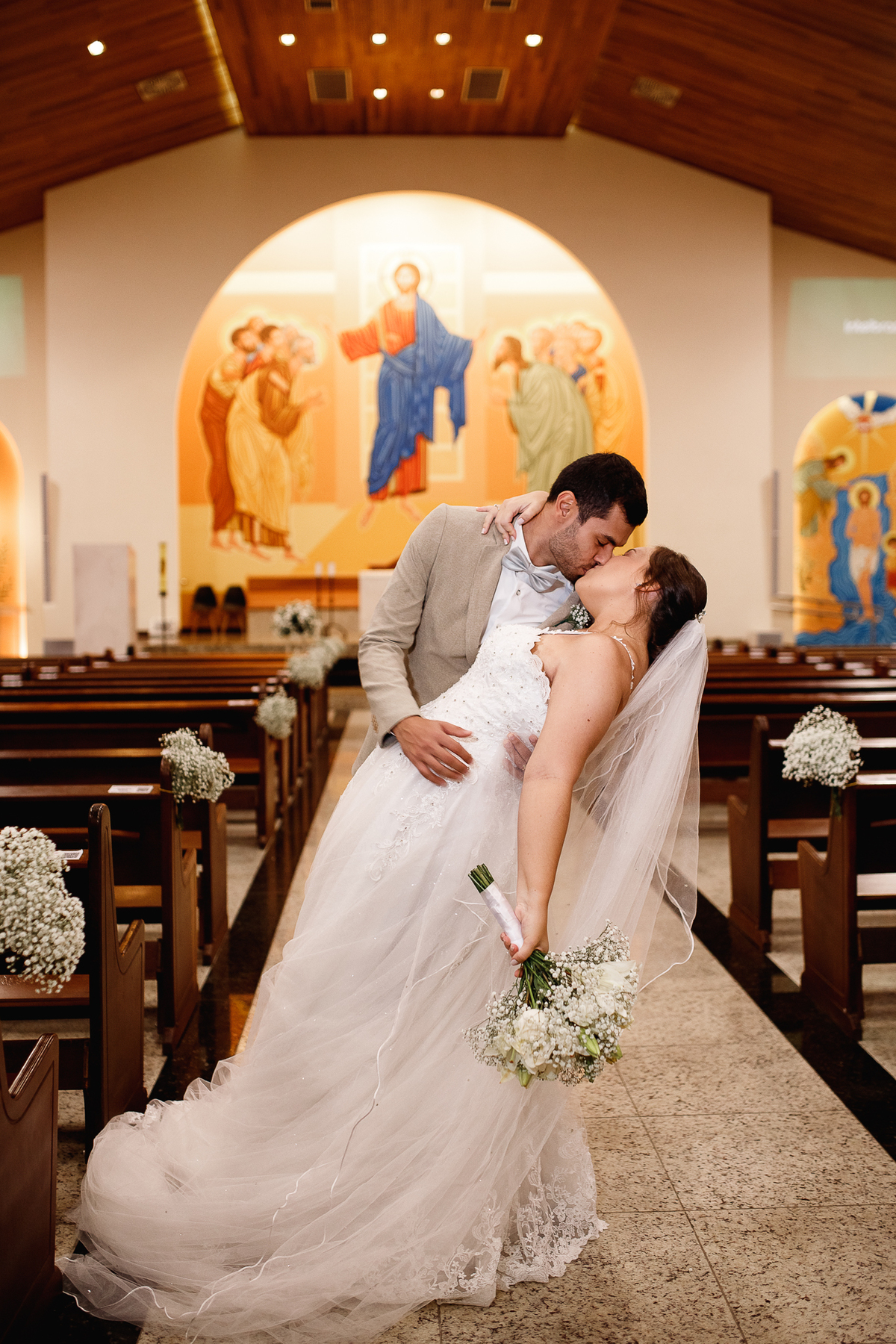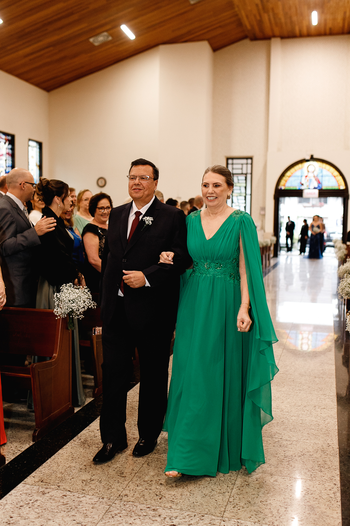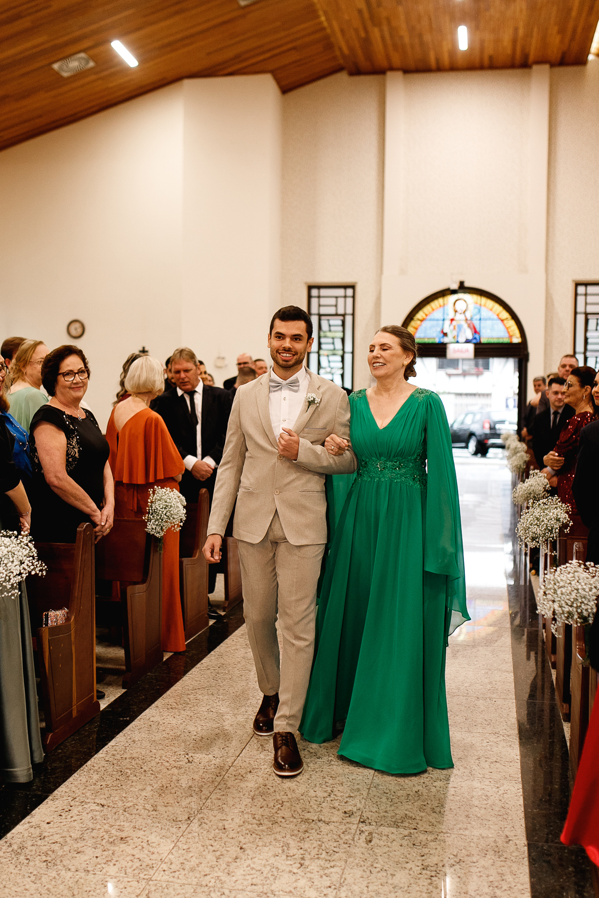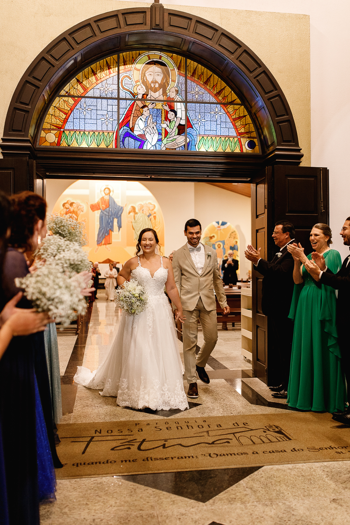 Renata e Eduardo disseram “sim” diante do altar, na presença de Deus, rodeados pelo carinho das pessoas que mais amam. A cerimônia na igreja foi íntima e cheia de significado—com olhares cúmplices, sorrisos sinceros e mãos entrelaçadas que não queriam mais se soltar.