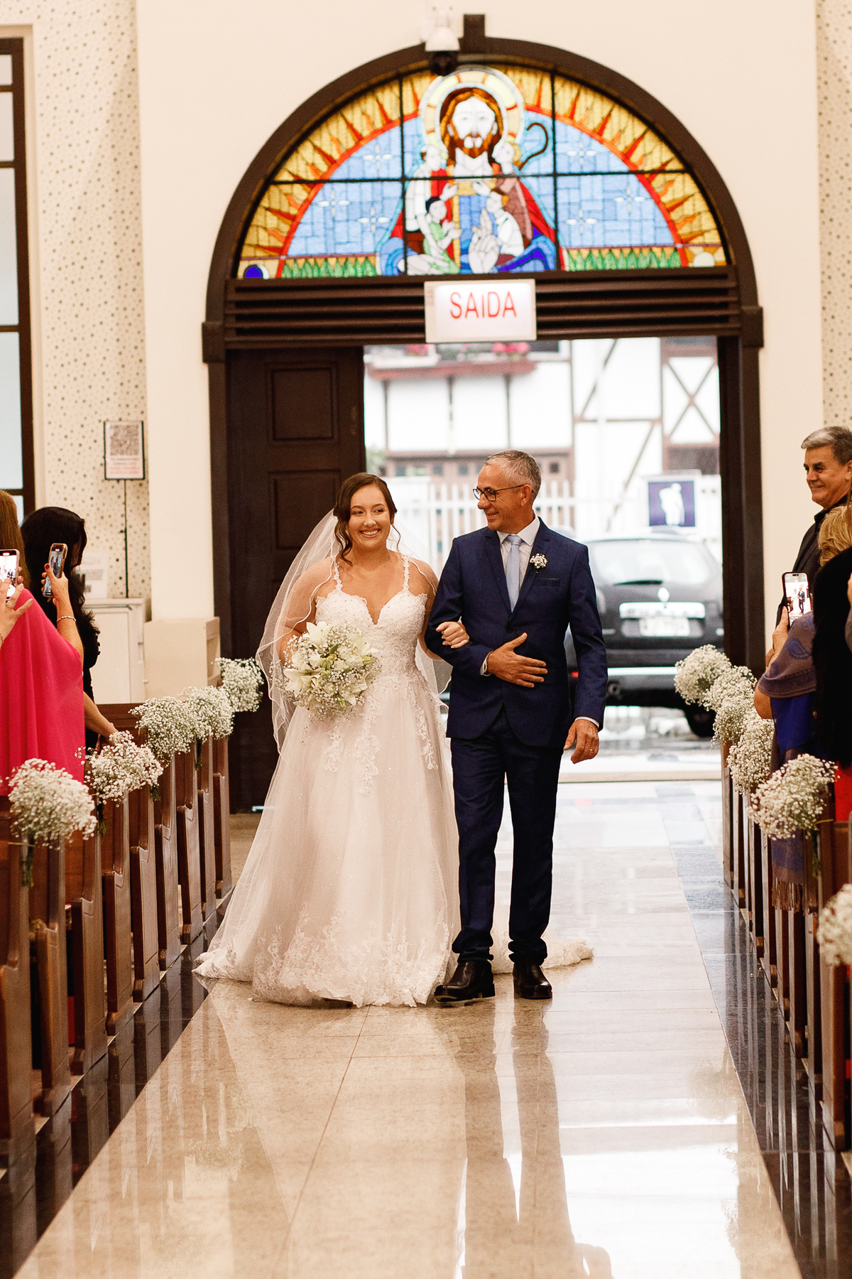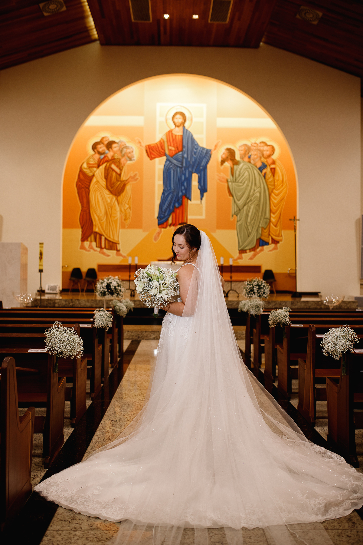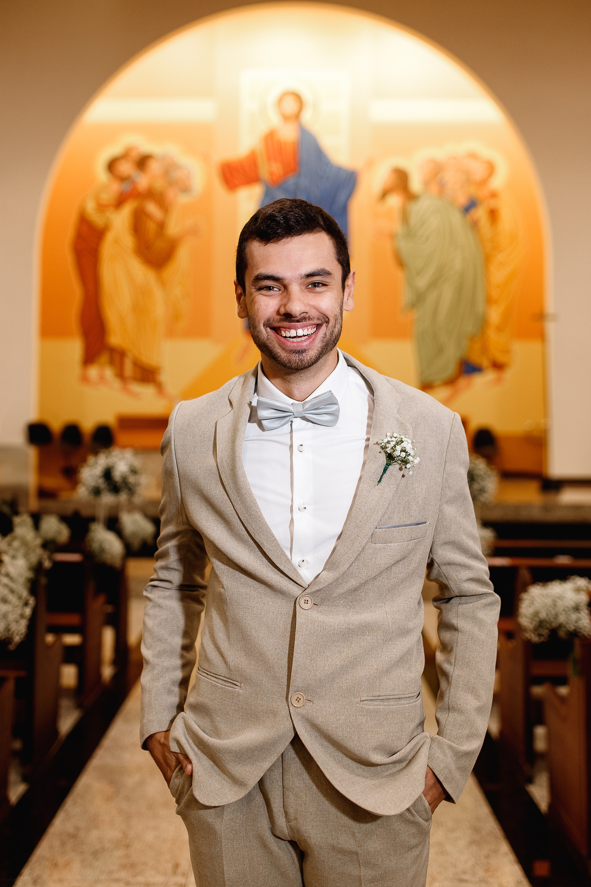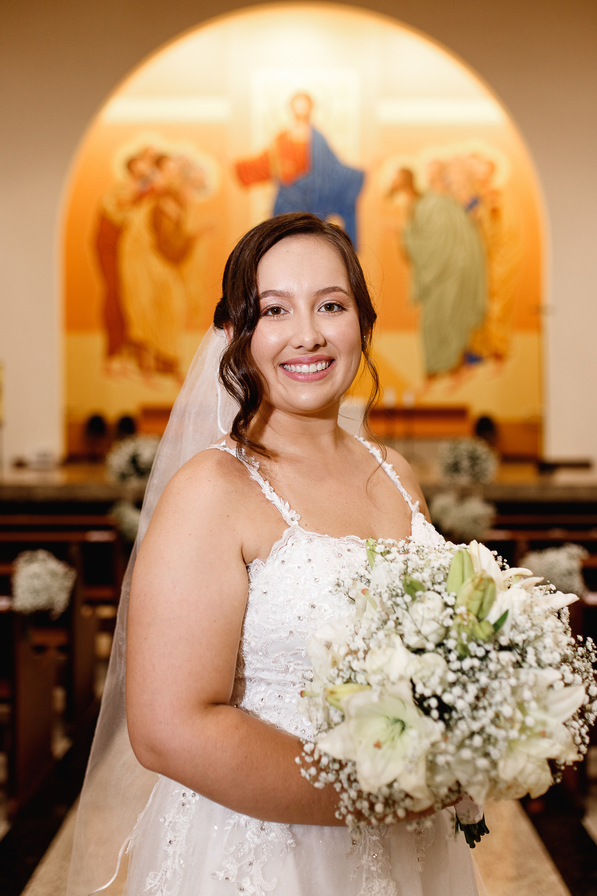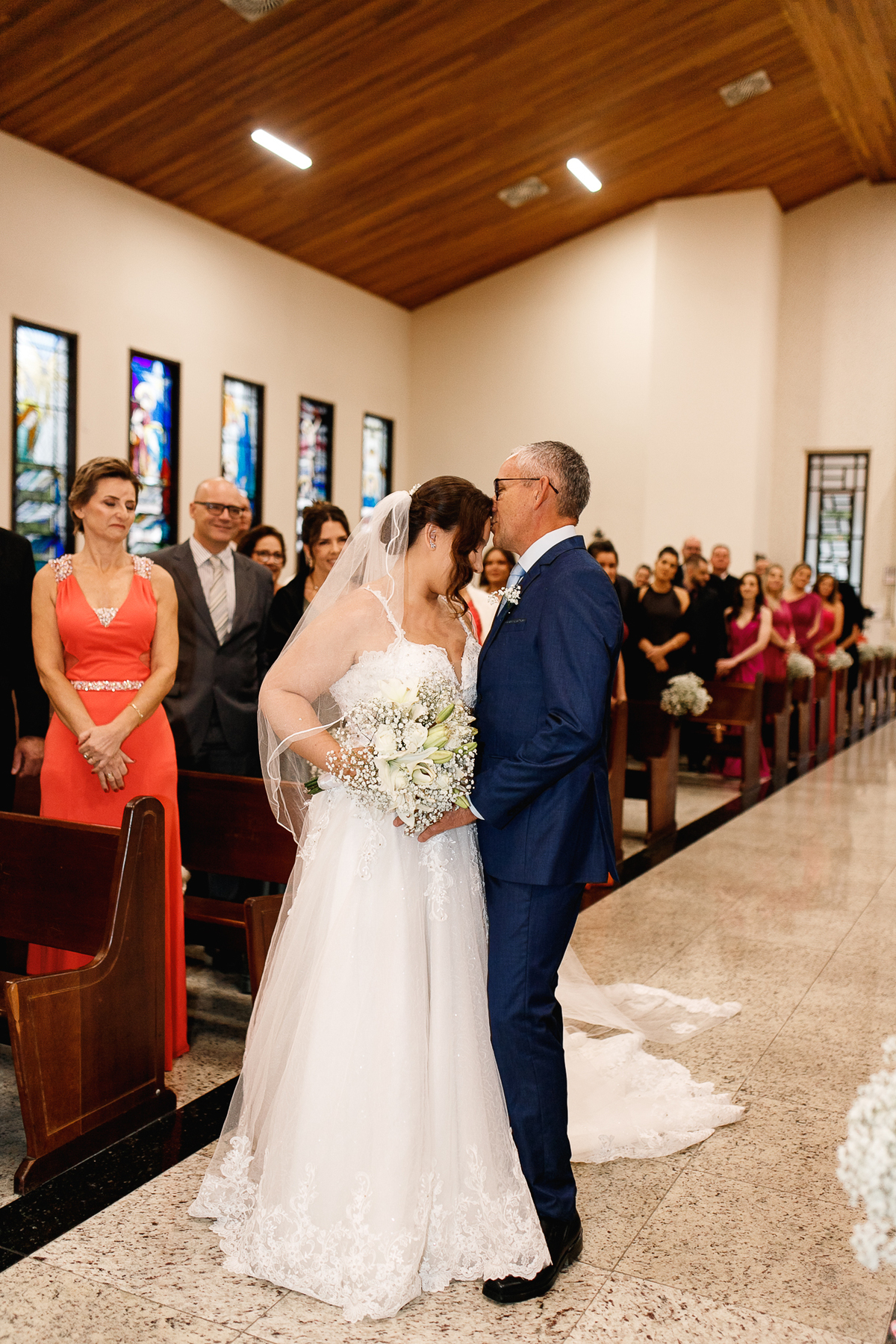 Renata e Eduardo disseram “sim” diante do altar, na presença de Deus, rodeados pelo carinho das pessoas que mais amam. A cerimônia na igreja foi íntima e cheia de significado—com olhares cúmplices, sorrisos sinceros e mãos entrelaçadas que não queriam mais se soltar.