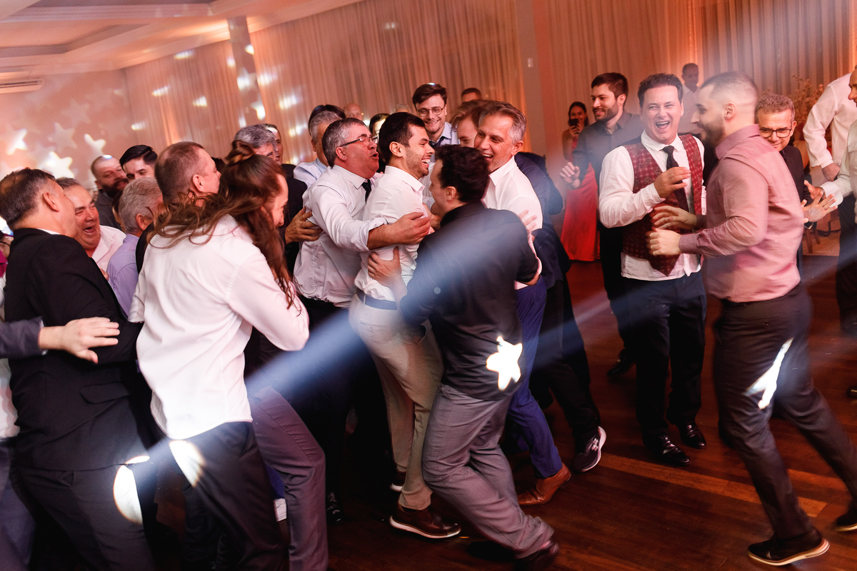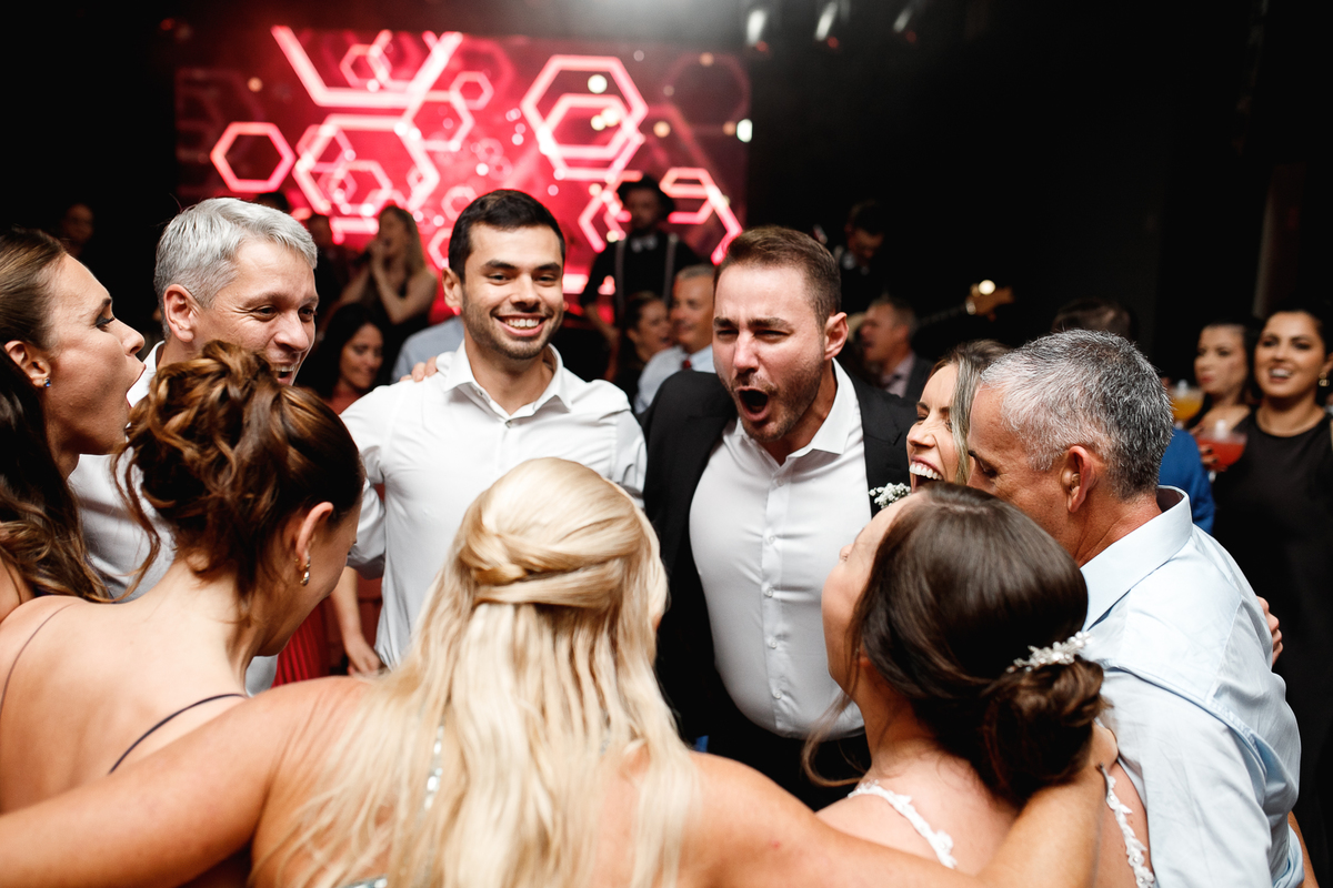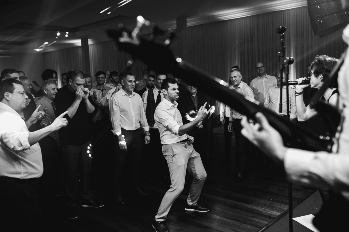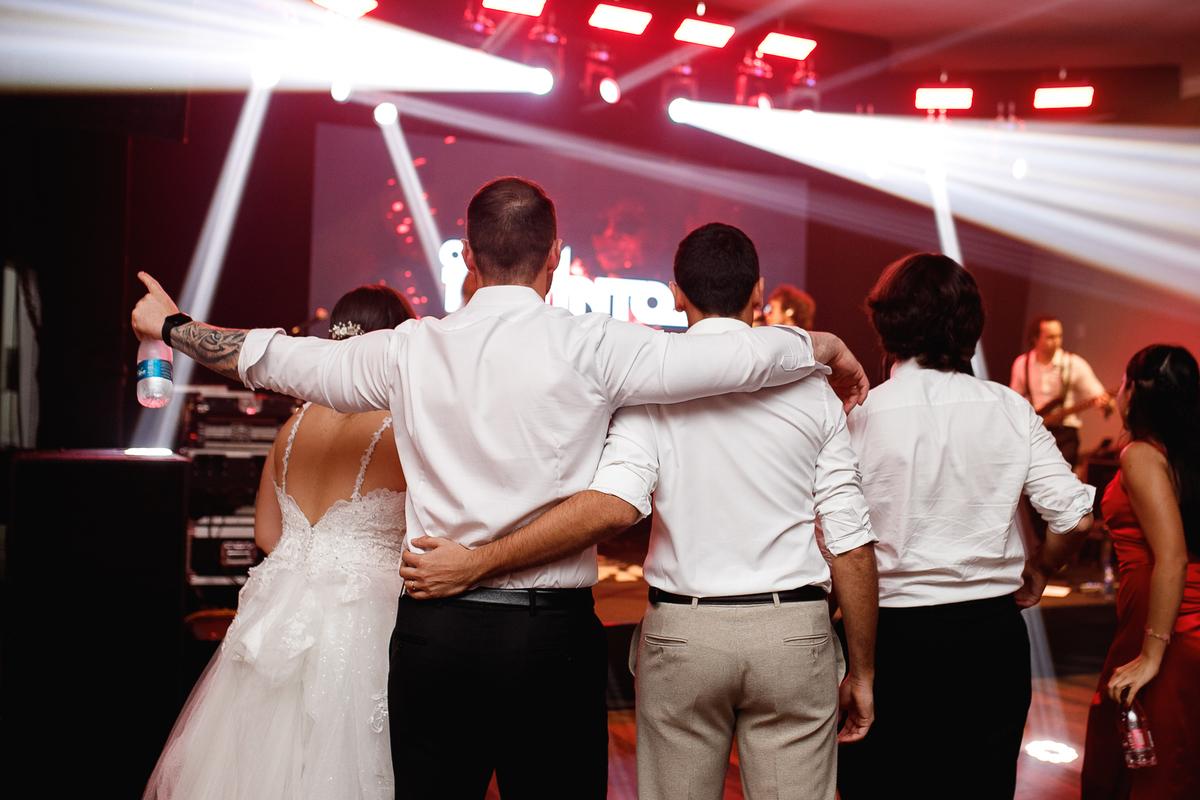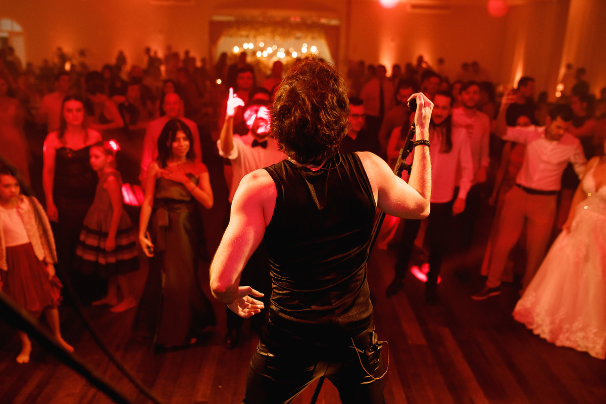 Mas se teve algo que fez o Eduardo brilhar os olhos (depois de casar com a Renata, claro), foi a banda de rock que entrou em cena para agitar a pista! Só os clássicos, do jeito que ele ama, e que animaram todo mundo—com direito até a roda punk no meio da pista, misturando risadas, abraços e aquele espírito leve de quem sabe aproveitar o agora.