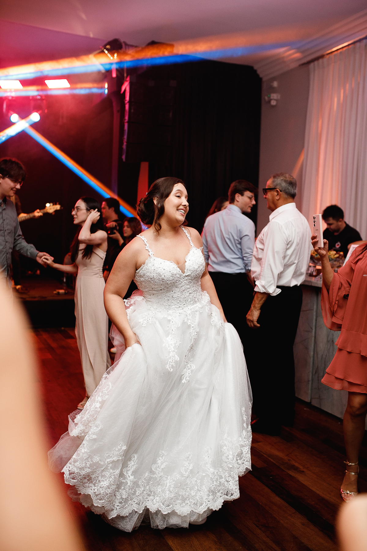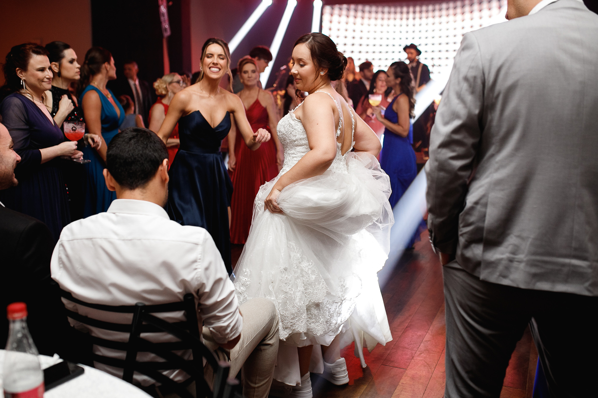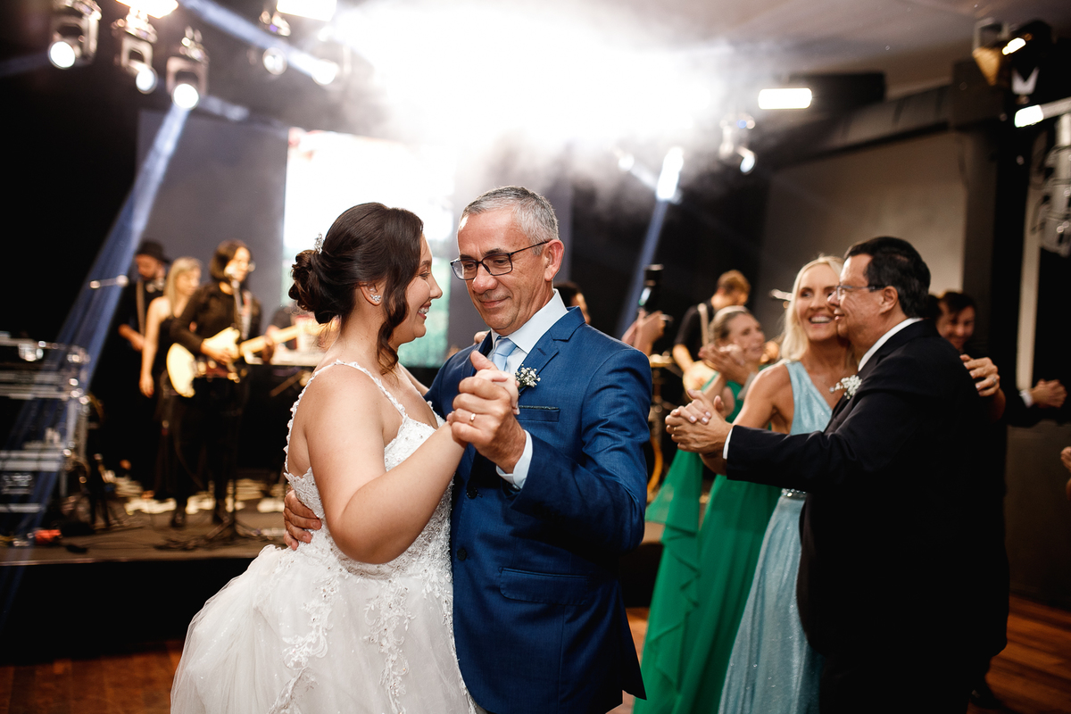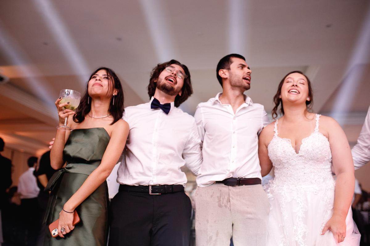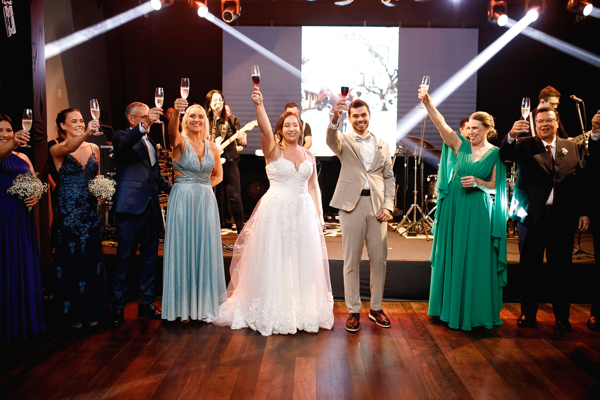 Mas se teve algo que fez o Eduardo brilhar os olhos (depois de casar com a Renata, claro), foi a banda de rock que entrou em cena para agitar a pista! Só os clássicos, do jeito que ele ama, e que animaram todo mundo—com direito até a roda punk no meio da pista, misturando risadas, abraços e aquele espírito leve de quem sabe aproveitar o agora.