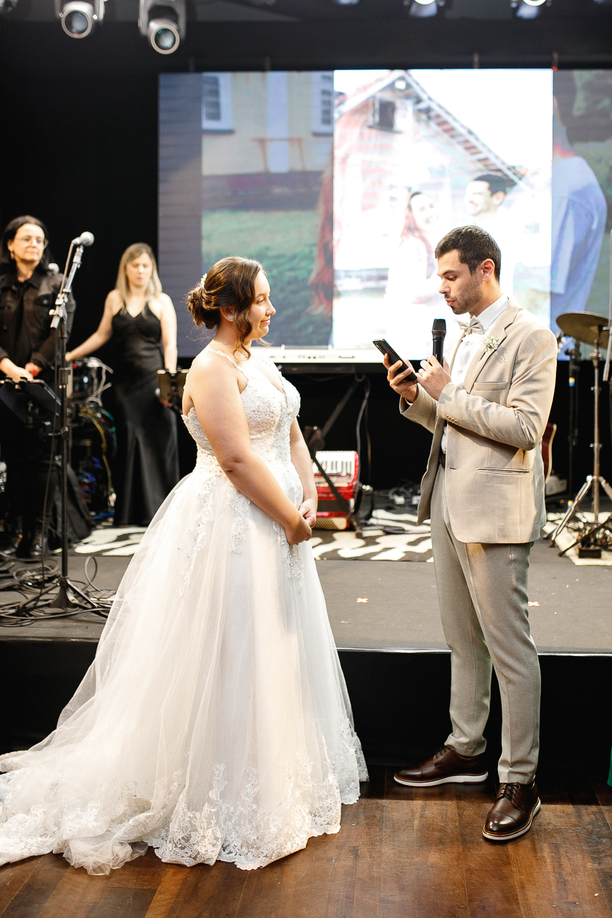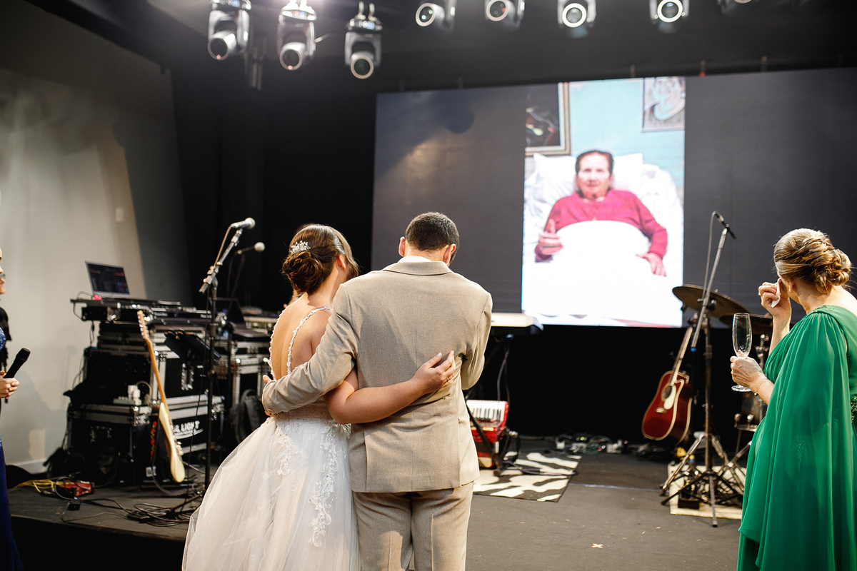 Um dos momentos mais emocionantes da noite foi quando a avózinha, que não pôde comparecer por estar doente, apareceu em vídeo, deixando sua bênção e palavras de carinho para o casal. Foi impossível segurar as lágrimas—e naquele instante, todo mundo sentiu a presença dela ali, forte e amorosa.
