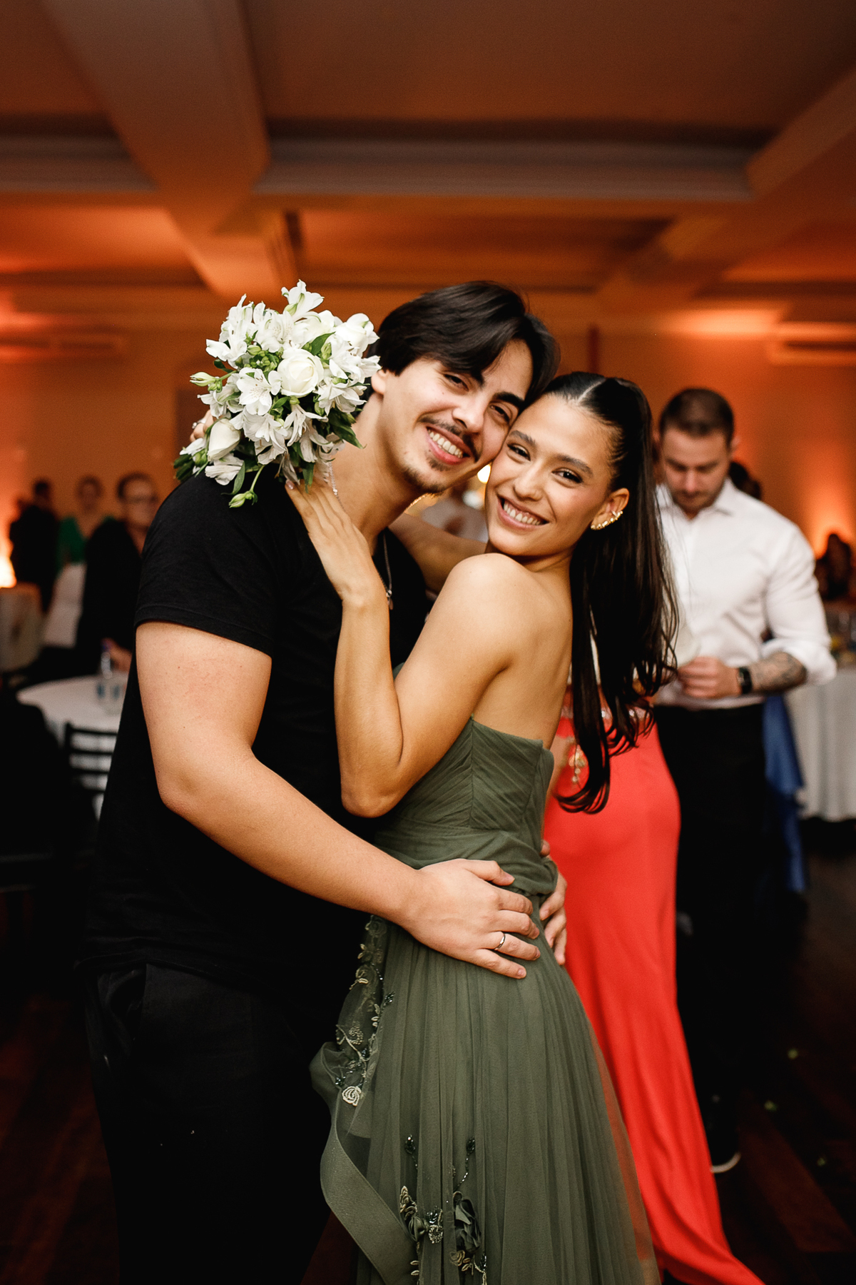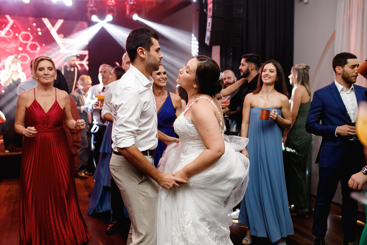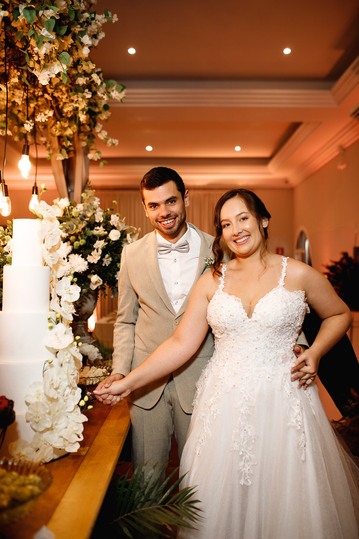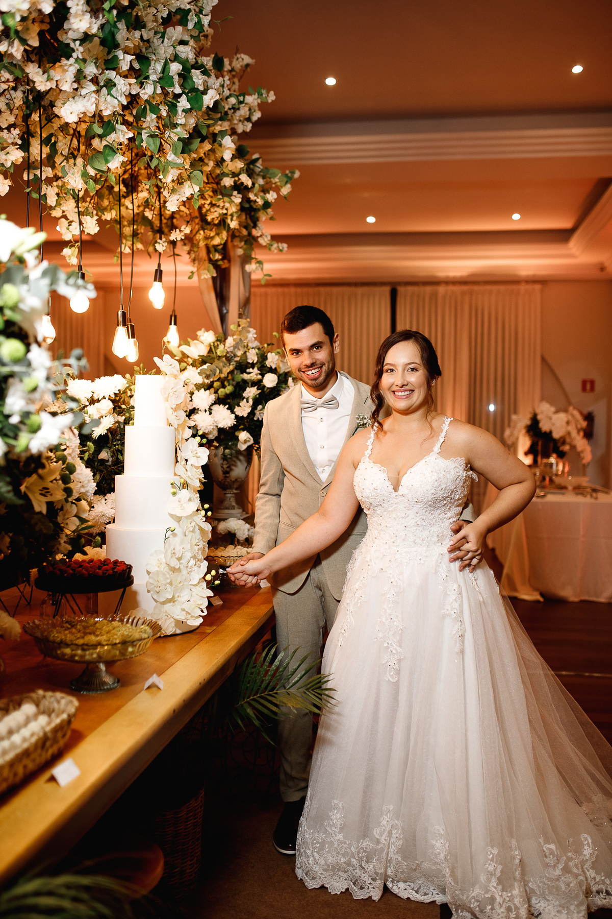 A festa que veio depois foi uma verdadeira celebração da vida. Amigos e familiares se reuniram para brindar o amor dos dois, em meio a mesas fartas de comida boa, música animada e uma energia difícil de explicar. Cada detalhe parecia contar um pedacinho da história deles, do jeitinho que só quem ama de verdade sabe viver.