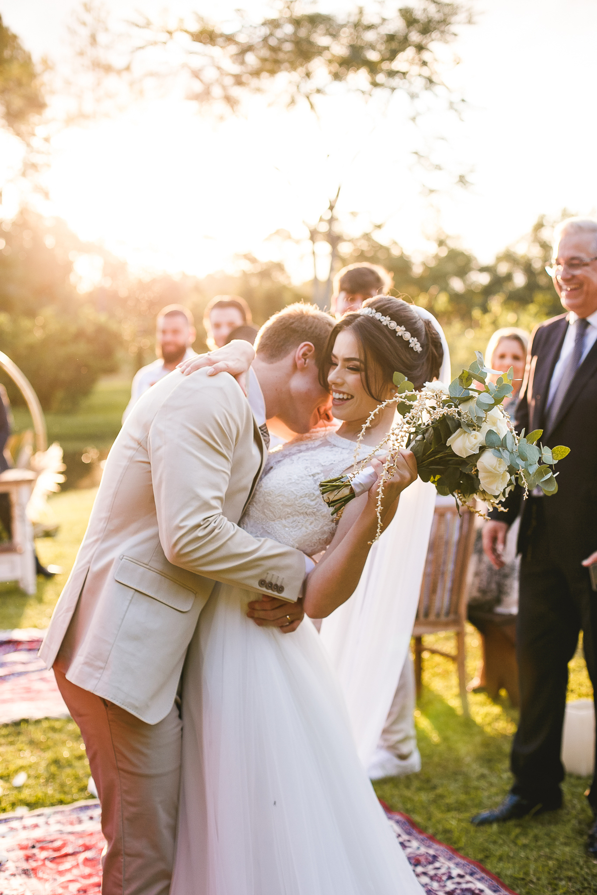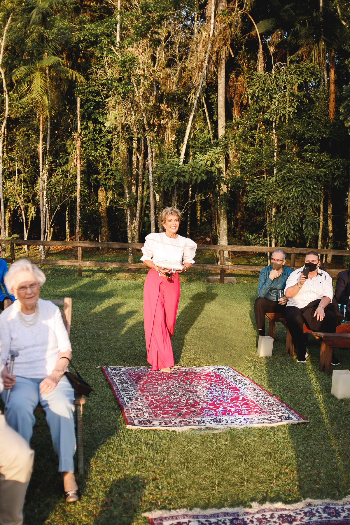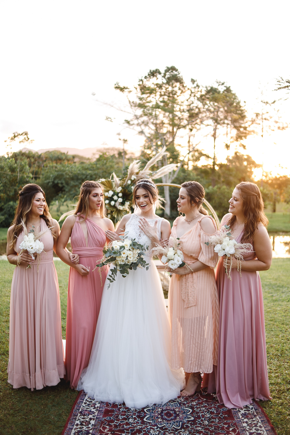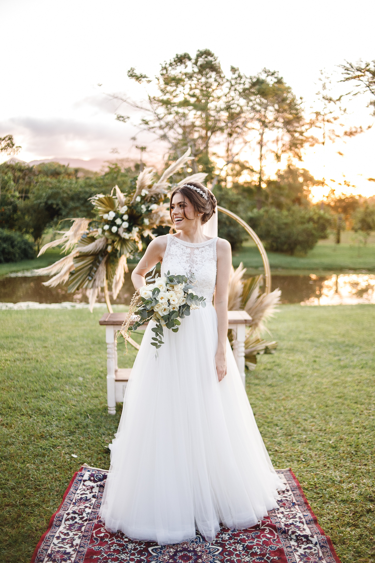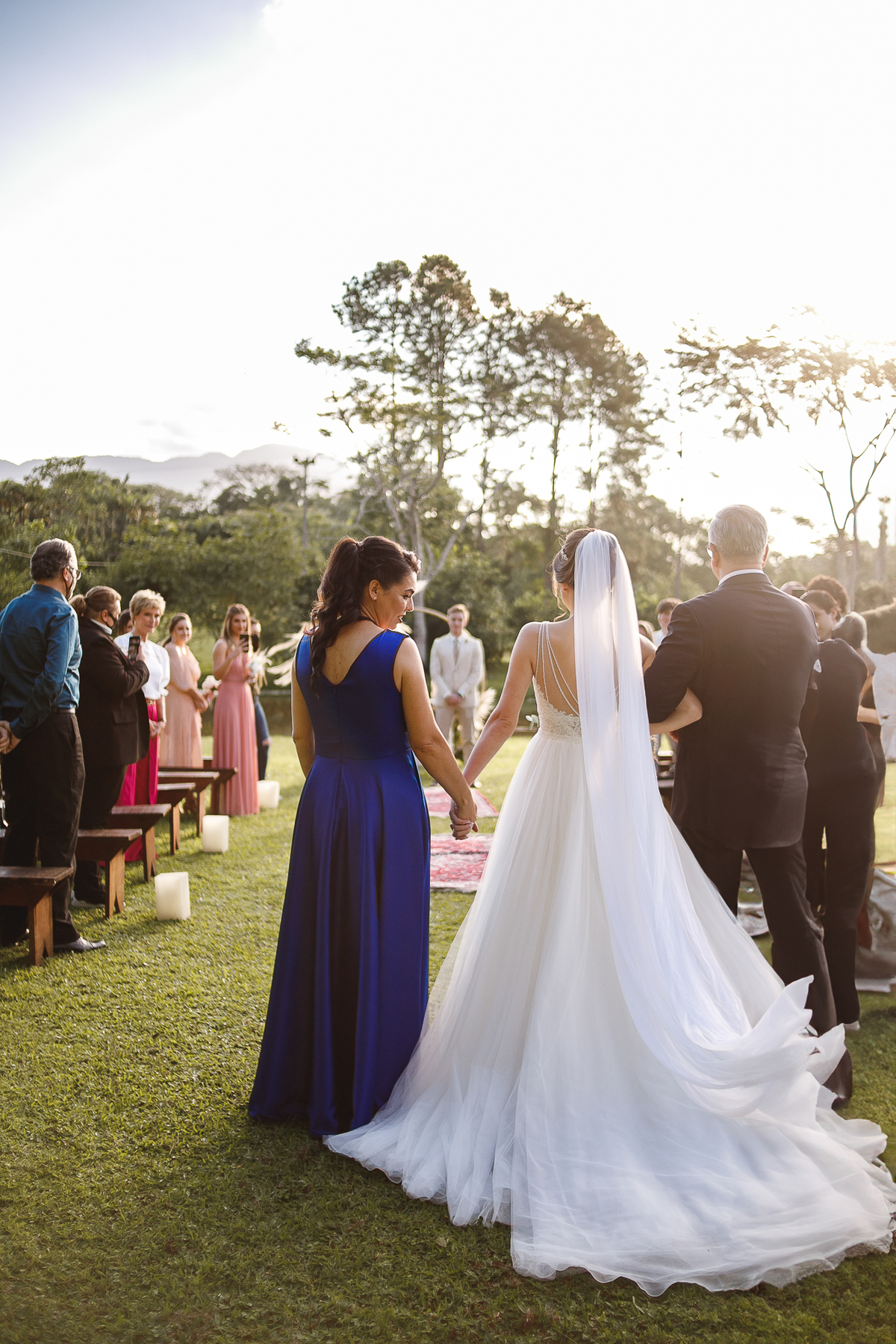 A semana inteira foi de céu fechado e nuvens carregadas. O clima parecia querer testar a calma de todo mundo. Mas no grande dia, algo mágico aconteceu: o céu ainda estava nublado quando a Ruama chegou, mas foi só ela colocar o pé pra fora do carro que o sol surgiu, com força e intenção. E QUE SOL! Um dourado quente e acolhedor tomou conta do horizonte e permaneceu ali, firme, iluminando toda a cerimônia. Era como se o universo tivesse esperado aquele exato momento para abrir o céu.