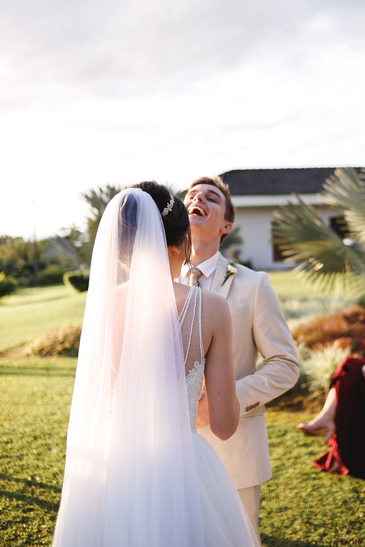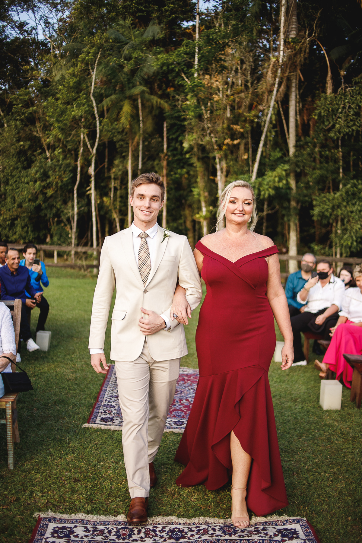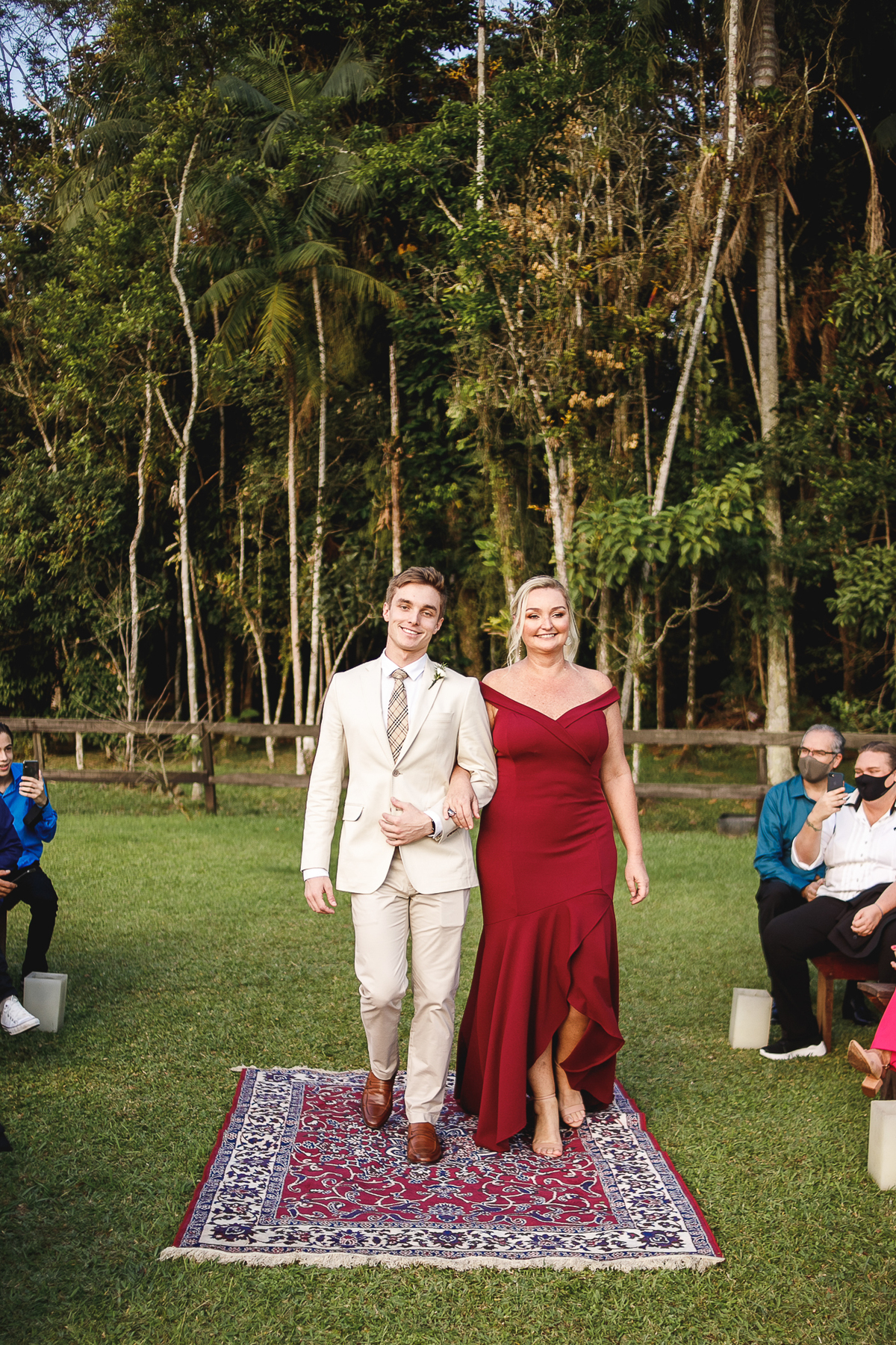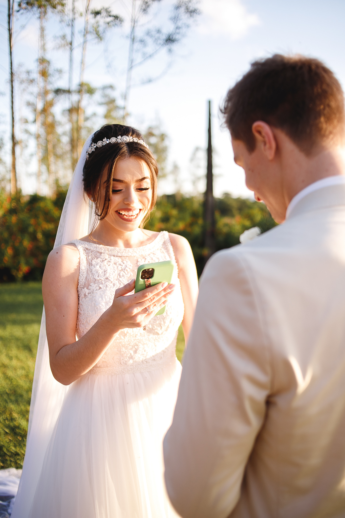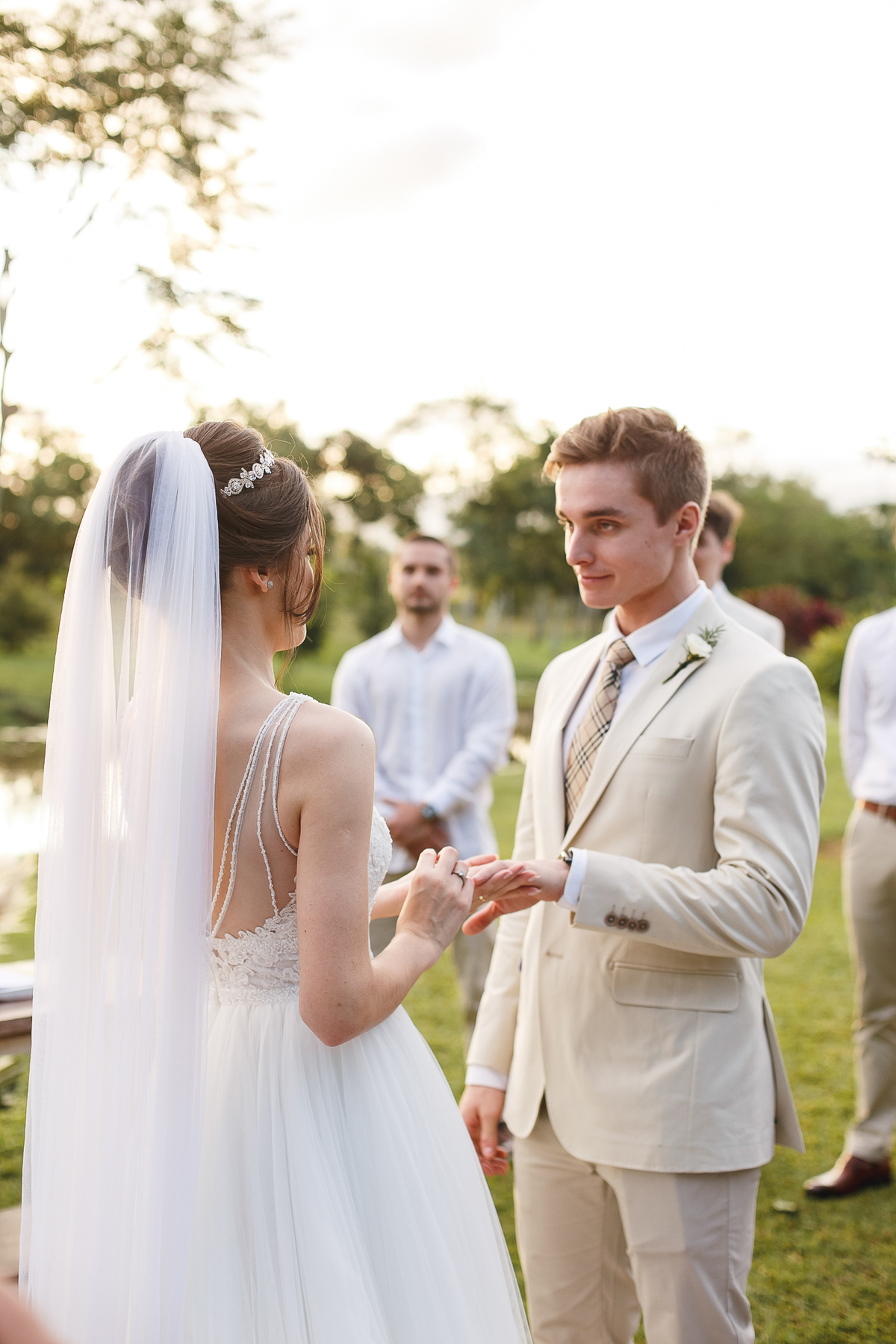 A semana inteira foi de céu fechado e nuvens carregadas. O clima parecia querer testar a calma de todo mundo. Mas no grande dia, algo mágico aconteceu: o céu ainda estava nublado quando a Ruama chegou, mas foi só ela colocar o pé pra fora do carro que o sol surgiu, com força e intenção. E QUE SOL! Um dourado quente e acolhedor tomou conta do horizonte e permaneceu ali, firme, iluminando toda a cerimônia. Era como se o universo tivesse esperado aquele exato momento para abrir o céu.