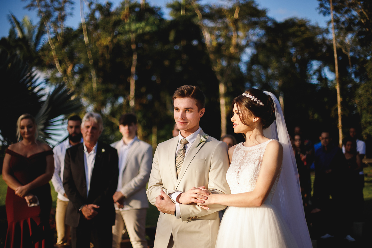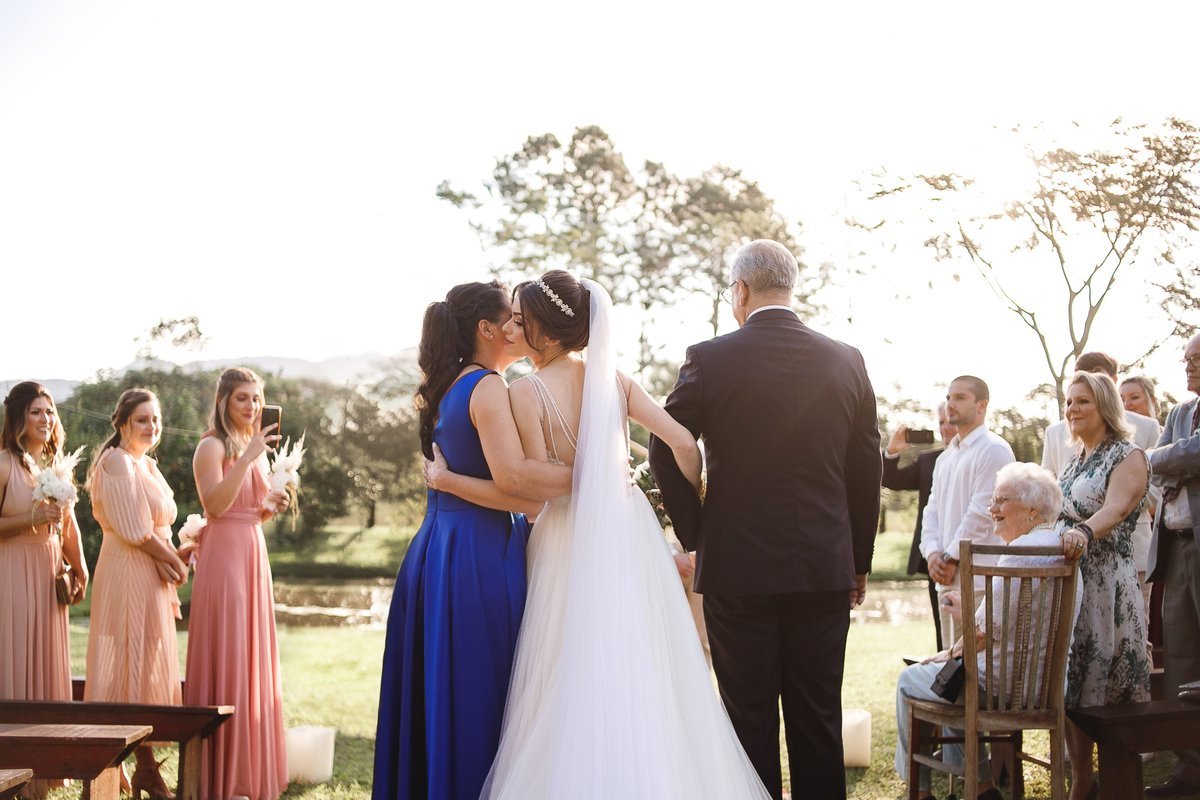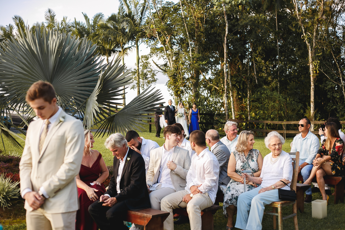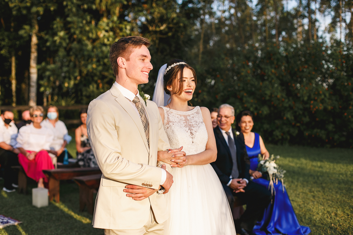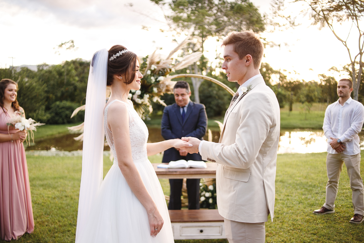 Na semana do casamento, quase nada parecia certo. Ainda existiam dúvidas sobre os últimos detalhes… e até sobre onde seria a cerimônia! A ideia inicial era subir a serra, mas a vida — com seus imprevistos e jeitinhos de nos mostrar novos caminhos — levou tudo para mais perto de Joinville. E, no fim, não poderia ter sido em lugar melhor. Porque quando o amor é o centro, tudo se encaixa.