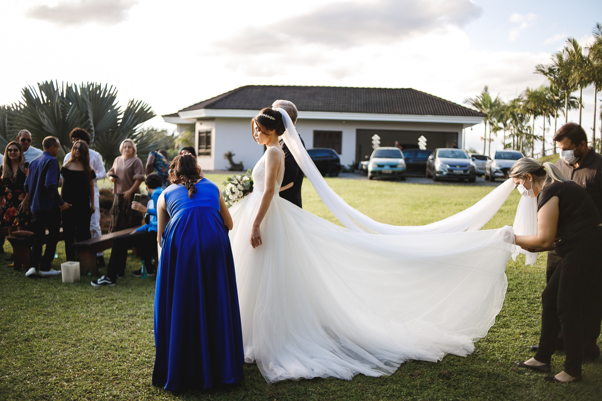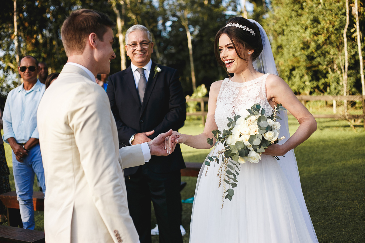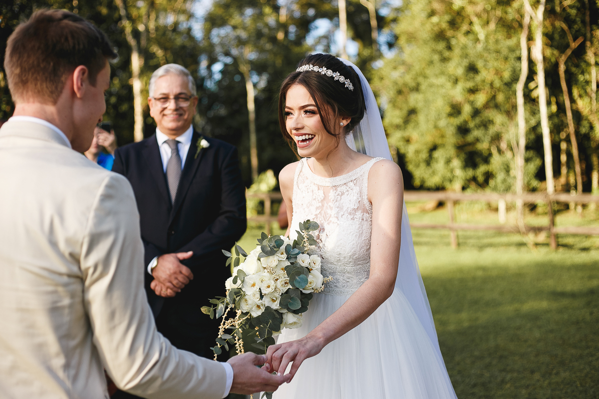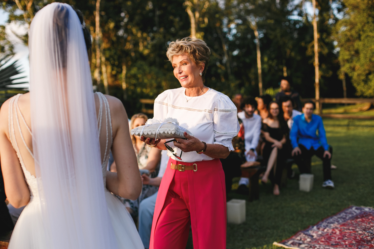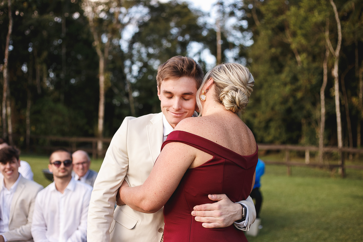 Na semana do casamento, quase nada parecia certo. Ainda existiam dúvidas sobre os últimos detalhes… e até sobre onde seria a cerimônia! A ideia inicial era subir a serra, mas a vida — com seus imprevistos e jeitinhos de nos mostrar novos caminhos — levou tudo para mais perto de Joinville. E, no fim, não poderia ter sido em lugar melhor. Porque quando o amor é o centro, tudo se encaixa.