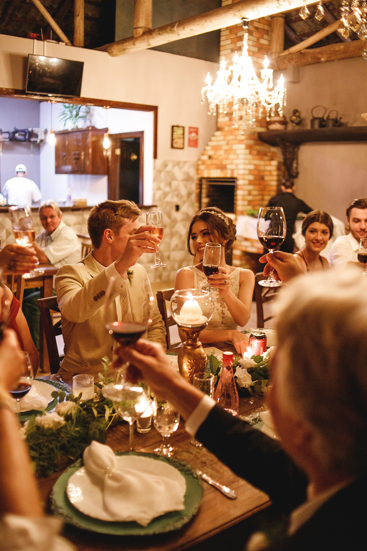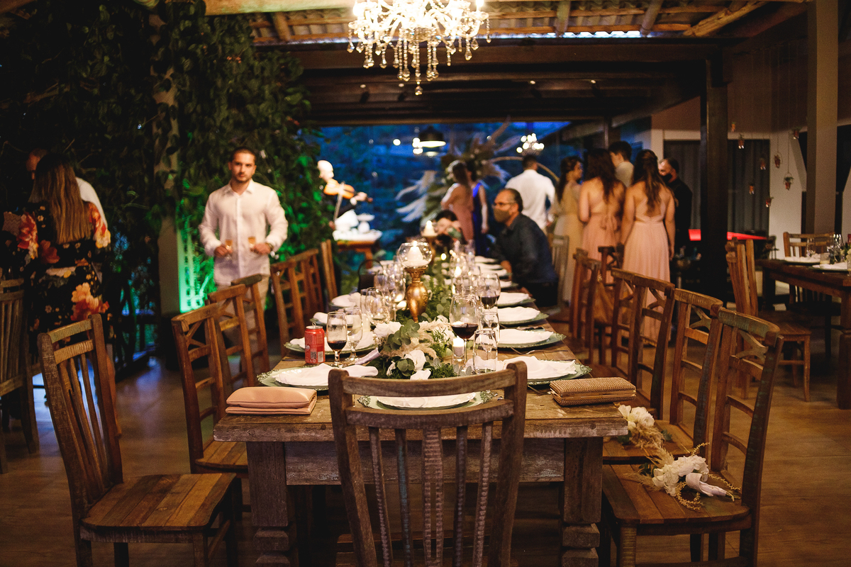 Foi um casamento com alma. Cada detalhe refletia quem eles são: alegres, verdadeiros e conectados. Depois do “sim”, veio um jantar acolhedor, com vinho, doces e boas conversas. Uma celebração pequena no tamanho, mas imensa no significado.