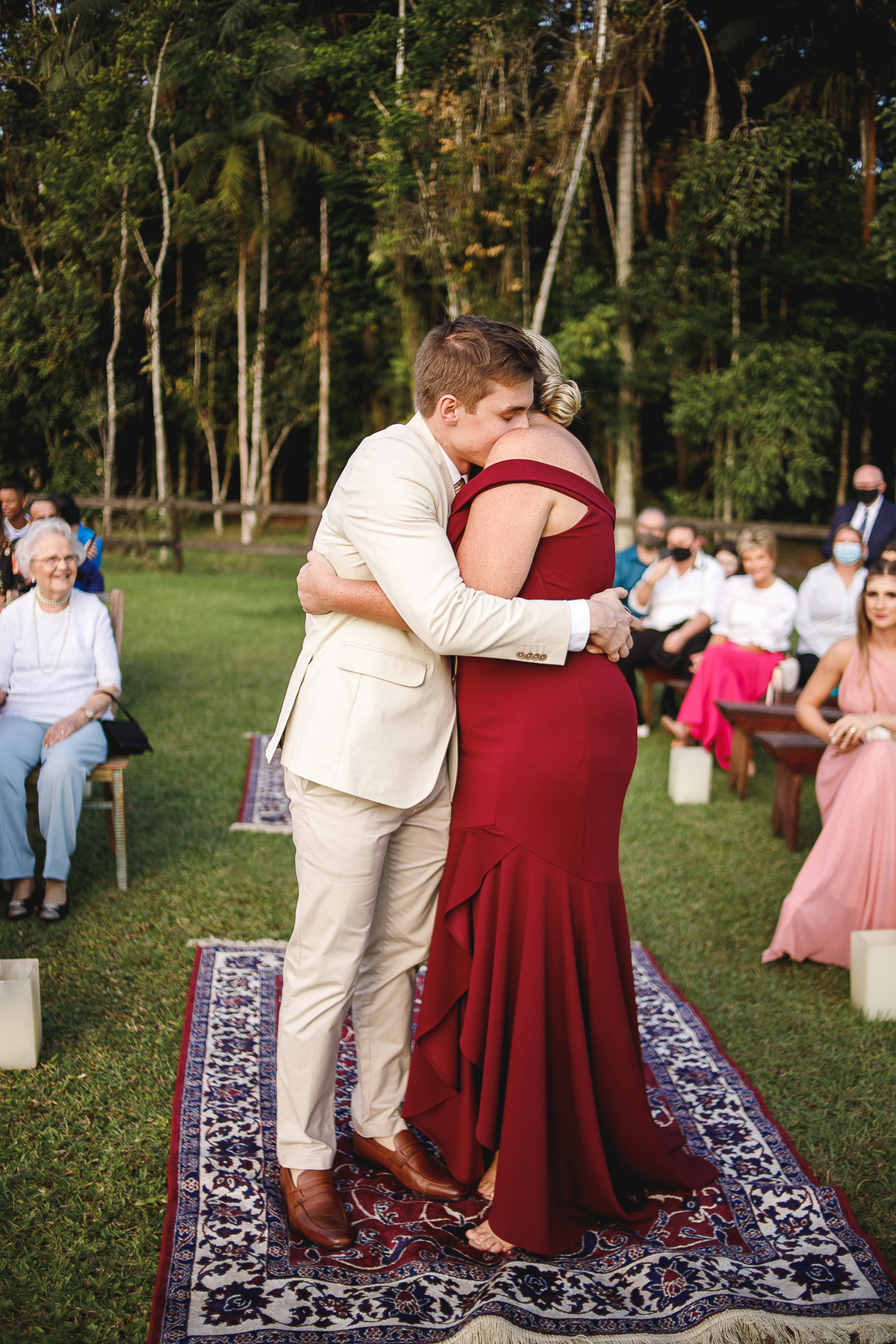 A cerimônia foi íntima, leve e carregada de emoção. Rodeados por amigos próximos, risos e lágrimas se misturaram em um cenário que parecia ter sido desenhado para eles. E no meio dos votos, João disse uma frase que ficou marcada em todos nós: