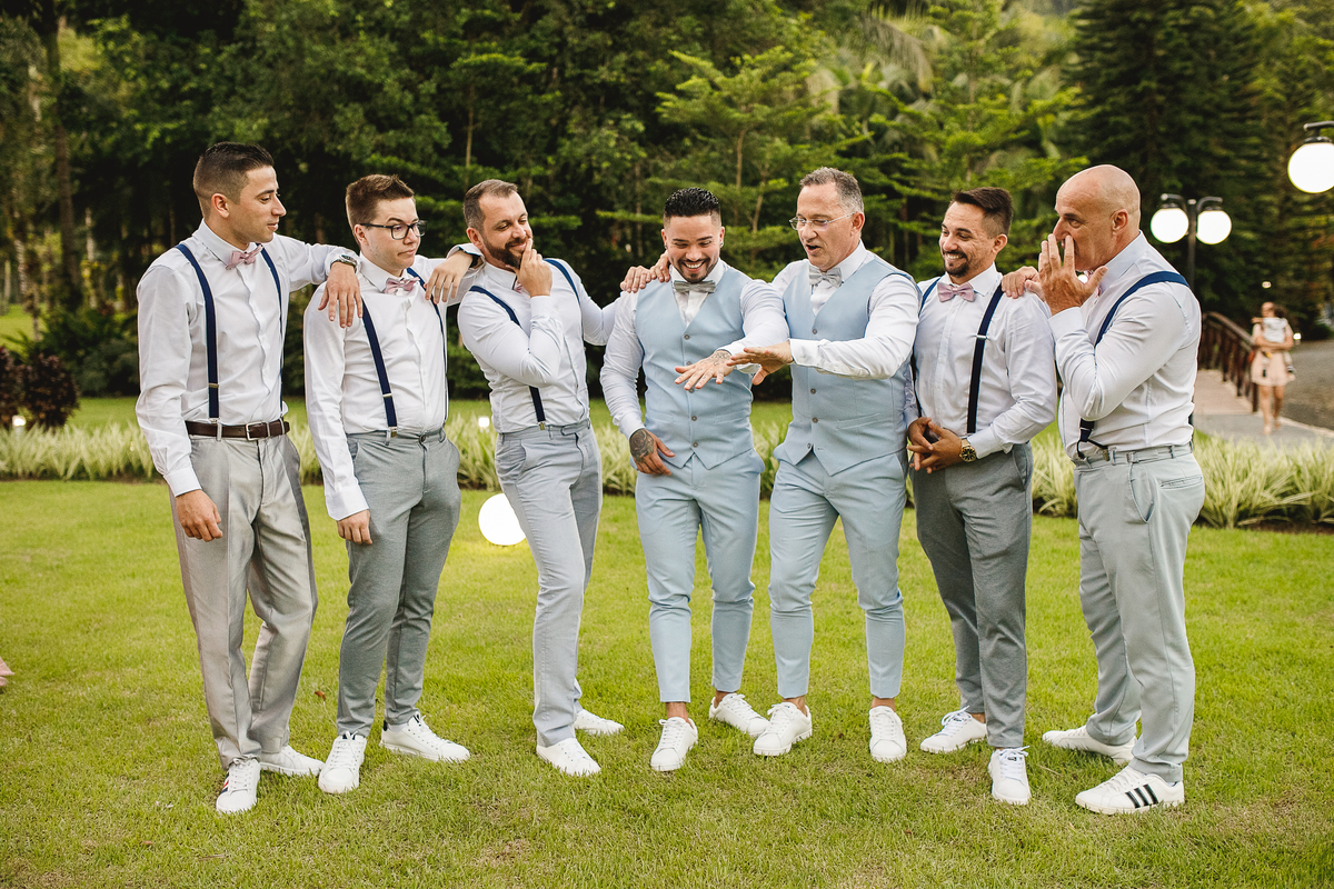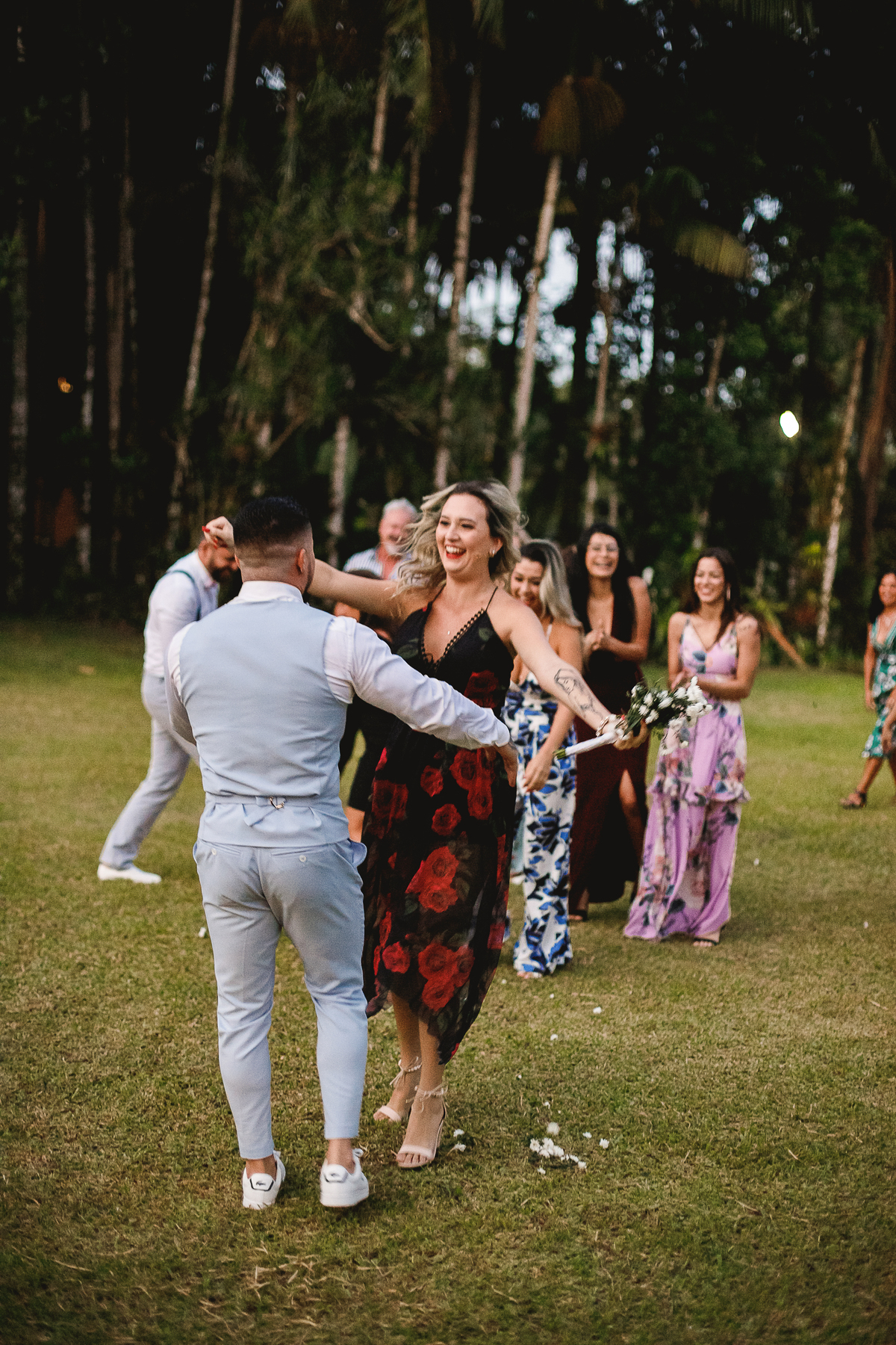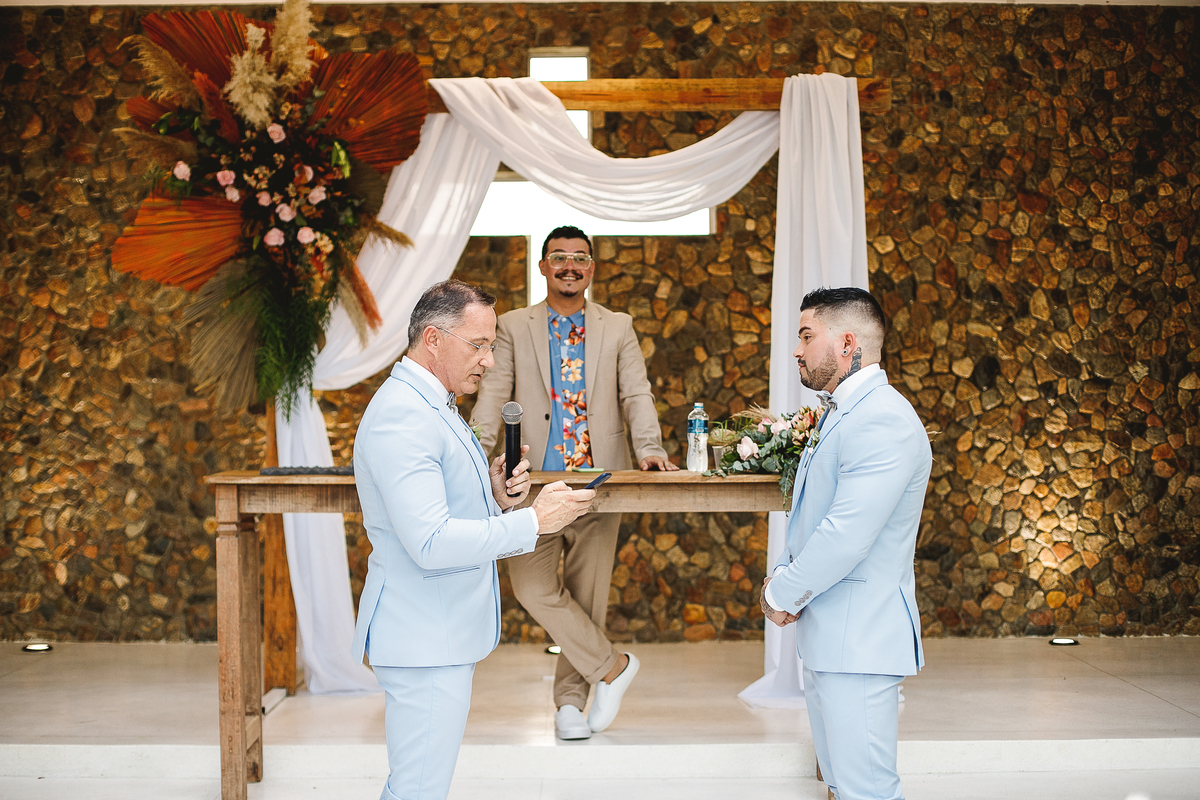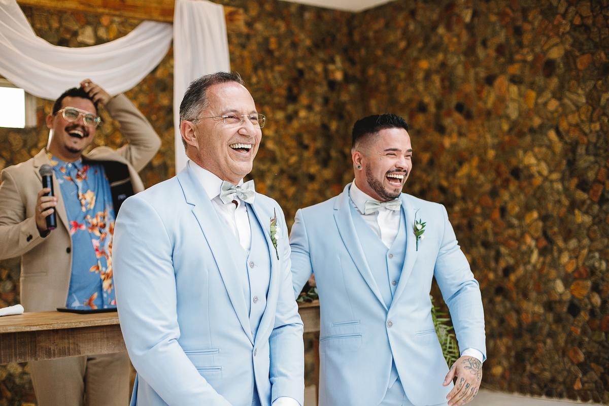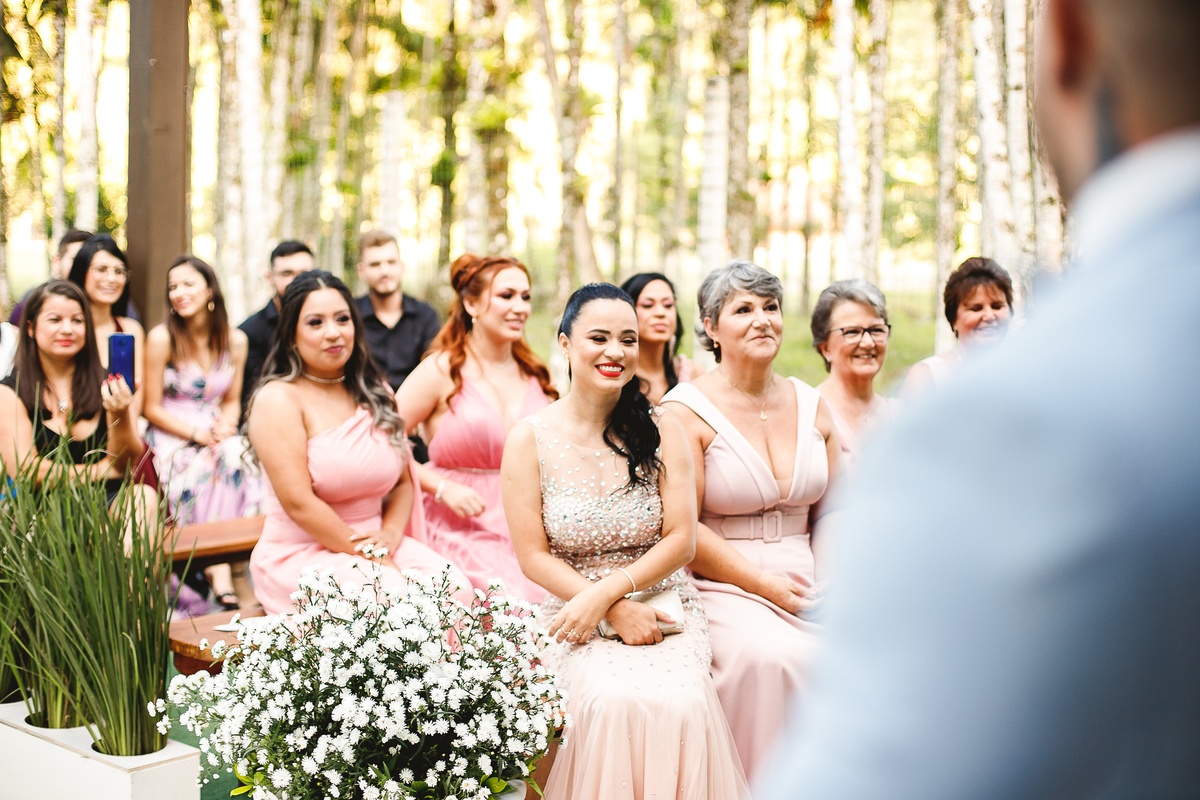 A cerimônia aconteceu no Recanto do Salto 2, cercada de natureza, boas energias e pessoas que vibravam junto. O amigo que celebrou foi quem deu o tom da cerimônia — leve, sincera e cheia de significado.