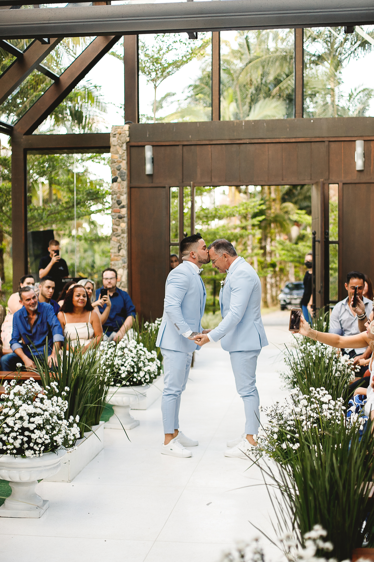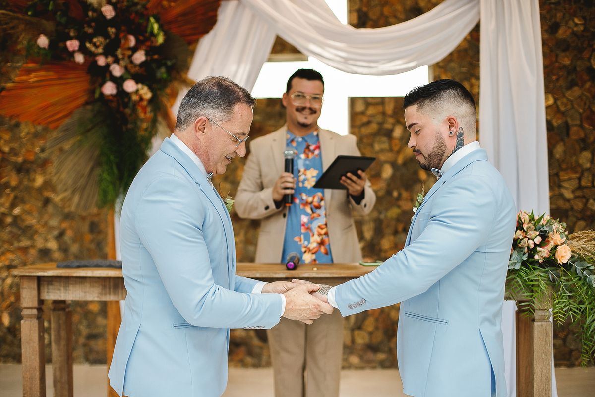 Entre risos, lágrimas e abraços apertados, Cláudio e Nando prometeram continuar sendo abrigo um pro outro. E ali, diante de todos, celebraram o que sempre os uniu desde o início: nada mais que amor.