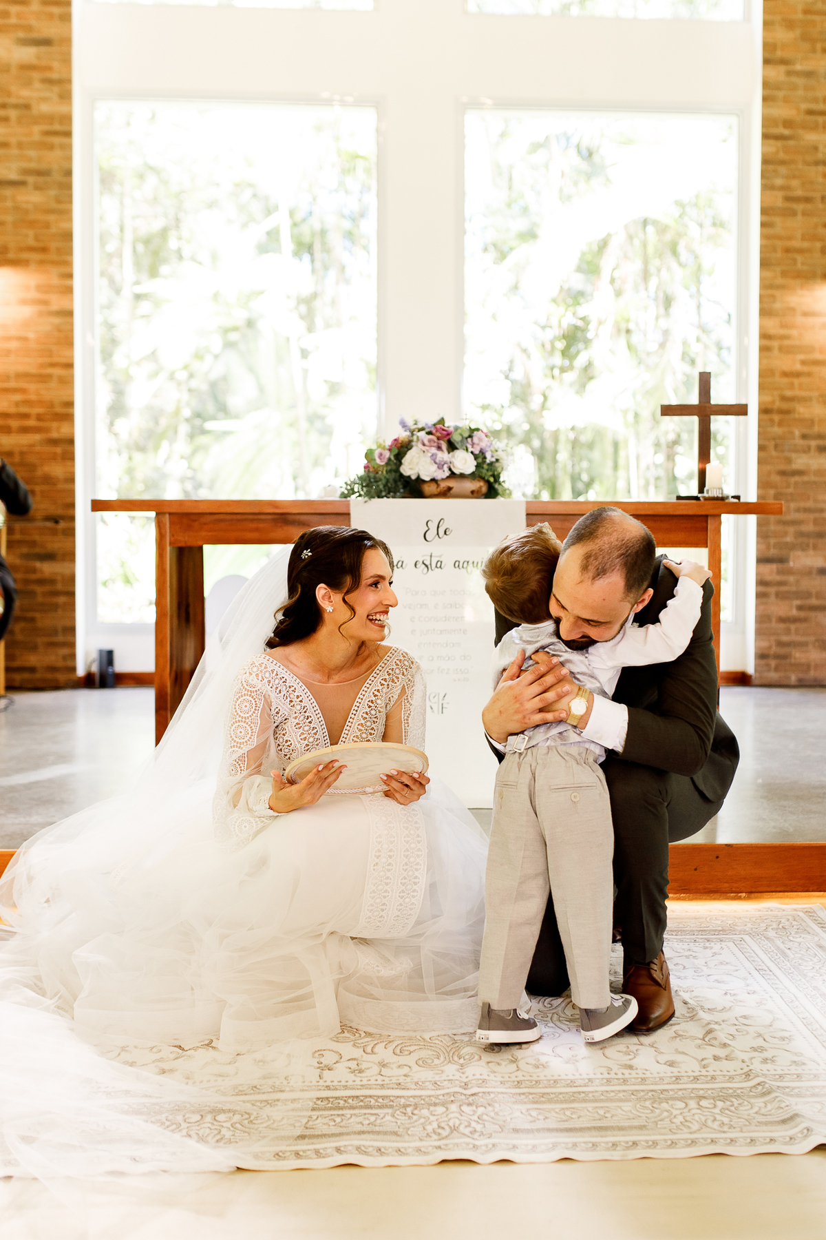 E aí veio ele, o Gael — pequeno, curioso, cheio de vida — carregando as alianças. Não foi só um momento fofo; foi um momento marcante. Ele fez parte da benção, trouxe a pureza das crianças e aquele toque de autenticidade que só um filho pode trazer. Fran e Carlos se emocionaram, os convidados se derreteram… e a cena ficou eternizada.