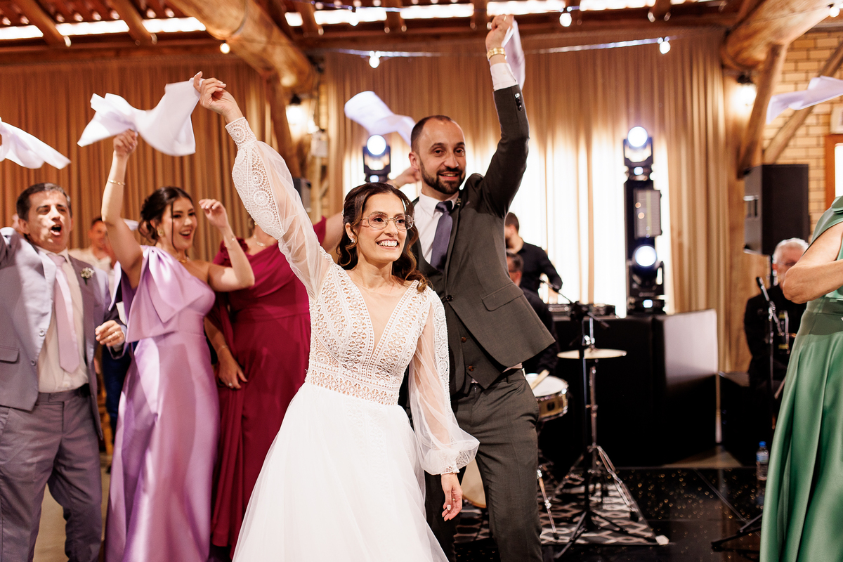 Depois da cerimônia, a celebração continuou com tudo que representa o casal: mesas cheias de comida boa, aquela mistura deliciosa de risadas altas, conversas leves e pessoas que realmente importam. A festa tinha cheiro de manhã ensolarada, sons de alegria e aquela energia gostosa de quem sabe que está celebrando algo maior do que um evento — está celebrando uma história.